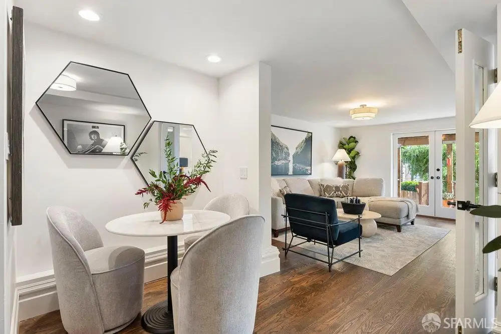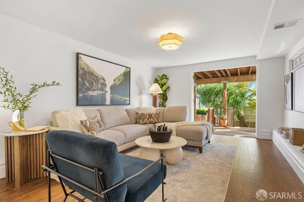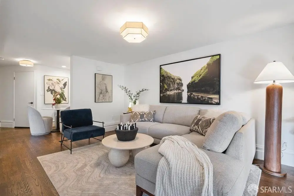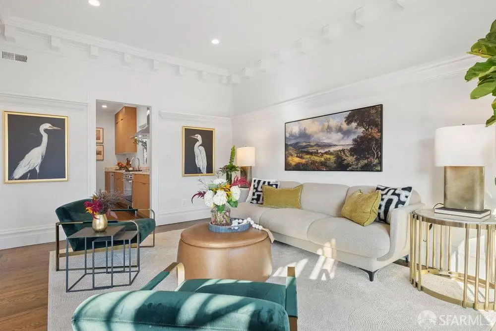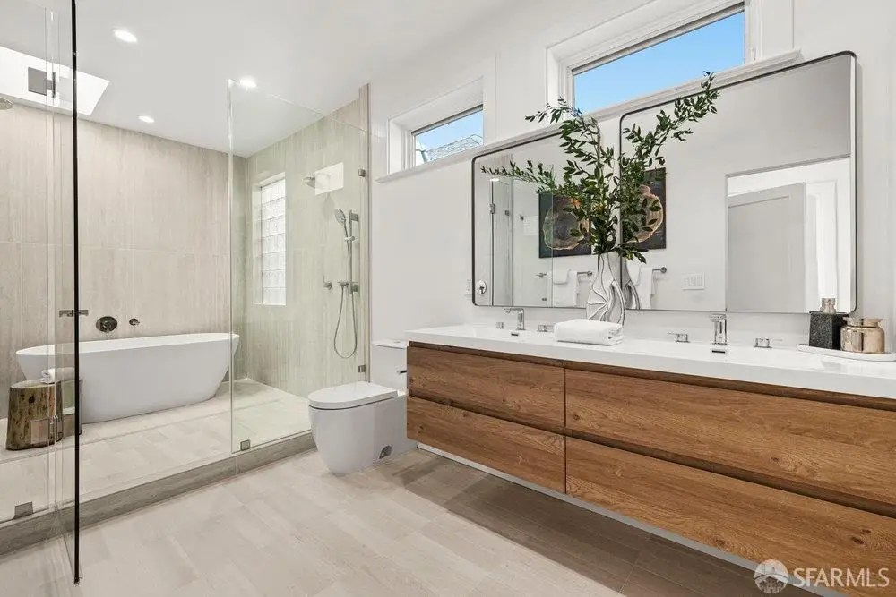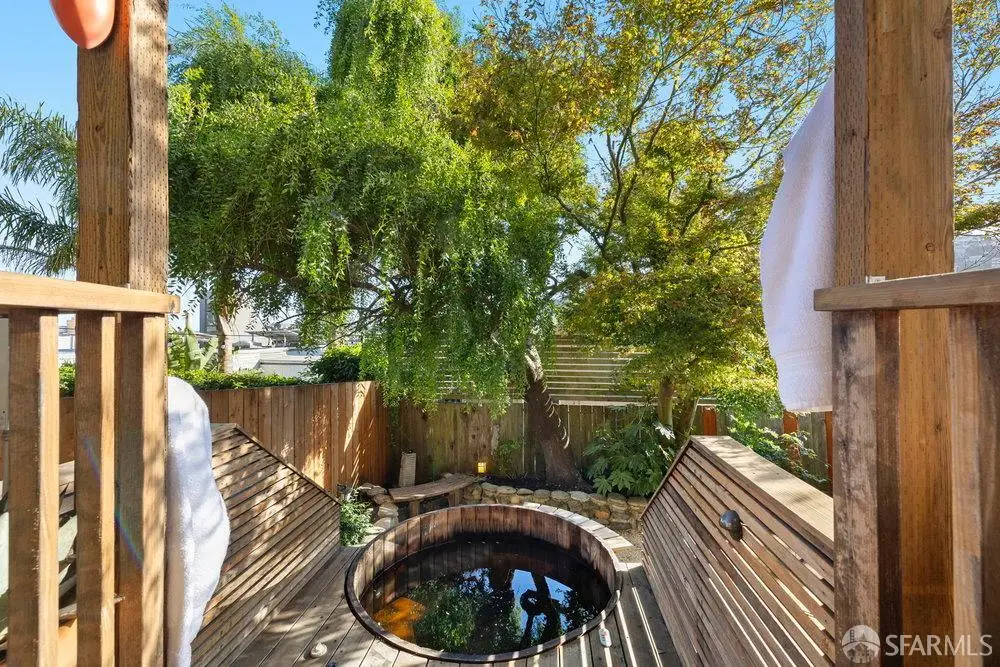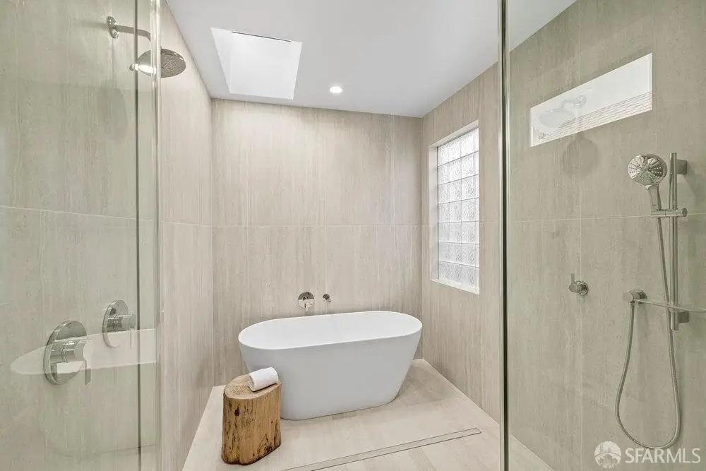 Showcasing a commanding Craftsman facade, this expansive three-level residence blends architectural presence w/versatile, refined living. Grand-scale rooms anchored by fireplaces create warmth & elegance, while gleaming hardwood floors flow throughout. The fully renovated kitchen features professional-grade Bosch appliances, & spa-inspired bathrooms boast Spanish tiles w/ Grohe & Duravit fixtures. The top level hosts two en suite bedrooms, each a private retreat plus a large laundry room. The main floor offers formal living & dining rooms, a flexible library/bedroom, & seamless indoor-outdoor connections: two expansive view decks, a primary suite balcony, & a lush garden patio w/a spa. The lower level, w/interior access & its own entrance, expands the home's adaptability, ideal for income potential, an au pair, or a private office. This space includes a media room, bedroom, full bath, kitchenette pre-plumbing, secondary laundry/mudroom, & storage. Energy-conscious upgrades include double-paned windows, LED lighting, & a solar system. With commanding curb appeal, sweeping views, outdoor living, and a layout designed for multigenerational/income-friendly use, this home offers a rare blend of scale, style, & flexibility in one of San Francisco's most coveted enclaves.