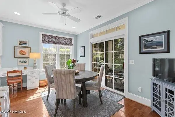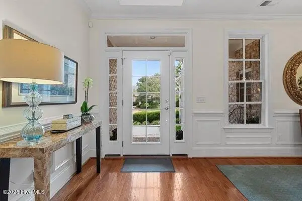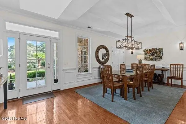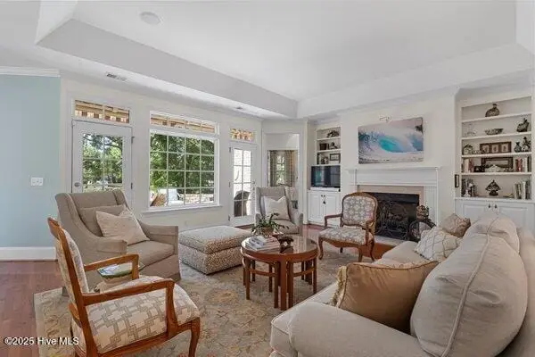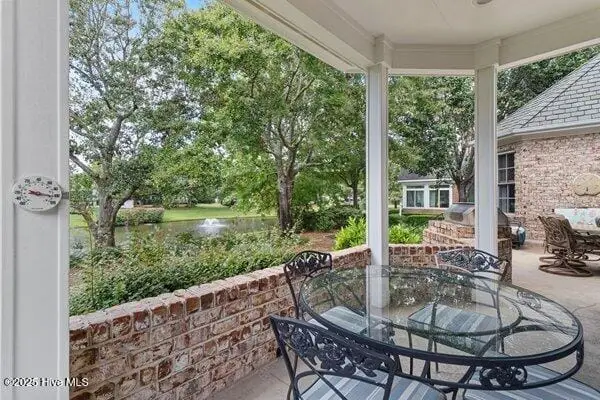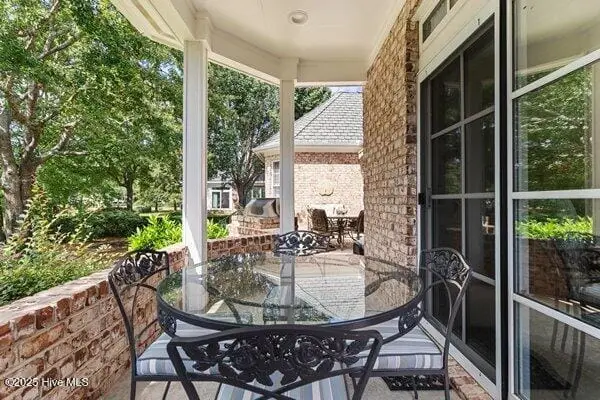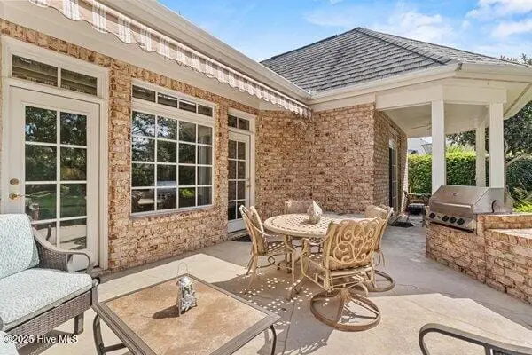 Meticulously maintained brick residence in the private, gated community of Landfall offering low maintenance living with all bedrooms on the main floor and thoughtful updates throughout. This home features a bright, open layout with hardwood floors, a spacious living room with custom built-ins, a gas log fireplace, and a formal dining area that flows seamlessly for dinner parties or gatherings.The guest bedrooms are generously sized with recently updated carpet, while the master suite impresses with two closets and an ensuite bath featuring a water closet, double vanities, and a walk-in tile shower. The kitchen, designed for both style and functionality, is equipped with stainless steel appliances, a prep sink in the island, gas cooktop, and dining area for casual meals. Upstairs, a versatile bonus room includes a full bath and heated storage room, with a walk-in attic providing additional, easily accessible storage.Outdoors, a partially covered back porch with built-in gas grill overlooks the pond, creating an inviting space for entertaining or quiet relaxation. Additional features include a two-car garage and sealed crawl space with dehumidifier, all within one of Wilmington's most sought-after gated communities.