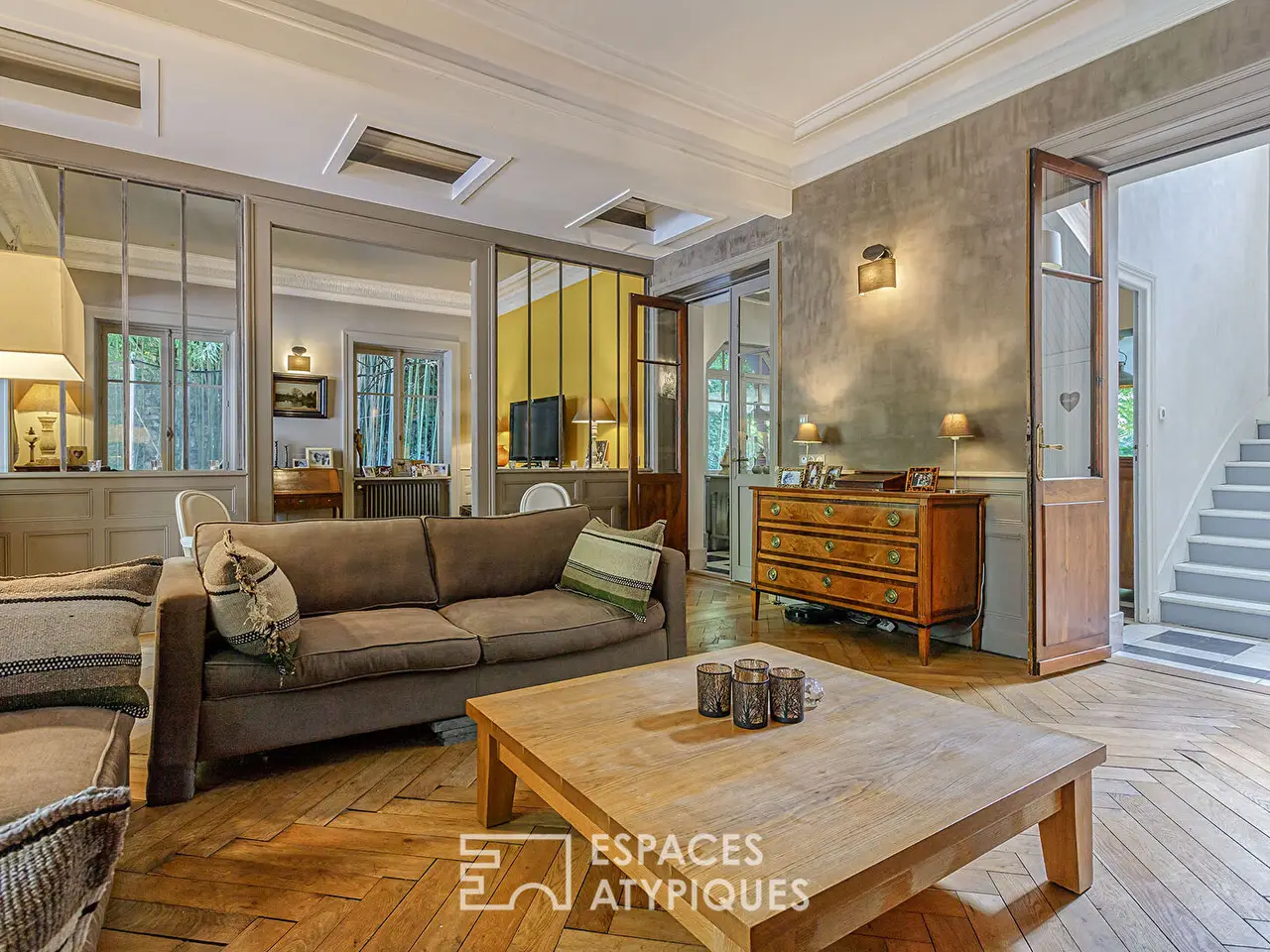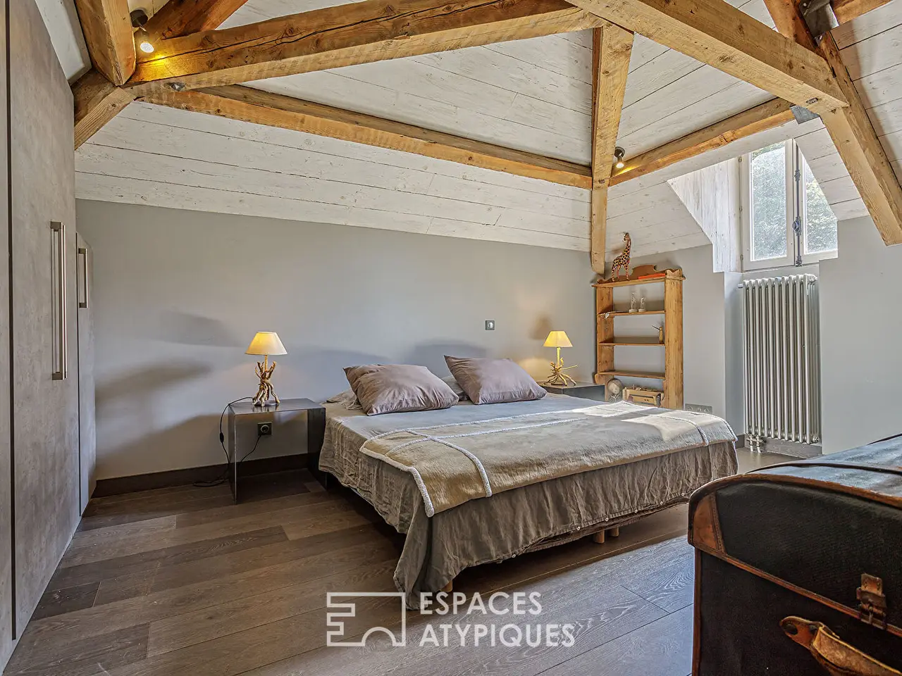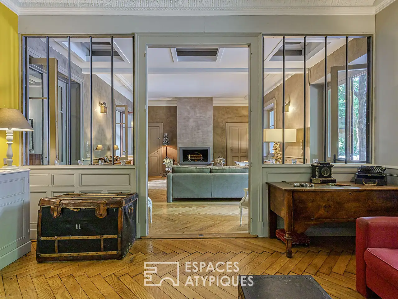 Nestled in the heart of a landscaped park of 2,100 sqm, this historic 238 sqm residence stands as a rare address in the very center of Aix-les-Bains.Sheltered by century-old trees, it combines the charm of preserved heritage with the comfort of a prestigious villa. An elegant swimming pool extends the serene atmosphere of this private estate.Inside, generous volumes and a harmonious layout are revealed. From the entrance, the double living room with herringbone parquet flooring and period moldings expresses the full authenticity of the property. The adjoining dining room, ideal for entertaining, echoes the contemporary kitchen set within a glass extension offering panoramic views over the garden.Upstairs, two bedrooms are arranged, including a master suite with its bathroom, a shower room, and a gallery-style balcony overlooking the park and pool. The converted attic space, with its exposed beams, hosts two additional bedrooms with unique character.Outdoors, the landscaped garden creates an intimate setting where lush greenery, terraces, and relaxation areas blend seamlessly. The long, refined swimming pool becomes the centerpiece of this haven of greenery. An independent caretaker's house enhances the potential of the property, further complemented by a covered garage and spacious cellars.Its privileged location, just steps away from shops, schools, cultural facilities, and the lake, makes it truly unique. This historic residence, rare on the Aix-les-Bains real estate market, will appeal to lovers of character and authenticity.Energy class: D / Climate class: DEstimated annual energy costs (standard use, 2023 prices): between €2,890 and €3,970.REF. 2027EAAdditional information* 15 rooms* 4 bedrooms* 2 bathrooms* 1 bathroom* 2 floors in the building* Outdoor space : 2100 SQM* Parking : 3 parking spaces* Property tax : 2 649 €Energy Performance CertificatePrimary energy consumptiond : 197 kWh/m2.yearHigh performance housing*A*B*C*197kWh/m2.year42*kg CO2/m2.yearD*E*F*GExtremely poor housing performance* Of which greenhouse gas emissionsd : 42 kg CO2/m2.yearLow CO2 emissions*A*B*C*42kg CO2/m2.yearD*E*F*GVery high CO2 emissionsEstimated average amount of annual energy expenditure for standard use, established from energy prices for the year 2021 : between 2890 € and 3970 €Agency feesThe fees include VAT and are payable by the vendorMediatorMediation Franchise-Consommateurswww.mediation-franchise.com29 Boulevard de Courcelles 75008 ParisInformation on the risks to which this property is exposed is available on the Geohazards website : www.georisques.gouv.fr