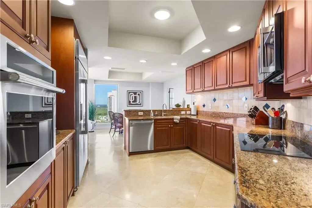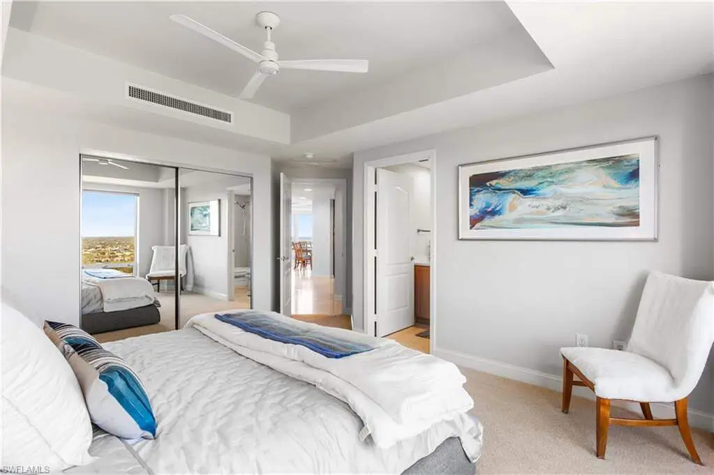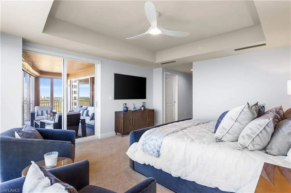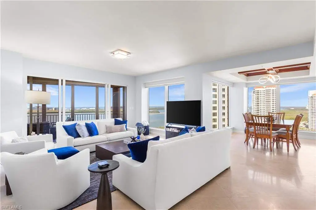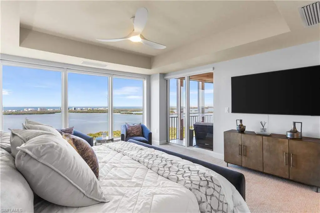 Welcome to Estancia in Bonita Bay, where luxury meets breathtaking views and an active lifestyle. This spacious END UNIT located on the 20th floor offers unparalleled, unobstructed views of the Gulf of Mexico, Estero Bay, and golf course from every room. The open layout with 2,717 square feet of living and 2,935 square feet with terrace, offers three-bedrooms with 3 ensuite bathrooms PLUS DEN is designed to maximize natural light and stunning vistas, creating an inviting and serene living space. Located in the prestigious gated community of Bonita Bay, Estancia offers an exceptional array of amenities for all ages and interests. Residents enjoy access to a private beach park, recreational parks, walking and biking paths, and courts for tennis, pickleball, bocce ball, a live in building manager fitness center, massage room, club room, card room, and more. Embrace waterfront living with kayaking options and a full-service marina featuring slips and a charming restaurant. Golf enthusiasts will delight in the world-class golf course, complemented by elegant dining venues, resort-style pools, fitness center, and more. Experience the perfect balance of tranquility and an active lifestyle in this premier Bonita Bay residence.This is more than a home-it's a lifestyle.
