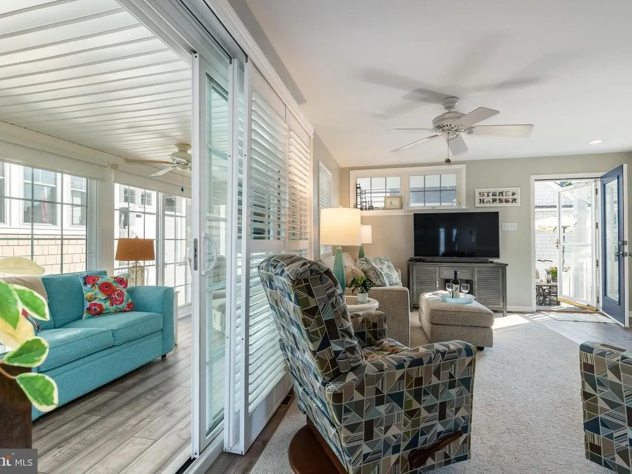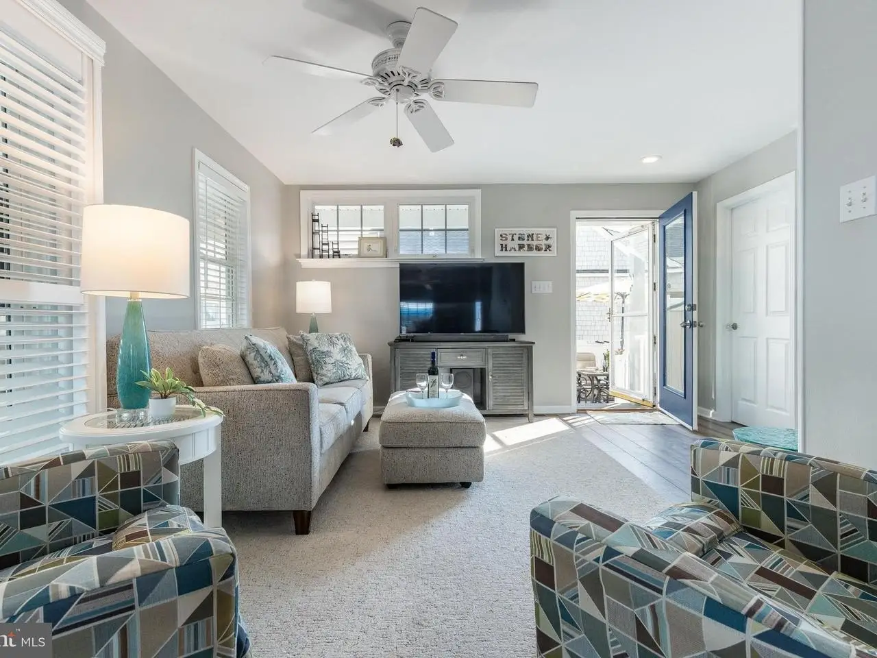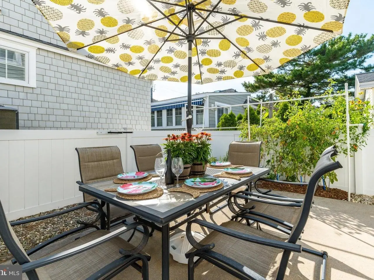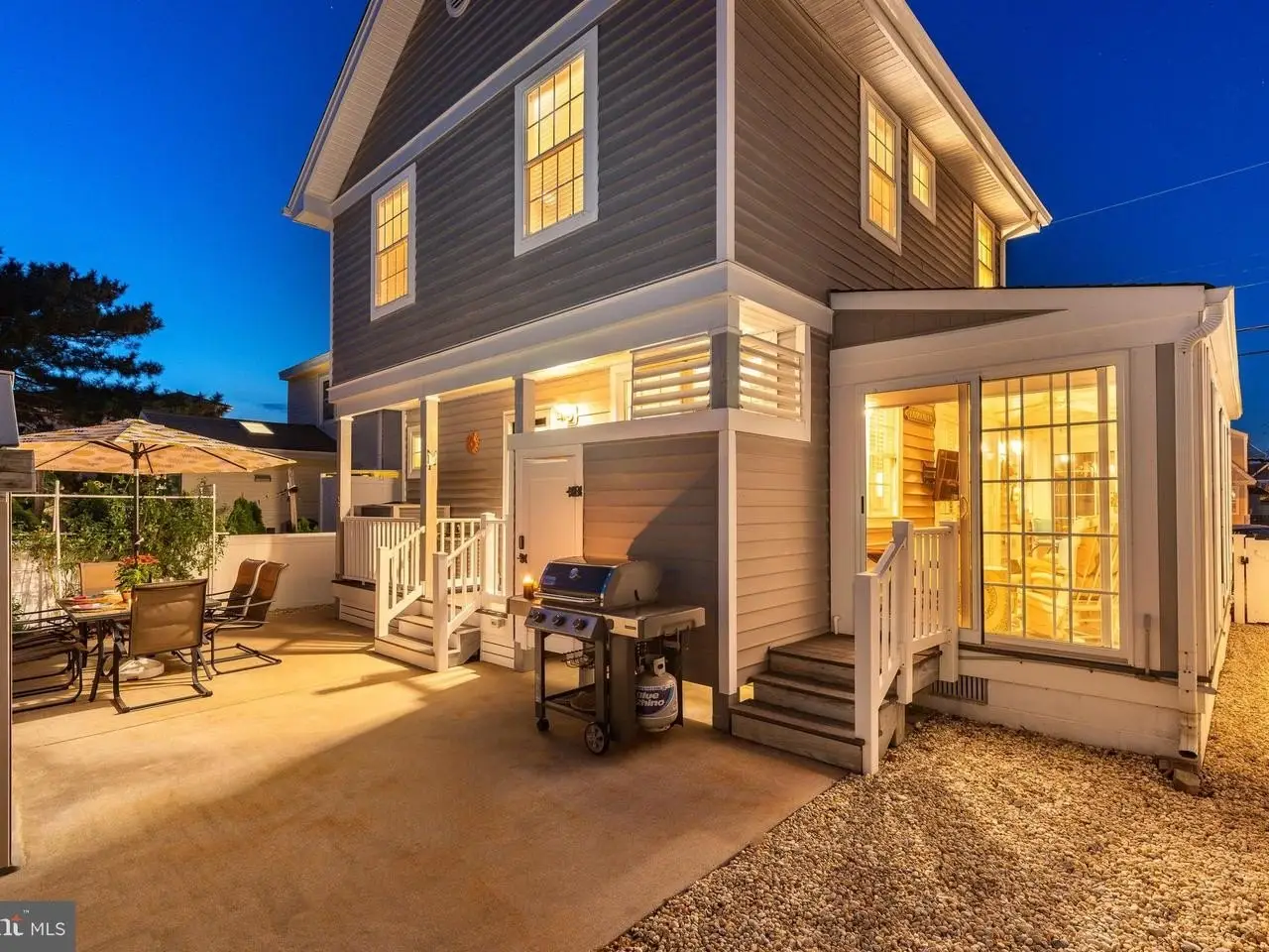 Discover this move-in-ready single-family home in the highly desirable South End of Stone Harbor. Built in 2002 and designed for easy first-floor living, this property on wide 110th street offers comfort, safety, and accessibility for every stage of life. The first floor features a spacious custom kitchen updated by Ocean Interiors in 2023 with white cabinetry, Cambria quartz countertops, generous storage, and perfectly hidden washer/dryer. Gourmet appliances, including a wine cooler, make it ideal for a cook's lifestyle, and the custom dining table with built-in bench seating and wainscoting maximizes space for gatherings with style. The inviting family room includes an entertainment area and opens to an expansive glass-enclosed, heated and screened porch with solar shades, two ceiling fans, and a wall-mounted TV-perfect for entertaining or cozy evenings year-round. Two slider white plantation doors were installed to separate the porch for privacy and shade as needed. Take the beautifully white wainscoted central staircase to the second level which offers three bedrooms, including a light-filled primary suite with vaulted ceiling and private full bath. Two additional bedrooms with side-by-side twin beds share a full hall bathroom, while an office alcove provides slider access to a north-facing porch shared with the primary suite. This elevated outdoor space is a private retreat where you can enjoy ocean breezes after work or before bedtime. Outside, there is a welcoming entry with a wide paver walkway, bilateral railings, The property features manicured Belgian block flower beds, a gated rear yard for privacy and safety, and a rear patio complete with outdoor shower, dining area, and a home grown vegetable garden. With two-zone heating and thoughtful architectural details, this home is both functional and charming. The location is one of the best in Stone Harbor's South End. Just steps from the bay and ocean, you'll find surfing at Nuns' Beach, swimming at the guarded 111th Street beach, and kayak access from 114th Street by the Bird Sanctuary. Chelsea Place playground, and downtown shops and dining are all nearby, making this a true South End gem. This is a rare opportunity to own a turn-key Stone Harbor home that blends easy living with coastal charm, modern updates, and an ideal location. Offered furnished with exclusions list. Note: Foundation and a few studs from one wall retained from original build in 1955.
