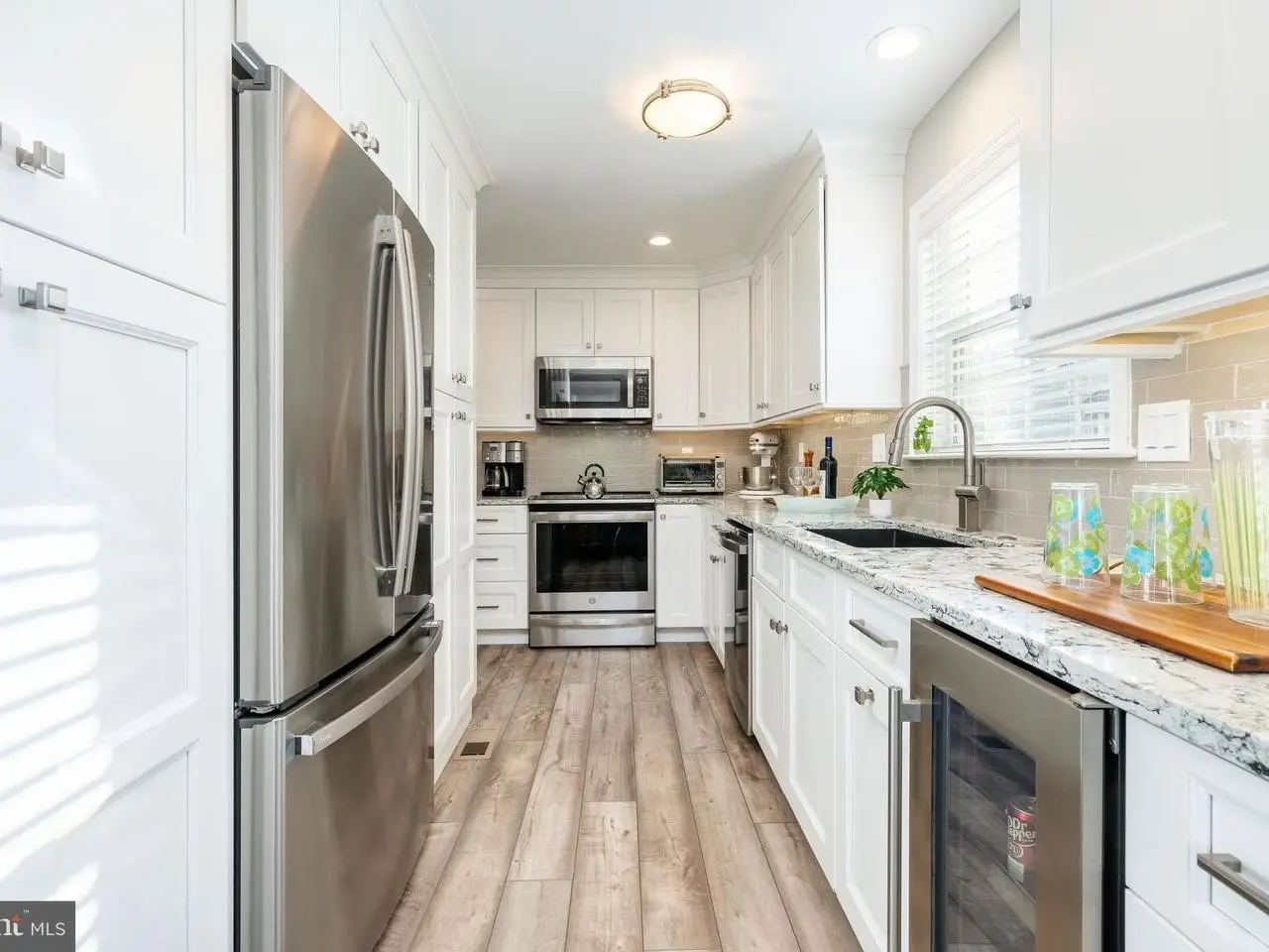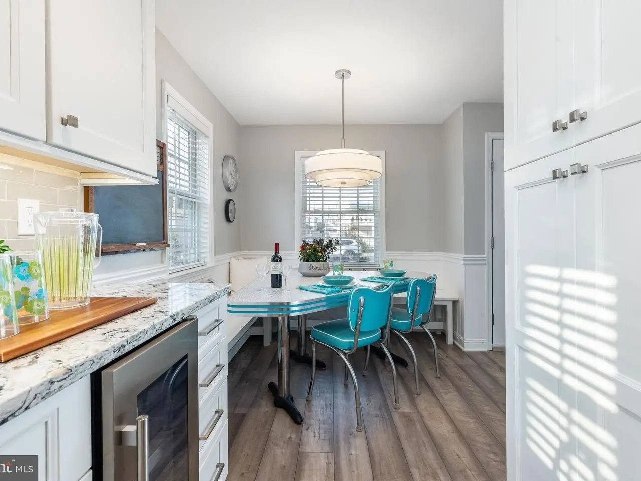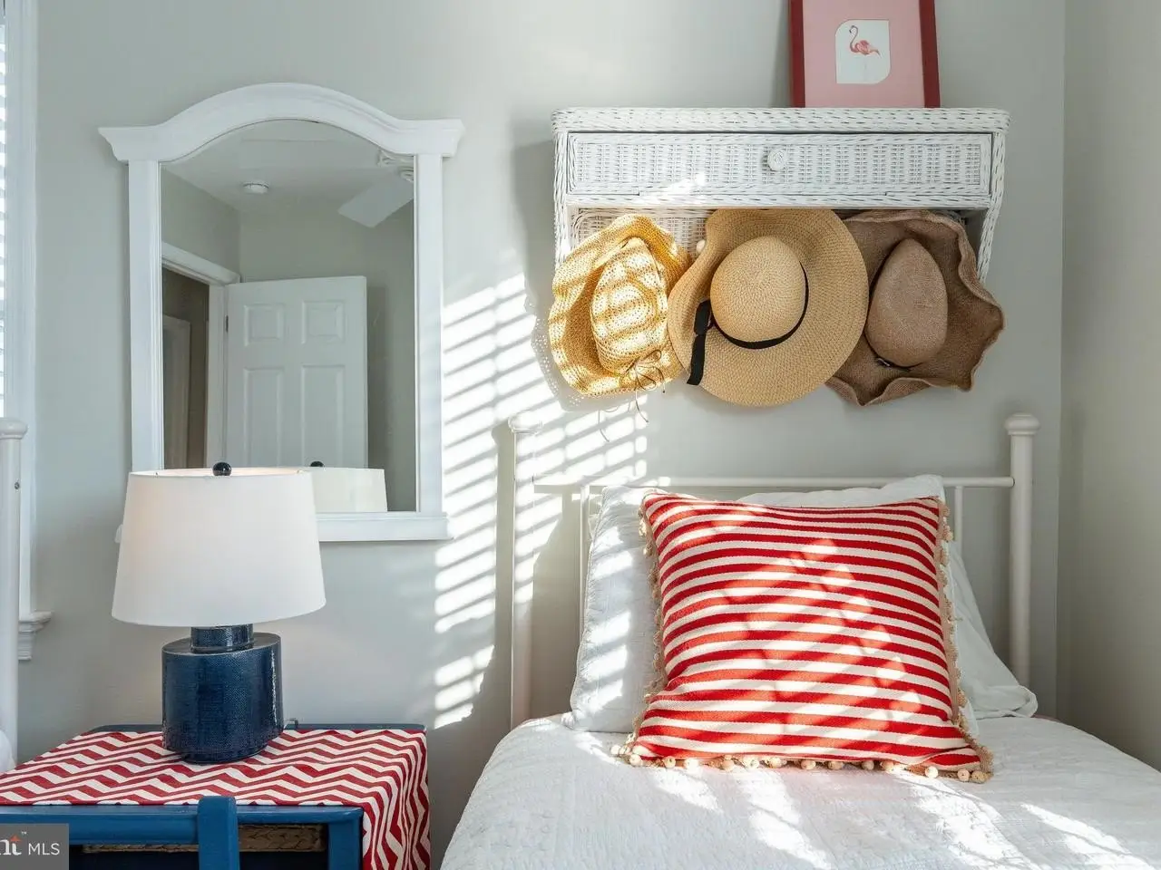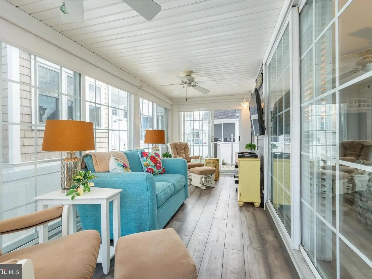 Discover this move-in-ready single-family home in the highly desirable South End of Stone Harbor. Built in 2002 and designed for easy first-floor living, this property on wide 110th street offers comfort, safety, and accessibility for every stage of life. The first floor features a spacious custom kitchen updated by Ocean Interiors in 2023 with white cabinetry, Cambria quartz countertops, generous storage, and perfectly hidden washer/dryer. Gourmet appliances, including a wine cooler, make it ideal for a cook's lifestyle, and the custom dining table with built-in bench seating and wainscoting maximizes space for gatherings with style. The inviting family room includes an entertainment area and opens to an expansive glass-enclosed, heated and screened porch with solar shades, two ceiling fans, and a wall-mounted TV-perfect for entertaining or cozy evenings year-round. Two slider white plantation doors were installed to separate the porch for privacy and shade as needed. Take the beautifully white wainscoted central staircase to the second level which offers three bedrooms, including a light-filled primary suite with vaulted ceiling and private full bath. Two additional bedrooms with side-by-side twin beds share a full hall bathroom, while an office alcove provides slider access to a north-facing porch shared with the primary suite. This elevated outdoor space is a private retreat where you can enjoy ocean breezes after work or before bedtime. Outside, there is a welcoming entry with a wide paver walkway, bilateral railings, The property features manicured Belgian block flower beds, a gated rear yard for privacy and safety, and a rear patio complete with outdoor shower, dining area, and a home grown vegetable garden. With two-zone heating and thoughtful architectural details, this home is both functional and charming. The location is one of the best in Stone Harbor's South End. Just steps from the bay and ocean, you'll find surfing at Nuns' Beach, swimming at the guarded 111th Street beach, and kayak access from 114th Street by the Bird Sanctuary. Chelsea Place playground, and downtown shops and dining are all nearby, making this a true South End gem. This is a rare opportunity to own a turn-key Stone Harbor home that blends easy living with coastal charm, modern updates, and an ideal location. Offered furnished with exclusions list. Note: Foundation and a few studs from one wall retained from original build in 1955.