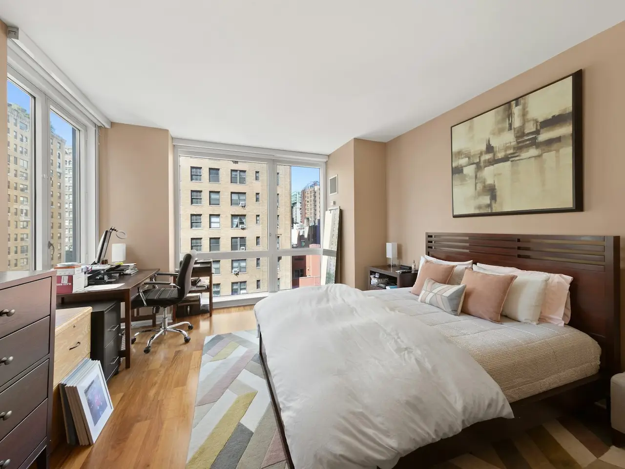 BRIGHT CORNER UNIT WITH RIVER VIEWS! Enjoy lovely sunsets and breathtaking Hudson River views from this beautifully appointed double corner two-bedroom, two-and-a-half bath home bathed in natural light. Facing west and north, this bright and airy apartment features soaring ceilings and dramatic floor-to-ceiling windows that flood the space with light, accentuating the rich Brazilian Cabreuva hardwood floors throughout. This unit is good for entertaining with a renovated open chef's kitchen, Viking appliances and Silestone quartz countertops in warm white. With ample closet space throughout, this residence combines elegance, comfort, and functionality in one of the Upper West Side's most desirable full-service buildings. The generous primary suite offers a tranquil retreat with a custom-designed walk-in-closet, an additional linen closet, and a luxurious en-suite bathroom. Outfitted with marble floors and polished Bianco Verde marble countertops, the spa-like bath features double sinks, a soaking tub, and a separate glass-enclosed stall shower. The second bedroom is equally impressive, with river views, a stylish closet, and a private en-suite bathroom. A chic designer powder room includes a new washer/dryer for ultimate convenience. A monthly reserve contribution of $97.42 and a capital assessment of $250.08 is until June 2027. This full-service condominium offers 24-hour doorman and concierge services, in addition, live-in super, top-of-the-line fitness center, newly renovated resident's lounge with terrace, renovated billiards room, newly renovated media room and playroom. There is a bike room and attached garage. This home is moments from the 1,2,3 subway lines, multiple bus lines, and offers convenient access to the Lincoln Center's cultural, dining and shopping destinations.