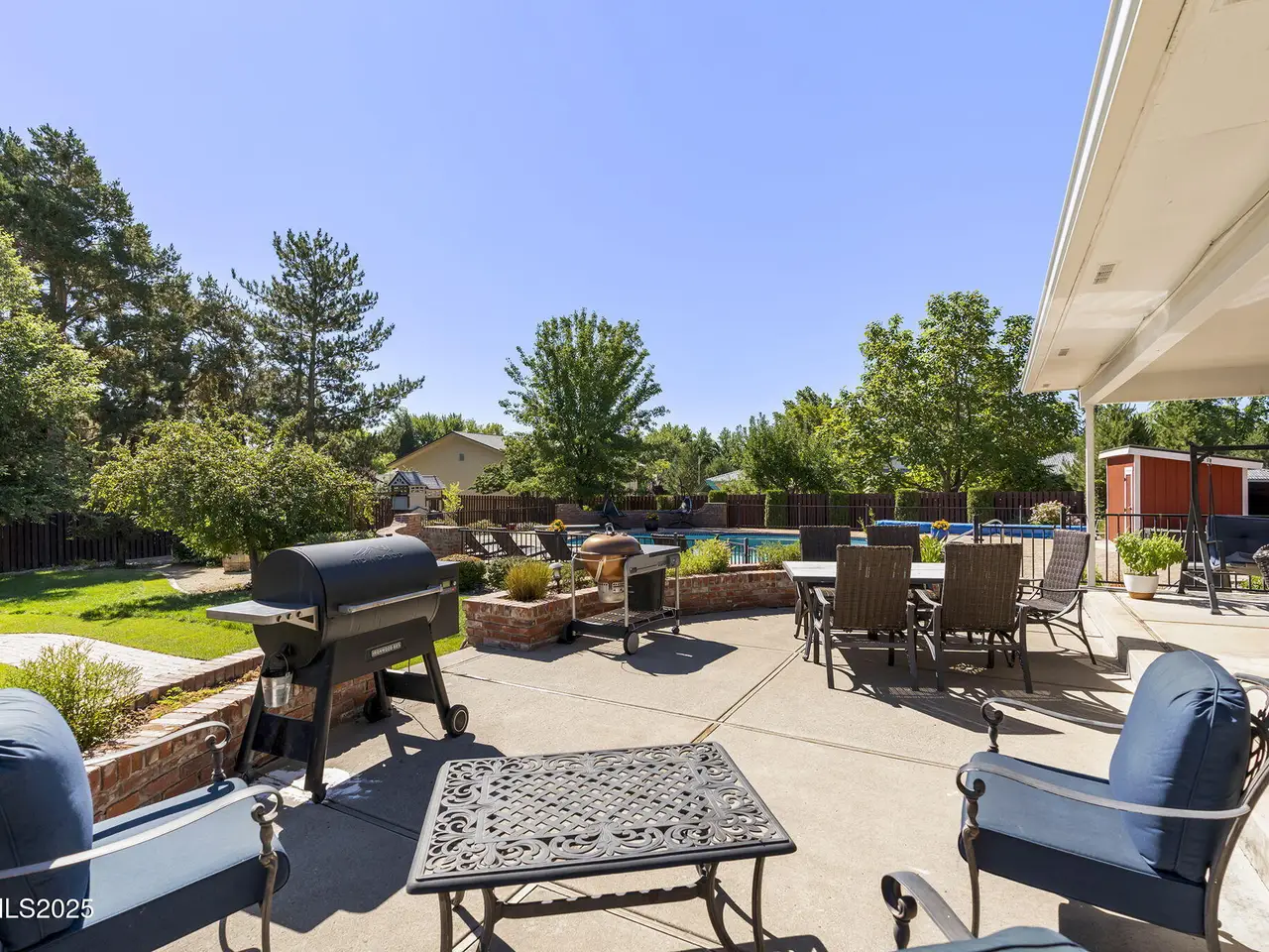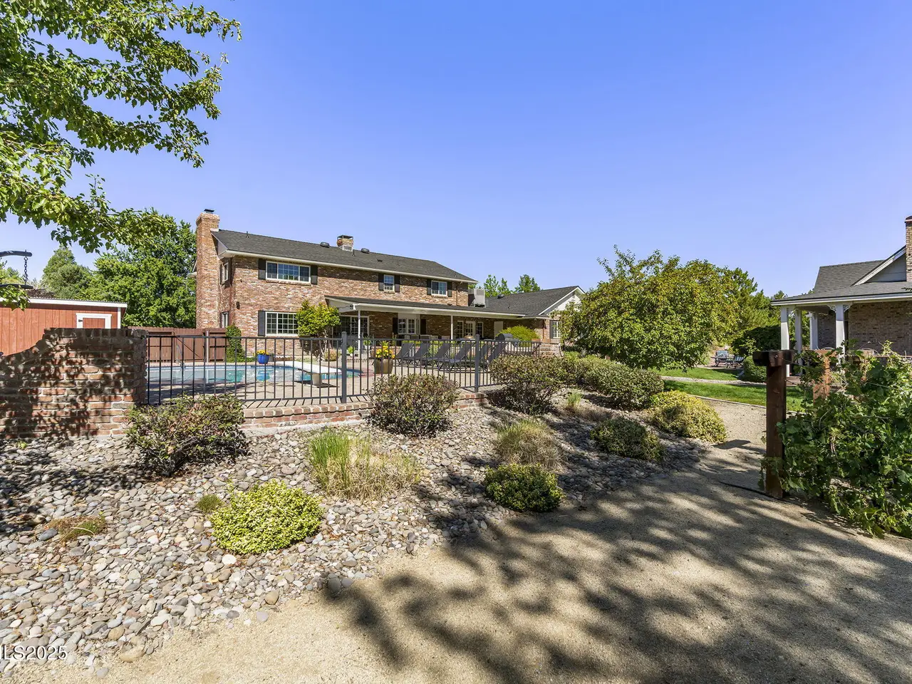 NO HOA! Discover your own private sanctuary in this stunning traditional home that perfectly balances elegance with everyday comfort. With seven bedrooms and five and a half bathrooms spread across 5,226 square feet, this residence offers space for everyone to find their perfect spot. The heart of the home features a gourmet kitchen complete with an oversized granite island, commercial cooktop, and three ovens. Flowing seamlessly between formal and casual living areas, plus a dedicated office space, the layout adapts to your lifestyle whether you're hosting large parties or enjoying quiet family evenings. Step outside to your personal oasis featuring a sparkling swimming pool, pond with water feature, playground, and your very own grape vineyard. The covered patio provides the perfect spot for outdoor dining and relaxation. Adding to the property's charm is a beautiful 1249 square foot guest home complete with its own kitchen, laundry room, bedroom, spacious bathroom, and single-car garage. Whether for visiting relatives, rental income, or a teenager seeking independence, this separate living space offers endless possibilities for comfortable accommodation. The basement has two bedroom suites, each with its own sitting room for added privacy and comfort. Upstairs, the luxurious primary suite awaits alongside three additional bedrooms and a full bath, ensuring everyone has their own space to retreat and recharge.