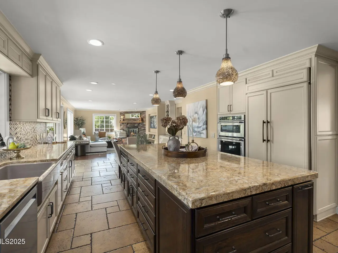 • Oversized granite island in gourmet kitchen