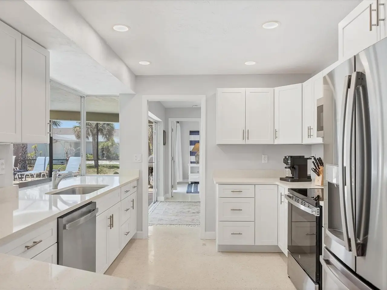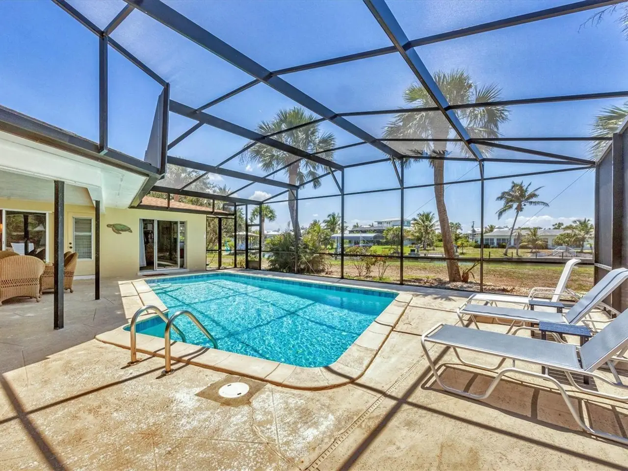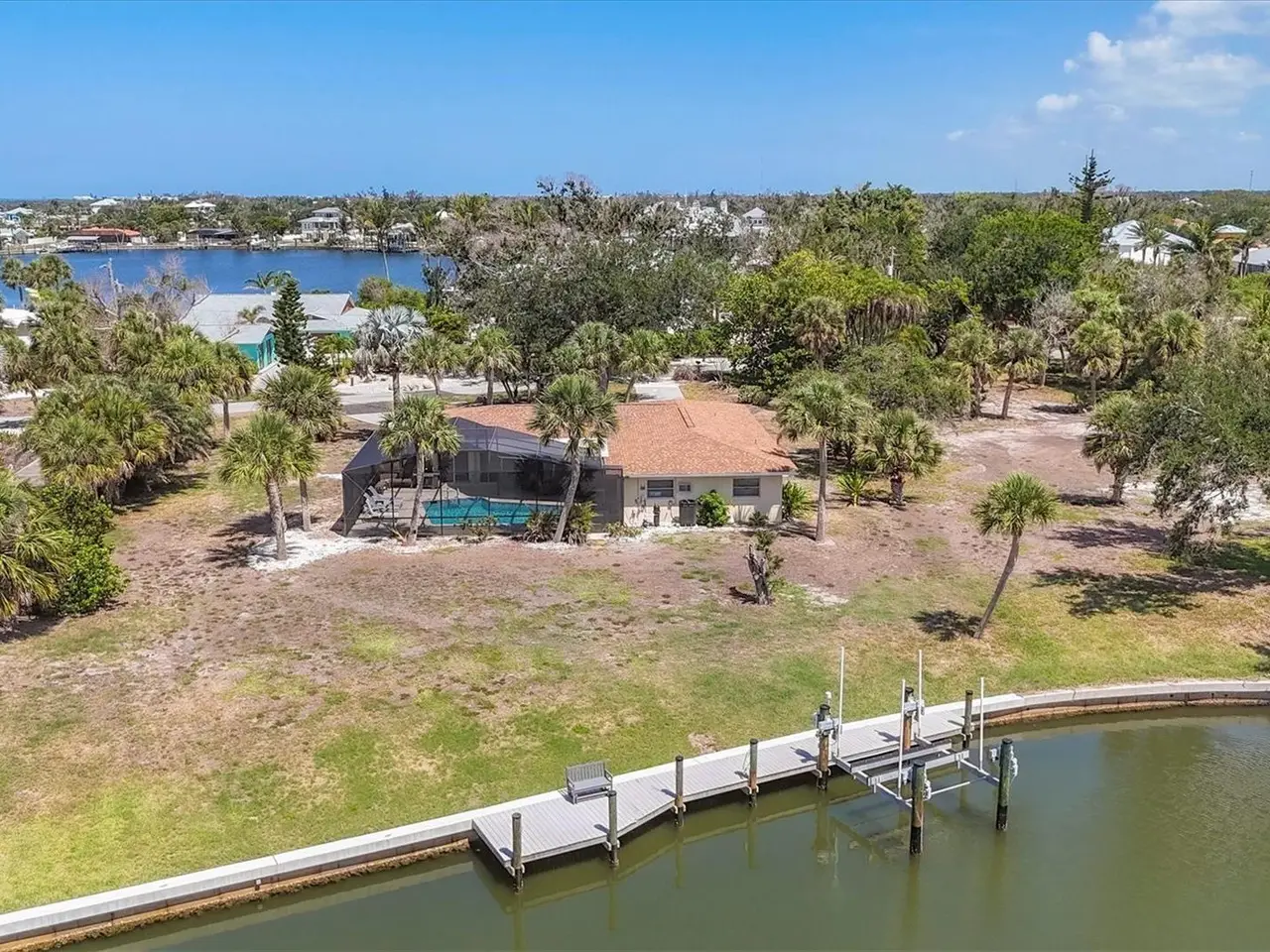 An incredible Cape Haze home for boaters and fisherman, with 105 feet of deep-water canal frontage, brand new composite dock with a new robust 13,000 lb Deco boat lift, no bridges, and only about 600 feet to the Intracoastal Waterway. Highly sought after location in Cape Haze, the home is on the very southern canal of the neighborhood, which means that boaters are instantly in the world-class fishing waters of Charlotte Harbor or to Gasparilla Pass and the Gulf of Mexico. New concrete seawall and a wide section of the canal allows for very large vessels to easily navigate and dock at the property. A superb location, the home sits on a .68 acre lot, tucked in a secluded area of the historic Vanderbilt developed neighborhood of Cape Haze the streets are lined with towering banyan trees. The classic 1960's home is in phenomenal like-new condition after a complete 2025 renovation inside and out. It beautifully blends some of its best retro features like gorgeous terrazzo flooring with endless new features from the 2025 project that includes a new roof, beautiful new kitchen, bathrooms, LVP in guest rooms, pool cage, swimming pool tile and resurface, new pool heater, all appliances, new water heater, AC and duct work, and a new septic system. The stunning bathrooms offer tiled showers, designer vanities, new plumbing fixtures, and framed mirrors. The kitchen now has new custom wood cabinetry, quartz stone counter tops, stainless steel appliances, and new plumbing fixtures. The Cape Haze Property Owners Association includes a private dock and beach access on Don Pedro Island. The home is just minutes by car or boat to historic Boca Grande, miles of pristine sandy beaches, essential shopping, fine dining, private Coral Creek Jetport, private and public golf courses and several full-service marinas.