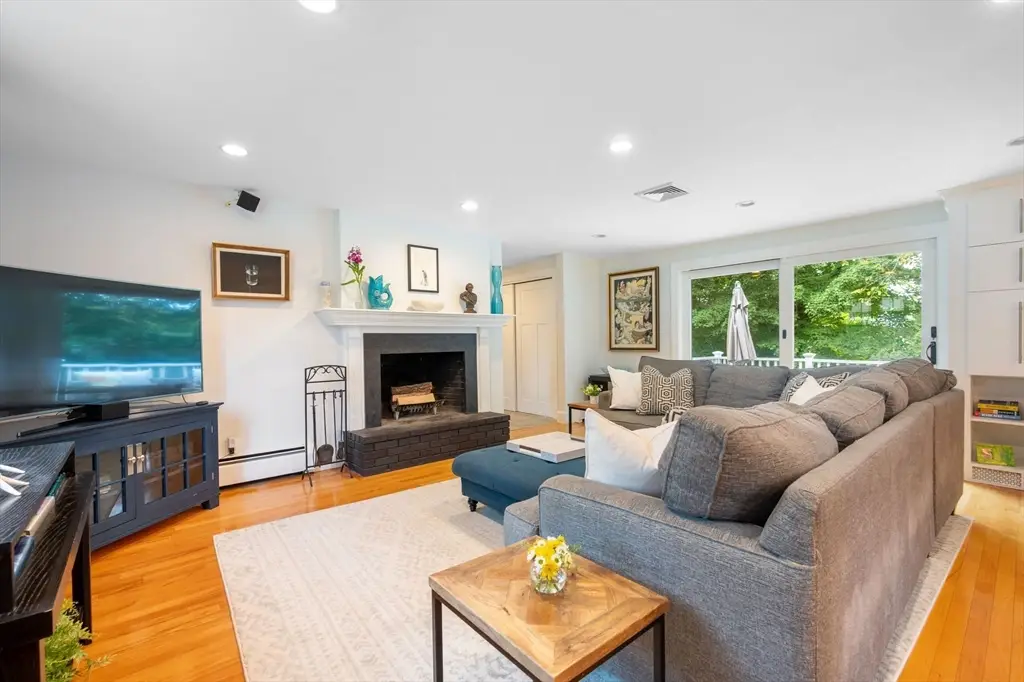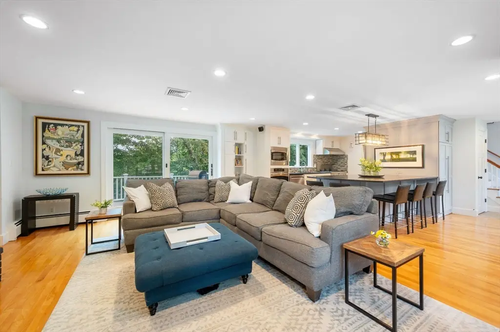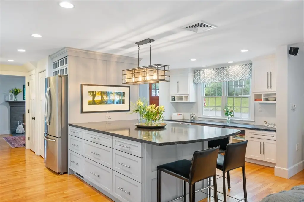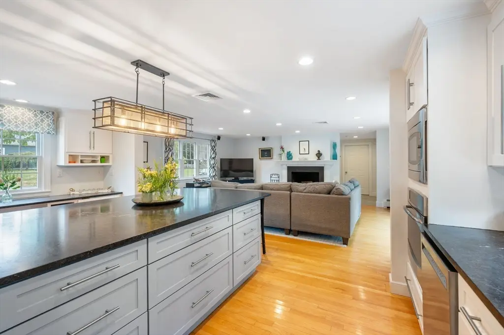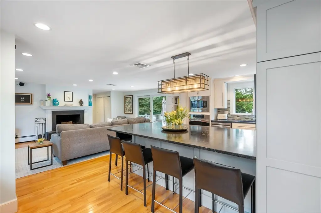 Nestled in one of Hingham's most desirable neighborhoods, this beautifully updated home offers an unbeatable location~just minutes from Hingham Square, harbor, Foster Elementary, & ferry to Boston. Step inside to an open & spacious kitchen, featuring a 6-burner gas cooktop, wall oven, and a generous 5 x 8-foot peninsula. Designed for both cooking & gathering, this kitchen is truly the heart of the home. The open floor plan continues into a large family room w/ a cozy fireplace & sliders leading to a 16 x 11-foot deck, perfect for entertaining or relaxing while overlooking the terraced backyard, including a lower-level patio complete with a built-in firepit, ideal for cool evenings. Flexible living spaces include a sun-filled sunroom, perfect for a home office or reading nook, and a fireplaced living room that could also serve as a formal dining room. Upstairs, are 2 nice sized bedrooms, full bath, and the spacious primary offering a large closet, and ensuite bath. LL playroom, 1 car garage.