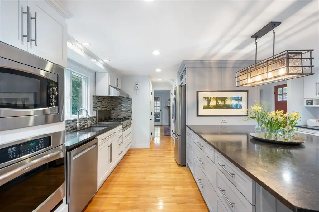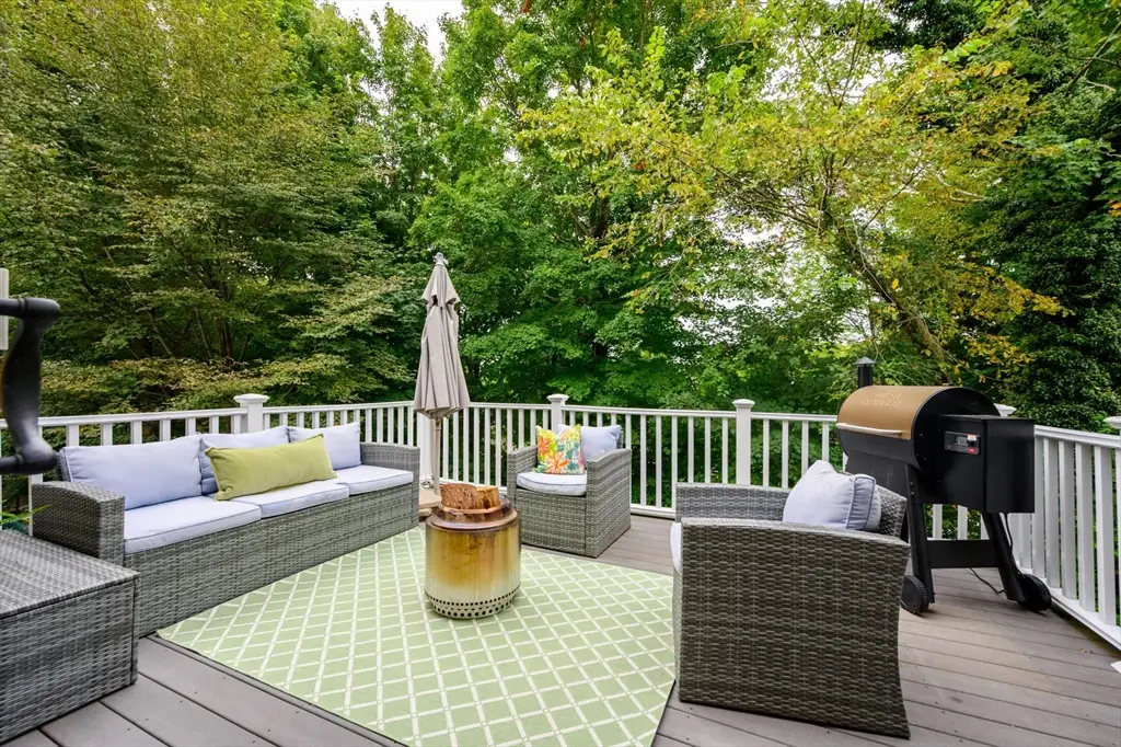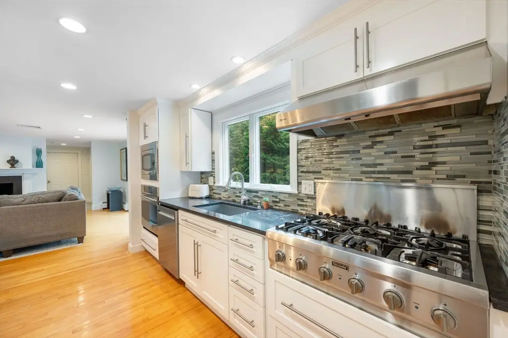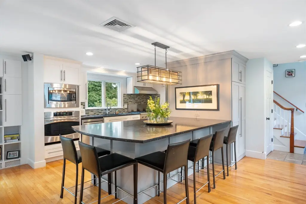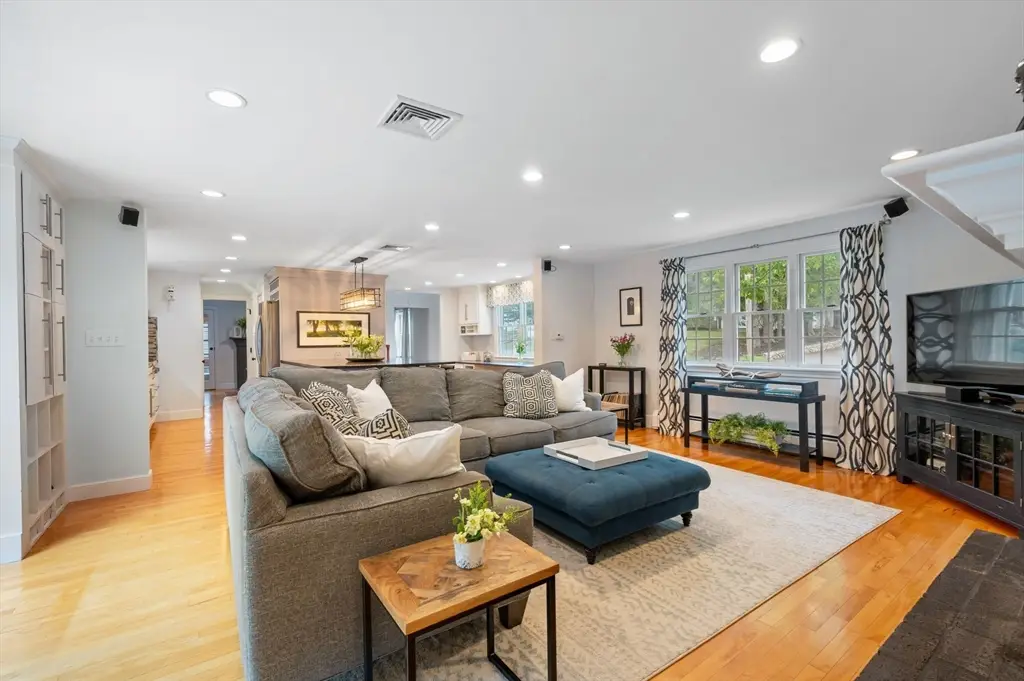 Nestled in one of Hingham's most desirable neighborhoods, this beautifully updated home offers an unbeatable location~just minutes from Hingham Square, harbor, Foster Elementary, & ferry to Boston. Step inside to an open & spacious kitchen, featuring a 6-burner gas cooktop, wall oven, and a generous 5 x 8-foot peninsula. Designed for both cooking & gathering, this kitchen is truly the heart of the home. The open floor plan continues into a large family room w/ a cozy fireplace & sliders leading to a 16 x 11-foot deck, perfect for entertaining or relaxing while overlooking the terraced backyard, including a lower-level patio complete with a built-in firepit, ideal for cool evenings. Flexible living spaces include a sun-filled sunroom, perfect for a home office or reading nook, and a fireplaced living room that could also serve as a formal dining room. Upstairs, are 2 nice sized bedrooms, full bath, and the spacious primary offering a large closet, and ensuite bath. LL playroom, 1 car garage.