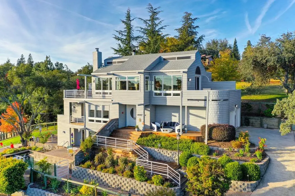 Nestled in the heart of Fair Oaks, this remarkable property offers breathtaking views of the American River Parkway, providing a scenic backdrop to daily life. Drawing inspiration from the timeless designs of the historic architect Frank Lloyd Wright, the luxurious tri-leveled residence spans 2,471 square feet, featuring an entertainer's dream top-level great room and kitchen, and a separately heated pool and spa. Situated on a 1.07-acre horse property, the estate is equipped with a 5-stall, plus storage barn, and riding arena, catering to the needs of equestrian enthusiasts. Boasting direct horse access to the nearby American River, residents can seamlessly integrate the tranquility of nature into their daily routine, creating a unique living experience. Beyond the equestrian amenities, the property's spacious lawns and vibrant floral garden enhance its allure, transforming it into more than just a horse property - it's a transformation of the urban lifestyle. The possibilities are limitless!