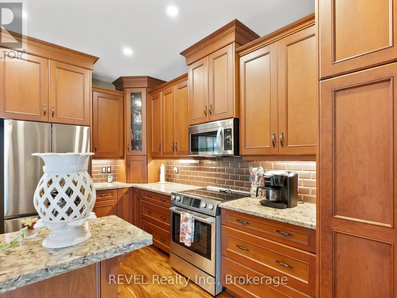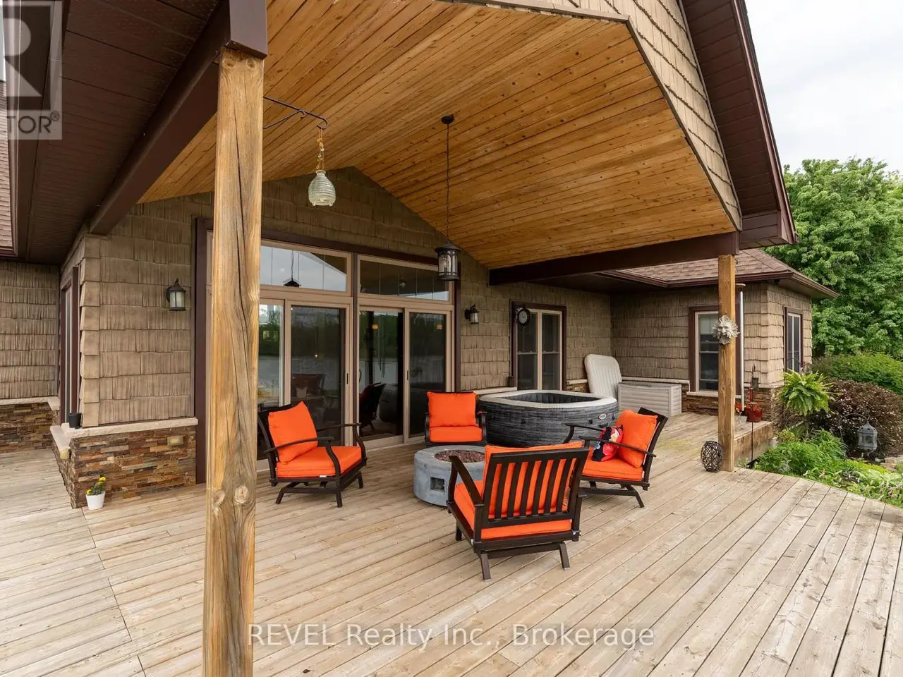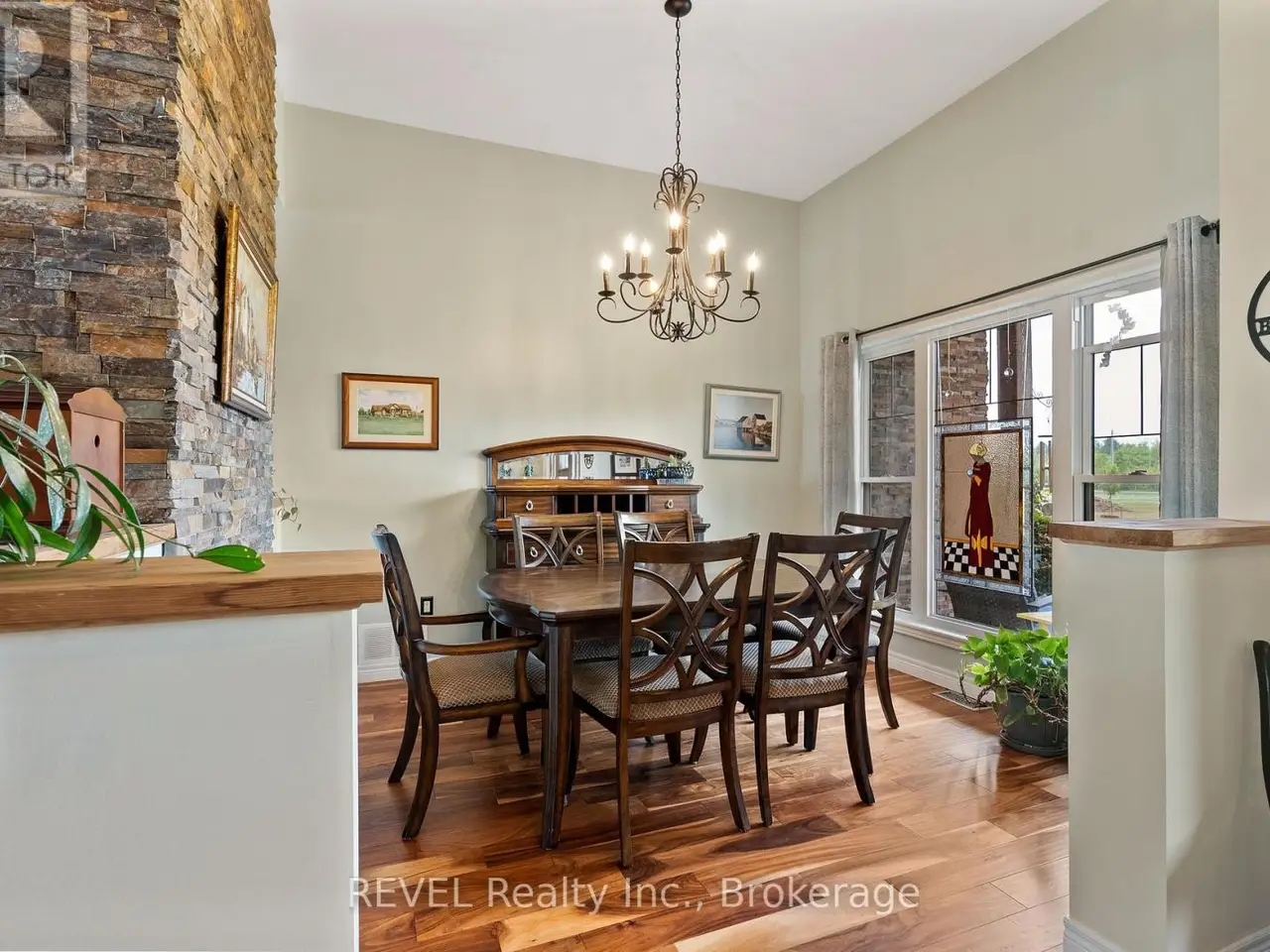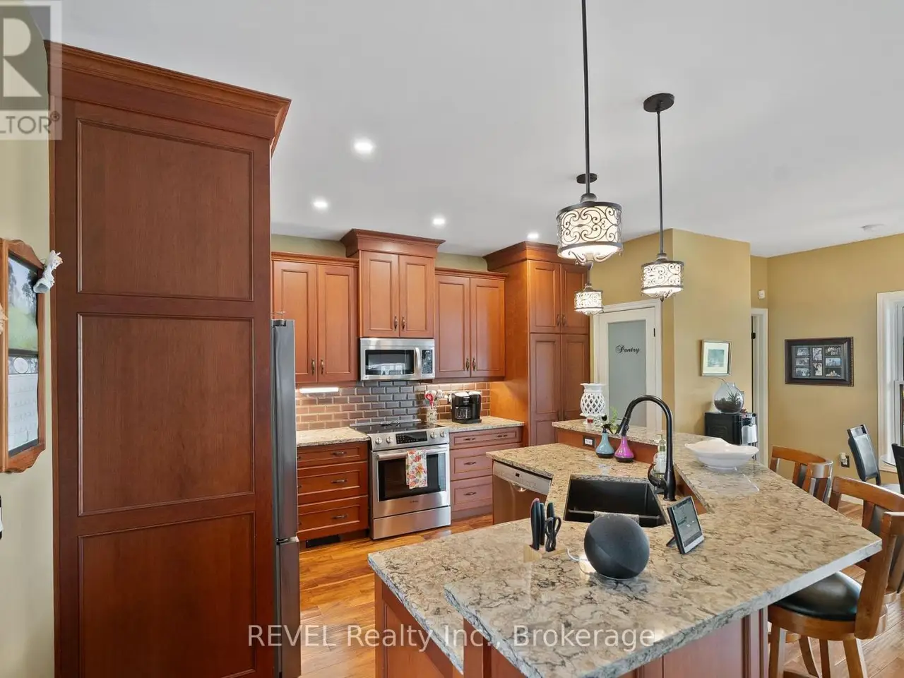 Located just outside the City of Port Colborne with sweeping Wainfleet views, this beautifully appointed bungalow backs onto the serene Port Colborne Quarry Pond and includes .5 acres of owned underwater land, offering an unmatched setting for water recreation and peaceful living. The home blends cottage charm with modern comfort, featuring four bedrooms and two bathrooms, including a private primary suite overlooking the pond with a luxurious 5-piece ensuite boasting a tile walk-in shower, soaker tub, and walk-in closet. The open-concept main floor is designed for both relaxation and entertaining, with vaulted ceilings in the living room, a striking stone gas fireplace, and large windows that frame the stunning quarry views. The kitchen is well-equipped with quartz countertops, a large island with bartop seating, stainless steel appliances, and a generous pantry, flowing seamlessly into the living and dining areas with rich hardwood flooring and real wood doors throughout. Two additional main-floor bedrooms, a full 4-piece bathroom, and an office that can serve as a fourth bedroom provide ample space for family or guests. A large covered rear deck with a vaulted roof extends your living space outdoors, overlooking an eight-year-old inground pool with a new pump and filter ideal for summer enjoyment. Additional highlights include a main-floor laundry room, an extra-large attached two-car garage, a 35x40-foot detached shop with full vehicle lift and air compressor, and a 5-foot height unfinished basement for storage. With a cistern water supply and a location that offers a true Muskoka-like experience just minutes from all local amenities, this home delivers the ultimate blend of lifestyle, privacy, and practicality.