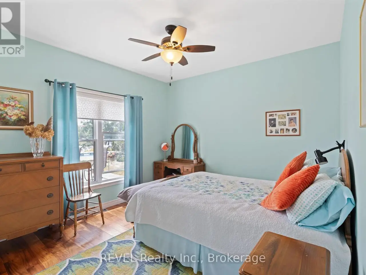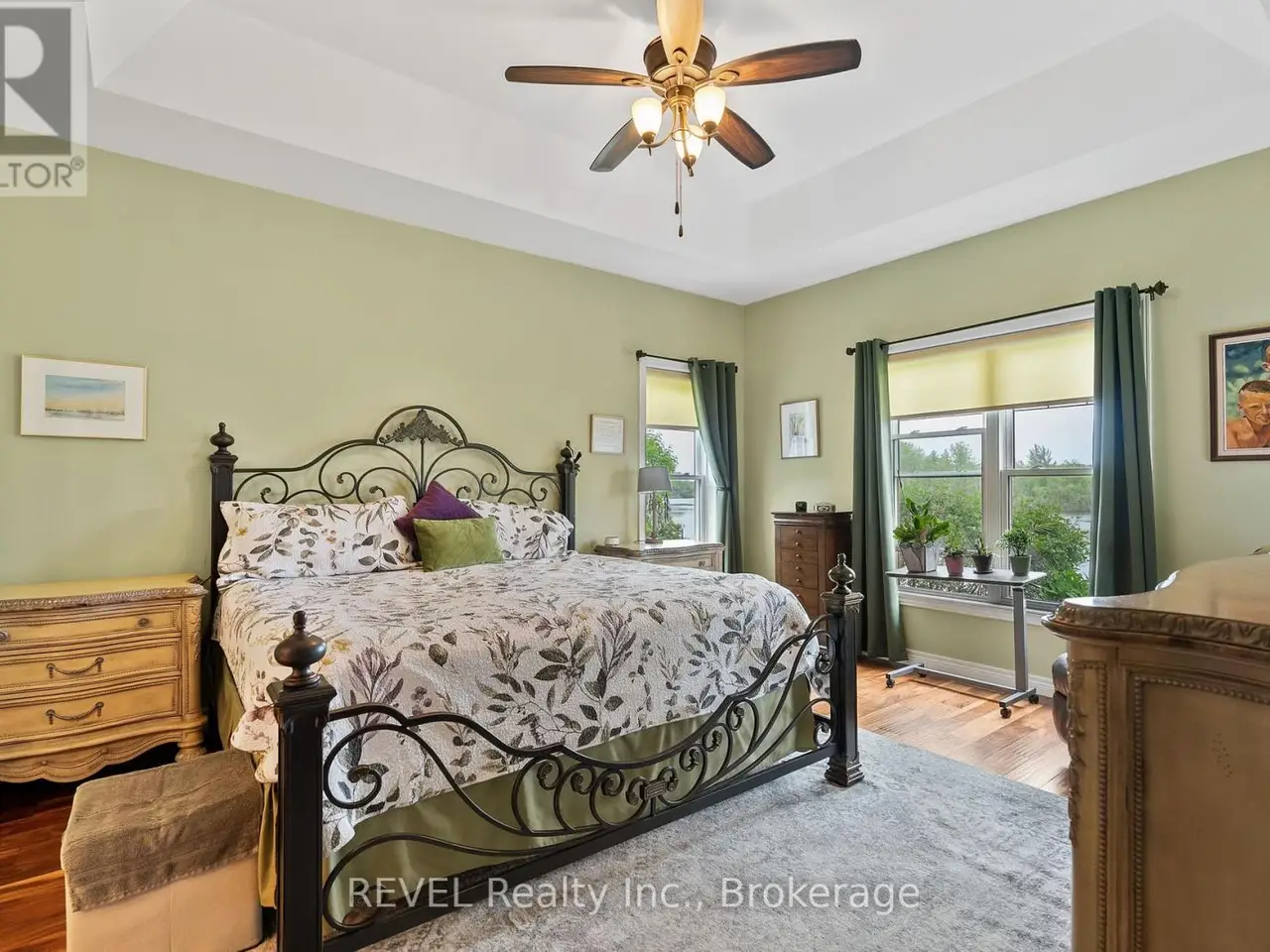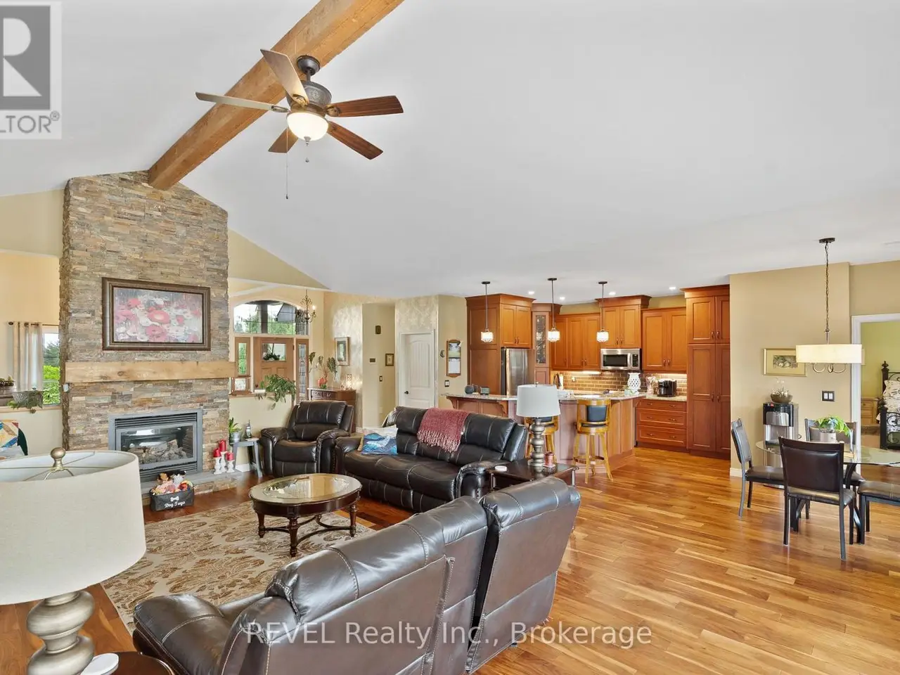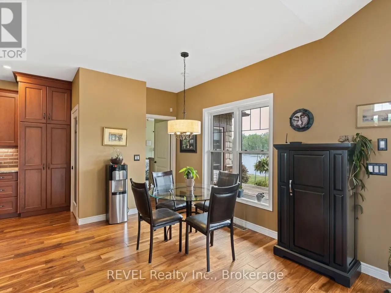 Located just outside the City of Port Colborne with sweeping Wainfleet views, this beautifully appointed bungalow backs onto the serene Port Colborne Quarry Pond and includes .5 acres of owned underwater land, offering an unmatched setting for water recreation and peaceful living. The home blends cottage charm with modern comfort, featuring four bedrooms and two bathrooms, including a private primary suite overlooking the pond with a luxurious 5-piece ensuite boasting a tile walk-in shower, soaker tub, and walk-in closet. The open-concept main floor is designed for both relaxation and entertaining, with vaulted ceilings in the living room, a striking stone gas fireplace, and large windows that frame the stunning quarry views. The kitchen is well-equipped with quartz countertops, a large island with bartop seating, stainless steel appliances, and a generous pantry, flowing seamlessly into the living and dining areas with rich hardwood flooring and real wood doors throughout. Two additional main-floor bedrooms, a full 4-piece bathroom, and an office that can serve as a fourth bedroom provide ample space for family or guests. A large covered rear deck with a vaulted roof extends your living space outdoors, overlooking an eight-year-old inground pool with a new pump and filter ideal for summer enjoyment. Additional highlights include a main-floor laundry room, an extra-large attached two-car garage, a 35x40-foot detached shop with full vehicle lift and air compressor, and a 5-foot height unfinished basement for storage. With a cistern water supply and a location that offers a true Muskoka-like experience just minutes from all local amenities, this home delivers the ultimate blend of lifestyle, privacy, and practicality.