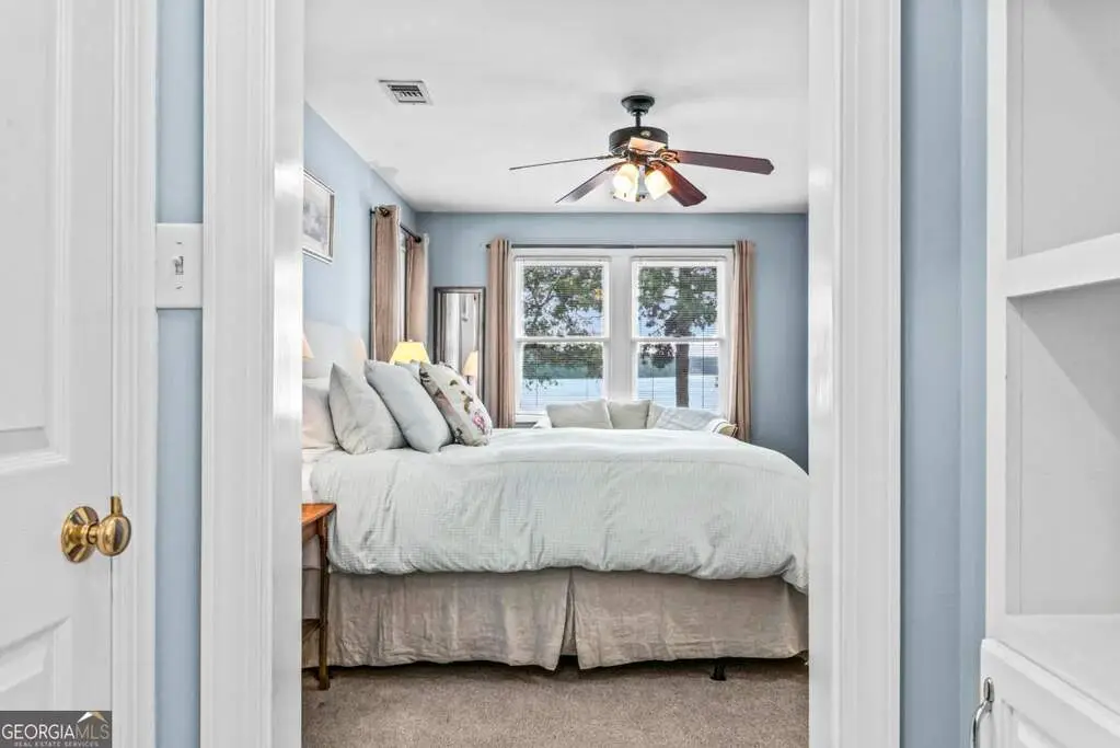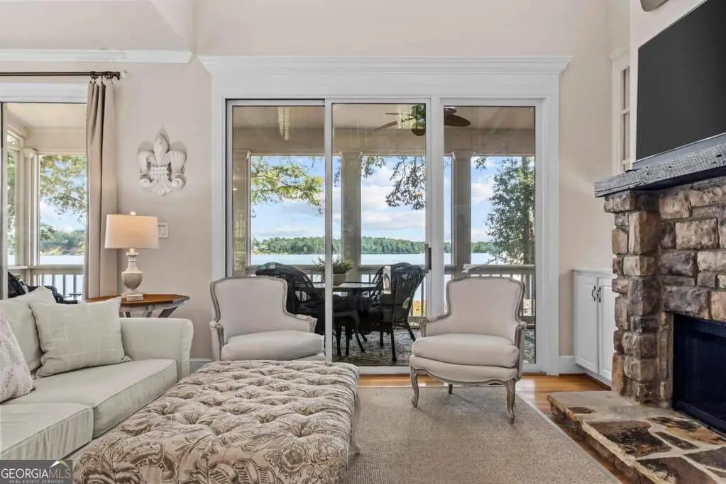 Experience the ultimate Lake Oconee lifestyle in this charming cottage, nestled in the prestigious Great Waters at Reynolds community. Ideally situated just steps from the water and dock area, this home offers unparalleled convenience and access to all the lake has to offer. This beautiful 3-bedroom / 3.5-bathroom cottage is the perfect blend of comfort and low-maintenance lakefront luxury. Designed for effortless living, the main level features a spacious and private primary suite with a dual-sink vanity, soaking tub, and a separate shower, providing a tranquil retreat. The open and inviting floor plan flows seamlessly from the living room to the spacious kitchen, equipped with stainless steel appliances and granite countertops, perfect for family gatherings or entertaining guests. Two additional well-appointed bedrooms and private bathrooms are located upstairs, offering ample space for family and friends. Step outside to the inviting screened-in back porch and be captivated by the biggest and most breathtaking views on the lake. Whether you're enjoying your morning coffee or unwinding with an evening cocktail, this is the perfect spot to soak in the natural beauty and tranquility of Lake Oconee. The beautifully landscaped yard leads down to your community dock steps away, offering easy access to the water for boating, fishing, or simply enjoying the sunset. Located in a peaceful cul-de-sac, this lakefront retreat provides both privacy and convenience, just minutes from local shopping, dining, and golf courses. This cottage is more than a home; it's a gateway to a premier lakeside community, blending the comfort of a serene retreat with the luxury and amenities of Great Waters at Reynolds. Whether you're seeking a weekend getaway, short-term rental investment property, or a full-time residence, this charming lakefront cottage offers an unparalleled lakeside lifestyle. Don't miss this rare opportunity to own your FULLY FURNISHED dream cottage with BIG WATER VIEWS on Lake Oconee! Golf Membership Available.