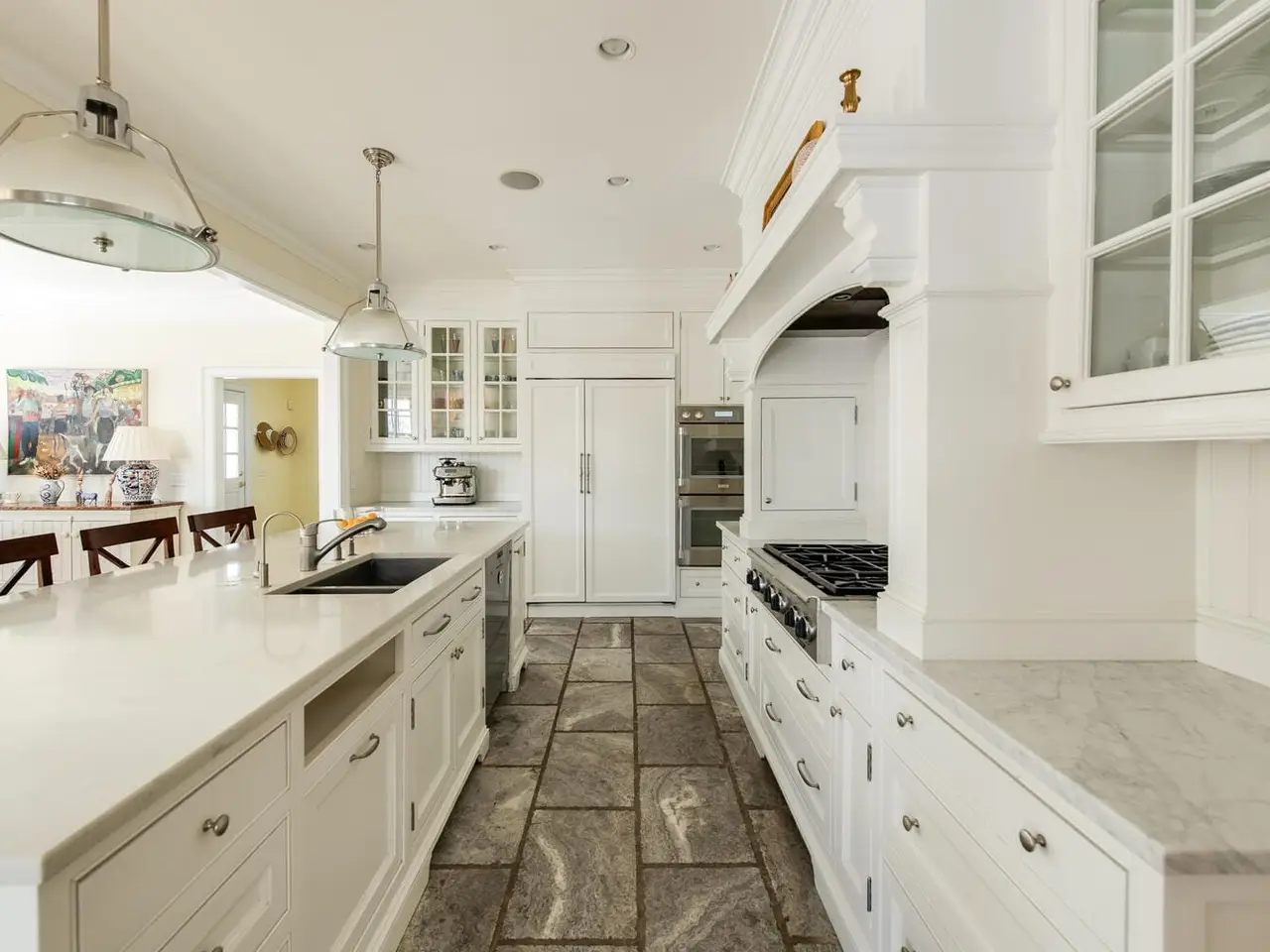 This magnificent Modern Farmhouse, sheltered in an elegant landscape of rolling hills, mature trees, colorful gardens and a 7-acre lake, is the quintessential Hudson Valley retreat on 43+ picturesque acres. Located an easy five minutes from historic, cultural-rich Rhinebeck Village, its the country destination for the sophisticated buyer who values privacy, property and proximity. The striking 2005 home by award-winning architects Brooks & Falotico, has been meticulously refreshed and re-imagined with exceptional materials and every luxury amenity. From canoeing and ice skating on the lake to hiking scenic trails, luxuriating in the 20' x 40' pool (with subtle accent lighting for night swims) or tending to the flowering plants, this extraordinary property provides four seasons of pleasures and pursuits for family and guests. Seamlessly blending indoor and outdoor living, the 6,050-square-foot, 5-bedroom main house is thoughtfully designed with an abundance of airy spaces for entertaining, culminating in a showstopping wraparound porch (with brand-new Aeratis Heritage decking) thats topped with a stunning covered sun porch. Inviting architectural details--including classic crown molding, rich hardwood and radiant-heated polished stone floors, custom built-ins, and plush window seatscreate an interior atmosphere of warmth, comfort, and refinement. The impeccably appointed open-concept kitchen features Carrara Marble countertops, a generous butlers pantry with an authentic antique home vibe, and premier appliances from Thermador, Miele, and Sub-Zero. This crowd favorite gathering space conveniently spills into a sunny breakfast room, warmed by a fireplace. Maximizing versatility, a handsome office with views of the terrace, a walk-in cedar closet and a stylishly renovated full bath, can easily be converted into a first-floor bedroom if desired. Anchoring the main level is a sprawling sunroom sanctuary, with radiant-heated stone floors, walls of windows, built-in bookshelves and French doors to an expansive patio. Upstairs, the luxurious primary suite boasts a barrel-vaulted coffered ceiling and access to a private balcony that promises morning coffee in peace and quiet. Another favorite multi-use space, dedicated to wellness, is the gym/yoga/Pilates studio above the three-car garage. Tucked down a long, idyllic driveway flanked by impeccably maintained crabapple trees, this enchanting property continuously surprises with its timeless elements: a traditional cedar pergola embellished with fragrant wisteria, a whimsical treehouse, rambling stone walls, and meandering bluestone paths. Discover one of Rhinebecks most coveted addresses: enviably close to Rhinebeck Village and ten minutes from Amtrak and the Taconic State Parkway.