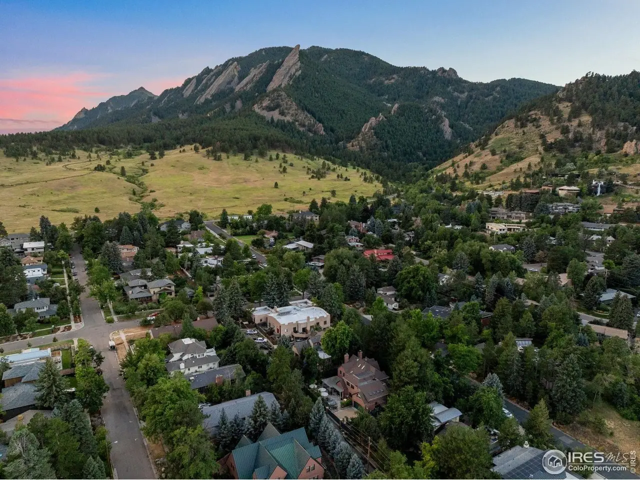 The Flatirons shape Boulder's identity. Flagstaff defines the view. Set just beneath Flagstaff Mountain on some of the city's most prized ground, this is a home rooted in both nature and prestige. The location is unmatched. In a region ranked among the most desirable places to live in Colorado, and arguably the country, this small enclave consistently leads the way in demand, stability, and lifestyle appeal. Designed by Scott Coburn, the architecture reflects a timeless sensibility with clean lines, exceptional light, and a seamless connection to the outdoors. This is a home where proportion matters more than flash, and where well-considered spaces flow with ease. The result is a layout that invites calm, comfort, and quiet. Flagstone paths, terraced gardens, and multiple stone patios extend the living experience into the landscape. The lawn is framed by flowering crabapple trees, Japanese maples, and curated plantings, all enclosed by custom wrought-iron fencing. Morning coffee, late summer dinners, and crisp fall afternoons all find their rhythm here. Inside, the remodeled kitchen and gathering areas are fluid and welcoming, anchored by a built-in breakfast nook with cushioned wraparound seating. Upstairs, the primary suite opens to a private balcony with Flatiron glimpses in the shadow of Flagstaff. The lower level includes a media room, two additional bedrooms, a flexible space for fitness, office, or studio use, and a cool-storage room perfect for a wine collection. With solar power, mature landscaping, and strong structural integrity, the home is ready for thoughtful updates and poised to reward them. In a market where location is everything, this property offers one of the rarest advantages-enduring value in one of Colorado's most sought-after places to live. Just minutes from downtown, within Boulder's top-rated school district, and steps from miles of iconic trails, the setting speaks for itself.
