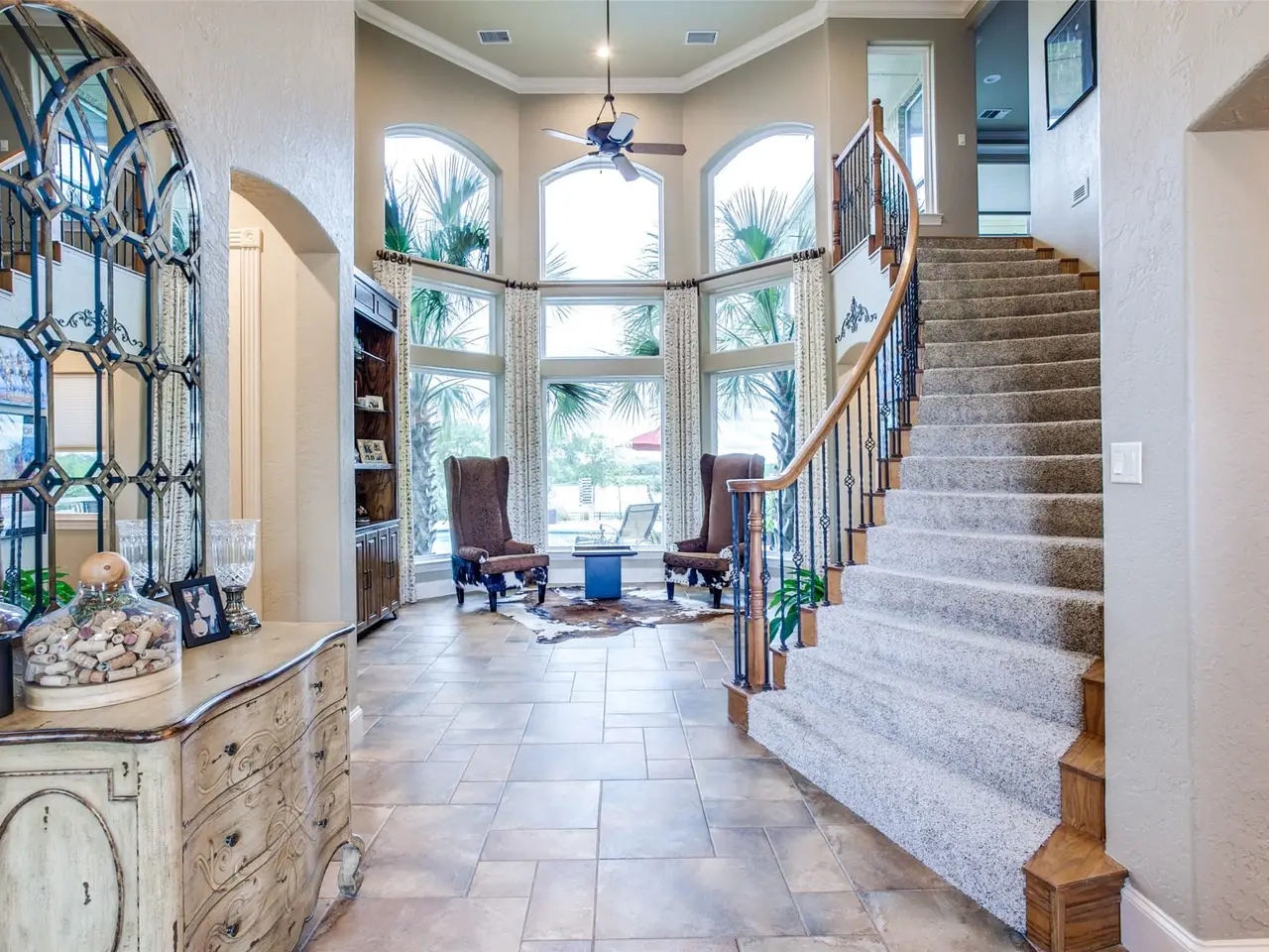 110 Eagle Point is an impressive, lakefront home located within Crystal Cove Estates and minutes from downtown Waxahachie or 40 minutes from downtown Dallas and 53 minutes from Ft.Worth.Situated on an expansive 1.53 acre lot with sweeping views of Lake Waxahachie, this elegant, family home offers easy entertaining all year round. The entryway boasts of a two story ceiling and grand windows facing directly over the pool and patio to the lake beyond. With the primary owners' suite and additional guest bedroom suite on the first floor and two additional bedrooms on the second floor, plus a media room, second living area, and snack bar there is room for the whole family and your guests. A formal dining room off the grand entry opens to an expansive entertaining space complete with the chef's kitchen and breakfast area where family and friends will gather. The high tensile stainless steel screened in dining porch off the kitchen overlooks the beautiful pool and fire pit. A new roof was completed in May.. Enjoy this gorgeous home and the serene setting year round whether dining al fresco, boating on the lake and relaxing by the pool in the summer or sharing stories by the fire pit when the Texas heat cools down. Wildlife abounds and the sunsets are spectacular.
