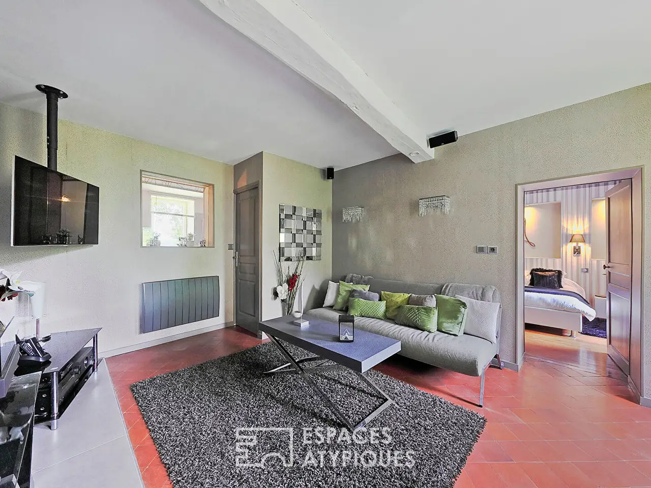 Located in a preserved and peaceful natural setting, an hour and a half from Paris, this magnificent Brie farmhouse, whose history dates back to 1425, offers over 500m2 of living space on a plot of over one hectare, offering a refined living environment combining tranquility and high-end amenities.Set around a typical square courtyard, the property consists of a renovated 50-meter-long farmhouse, housing several independent apartments, a complete wellness area, and quality equestrian facilities. The property stands out for its harmonious layout, its fine materials, and its ability to accommodate a turnkey family, tourist, or professional project.The main house, approximately 200m2, captivates with its generous space, character, and meticulous appointments. A large entrance leads to a cozy living room with a Canadian wood-burning stove, a high-end open kitchen extending onto a south-facing terrace, as well as four spacious bedrooms with walk-in closets and a bathroom upstairs.Two cottages complete this complex: the first, measuring 160m2, features a vast living room with a sitting area around the fireplace, a billiard table, a kitchenette, and four bedrooms and three bathrooms upstairs;the second, measuring 85m2, offers a luxury suite with a bedroom, a small living room, a kitchen, a bathroom, and a spa with a jacuzzi, sauna, and multi-sensory shower.A separate wellness area offers a swim spa with counter-current swimming and balneotherapy, a sauna, a steam room, a massage room, and a reception lounge.Outside, a building houses the equestrian facilities, which include a stable with 12 stalls, a tack room, and a grooming area. This complex can be converted into a reception and meeting room.A 120m2 house remains to be renovated to provide additional accommodation.Stabilized paddocks and a large meadow can be used as a parking area.A garage, a workshop, several outbuildings, and a parking lot complete the property's amenities.The landscaped garden offers a beautiful diversity of tree species and flowerbeds, a pond bordered by a majestic weeping willow, terraces, and unobstructed views that enhance the tranquility of the setting.Just 5 minutes from amenities and 15 minutes from the neighboring towns of La Ferte-sous-Jouarre and Montmirail, its proximity to a train station connecting Paris-Est and the A4 highway enhances its rental potential.The property requires no work and is sold furnished and equipped.Whether for professional use or a family reunion project, this estate is a rare opportunity that combines comfort, nature, and versatility.ENERGY CLASS: D / CLIMATE CLASS: BAnnual energy expenditure for standard usage based on indexed energy prices for 2021, 2022, and 2023 (including subscription) is between €4,299 and €5,817 per year.Contact: Elvire de la MARTINIERE - +33 6 03 05 05 96RSAC (Registered Service for Residential Buildings): 800 930 232 MEAUXEnvoyer des commentairesREF. SM1154Additional information* 20 rooms* 9 bedrooms* 1 bathroom* 4 shower rooms* Outdoor space : 13484 SQM* Property tax : 4 441 €Energy Performance CertificatePrimary energy consumptiond : 192 kWh/m2.yearHigh performance housing*A*B*C*192kWh/m2.year6*kg CO2/m2.yearD*E*F*GExtremely poor housing performance* Of which greenhouse gas emissionsb : 6 kg CO2/m2.yearLow CO2 emissions*A*6kg CO2/m2.yearB*C*D*E*F*GVery high CO2 emissionsEstimated average annual energy costs for standard use, inde