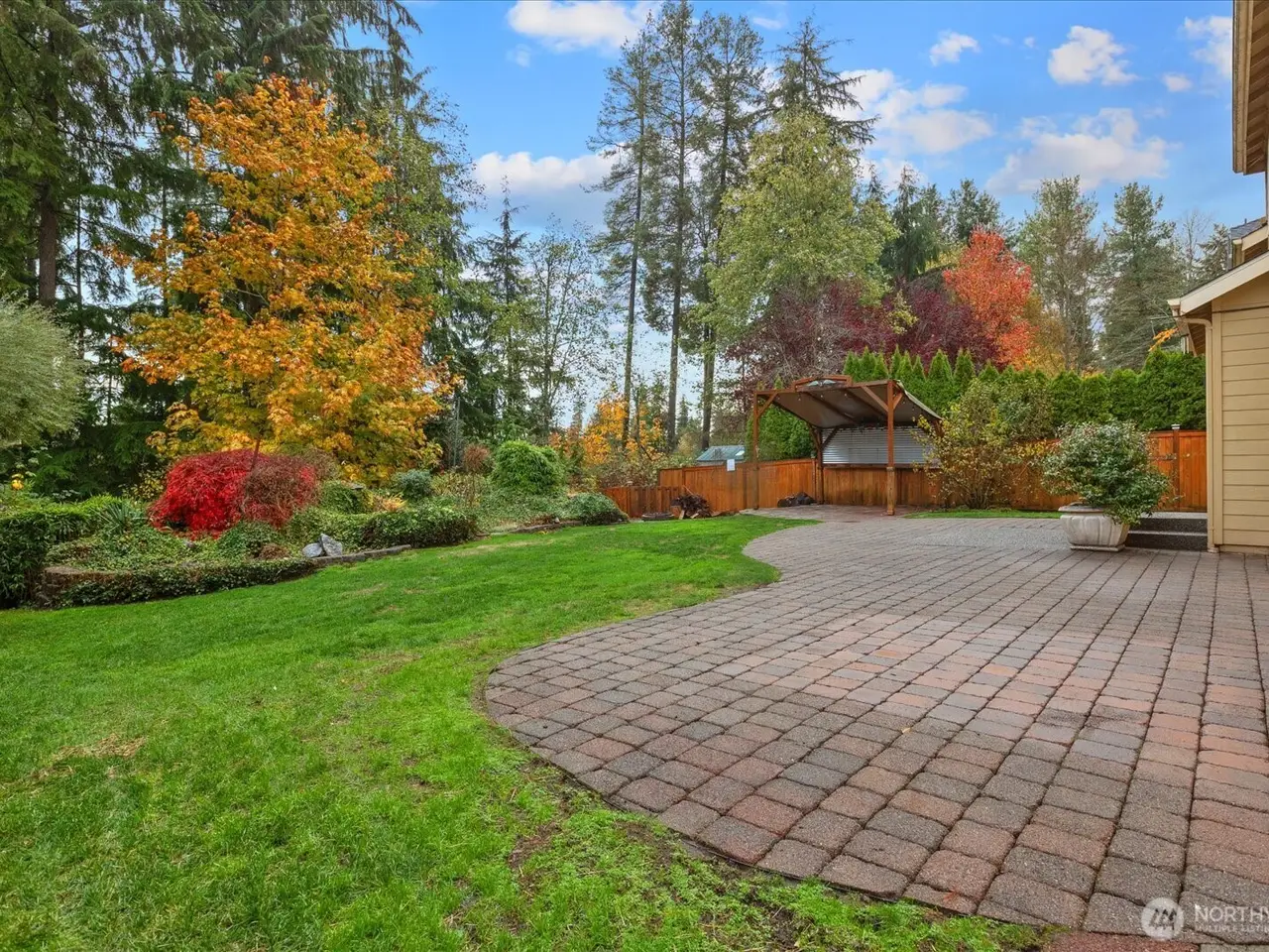 Welcome home! This spacious property features 4 bedrooms + main-floor den and an 3/4 bath offering the perfect floorplan. Tucked on a greenbelt in a quiet division of Silver Firs, this home offers the ideal blend of community and privacy. Soaring ceilings & crisp vinyl flooring greet you upon entry, creating a bright and open feel that carries into the gourmet kitchen with SS appliances, granite counters, and custom painted cabinetry. The main-floor 3/4 bath and private den is ideal for guests or home office setup. Upstairs you will find all new carpeting and spacious primary suite with attached bath and walk in closet with built ins. Backyard is perfect for entertaining with 900sqft patio and firepit area, come see it today!