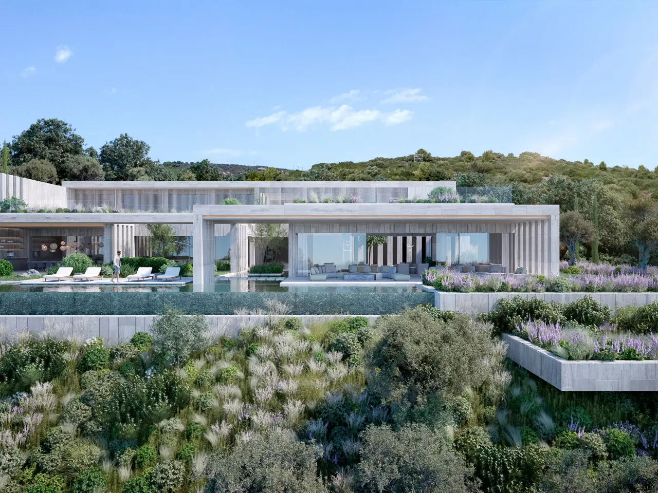 Nestled in the heart of The Fifteen, the most private and elevated community of La Reserva de Sotogrande, this extraordinary residence represents the perfect synthesis between architectural elegance, nature and absolute comfort. With south orientation and open views to the Mediterranean Sea, the golf course of La Reserva, the Real Club de Golf Sotogrande and the Rock of Gibraltar, this property has been designed to enjoy the natural beauty of the surroundings from every corner of the house. Distributed on two floors and with more than 2,300 m2 built on a plot of 4,447 m2, this villa offers a life experience without concessions. It has seven bedrooms — including a master suite with panoramic views and private dressing room—, nine bathrooms, spacious open concept living areas, design kitchen with marble island, indoor and outdoor dining area, cellar, gym, office and a spectacular spa area with heated indoor pool and relaxation areas. All this articulated through bioclimatic patios that provide light, natural ventilation and constant connection with the landscape. Natural materials — such as travertine stone, solid wood and noble marbles — have been carefully selected to provide each space with a serene and timeless atmosphere. The architecture melts with the terrain through Mediterranean gardens with native vegetation and an infinity outdoor pool that seems to float on the horizon. The advanced automation system allows you to control air conditioning, lighting, audio and access from any device, ensuring maximum comfort and energy efficiency. In addition, housing has been conceived under sustainability criteria, with technologies such as aerotermia, photovoltaic energy and passive solutions that ensure constant internal temperature all year round, minimizing environmental impact. Located in a gated community with 24-hour surveillance and exclusive access, this property guarantees total privacy and absolute tranquility, in an enclave surrounded by nature, security and premium services. A few minutes away are the prestigious golf clubs, the international school, the marina, the Beach Club and the high-level sports facilities that make Sotogrande one of the most sought after residential destinations in Europe. A residence that is not only inhabited, but is experienced. A home where architecture celebrates light, silence and nature.