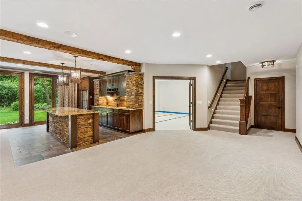Welcome to the Preserve at Whistling Valley. Located on a private lot that backs to Lake Elmo Park Reserve, this custom-built Zawadski home offers seven bedrooms, six bathrooms, and a layout designed for everyday comfort and entertaining alike. The main level features a chef’s kitchen with high-end appliances, a spacious primary suite, dual offices, and a three-season porch with floor-to-ceiling windows, gas fireplace, and reclaimed wood accents. Upstairs includes a bonus room, 5 bedrooms with built-ins, and a mix of Jack & Jill and en-suite baths. The walkout lower level is made for entertaining with a theater room, walk-behind bar, sports room, and custom bunk room. Fresh paint, new carpet, city water, community sewer, and thoughtful updates throughout make this home truly move-in ready.
