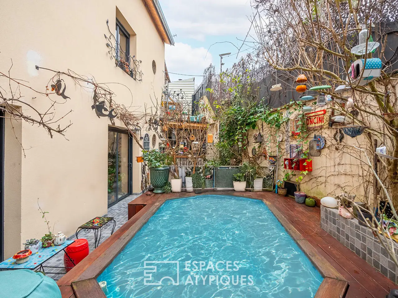 Located near Robespierre, in a passage sheltered from view, this house of 162 sqm on the ground (133 sqm living space) built in 2014 benefits from two independent entrances and an above-ground swimming pool. On the garden level, the entrance via the veranda creates a real SAS. A hallway distributes on one hand an office and on the other hand a living room of 45 sqm organized into several spaces such as the living room and the kitchen-diner benefiting from large bay windows and a wood stove. This room facing outside is extended by a terrace, a garden as well as a space decorated with an above-ground swimming pool. This South-West facing set is bathed in light. A laundry room and a separate toilet complete this level. On the ground floor, accessible by a staircase with railings designed by Didier Dantras, a hallway leads to two bedrooms with a shower room with WC and a bathroom with WC respectively. On the first floor, the master bedroom has a bedroom with multiple storage spaces, a living room, a dressing room and a shower room with WC. Recent energy equipment including an air-water heat pump, the calm and the generous volumes make this family home unique in the area. A parking space under a carport with the possibility of installing a charging station for electric vehicles completes this freehold property. Metro line 9: Robespierre 600 meters away Metro line 3: Gallieni 850 meters away REF. 9550 Additional information * 6 rooms * 4 bedrooms * 3 bathrooms * Outdoor space : 60 SQM * Parking : 1 parking space * Property tax : 4 335 € Energy Performance Certificate Primary energy consumption b : 99 kWh/m2.an High performance housing