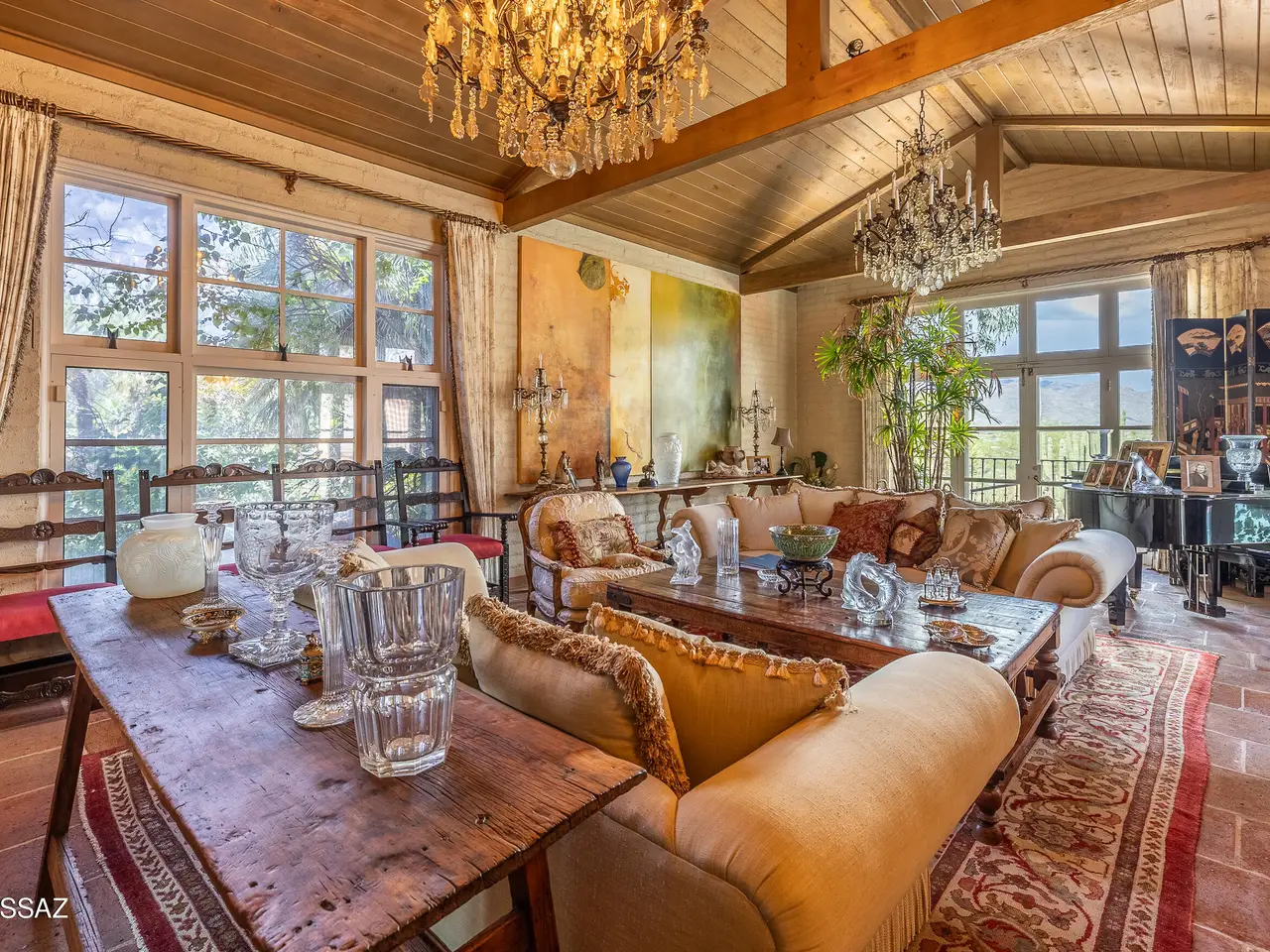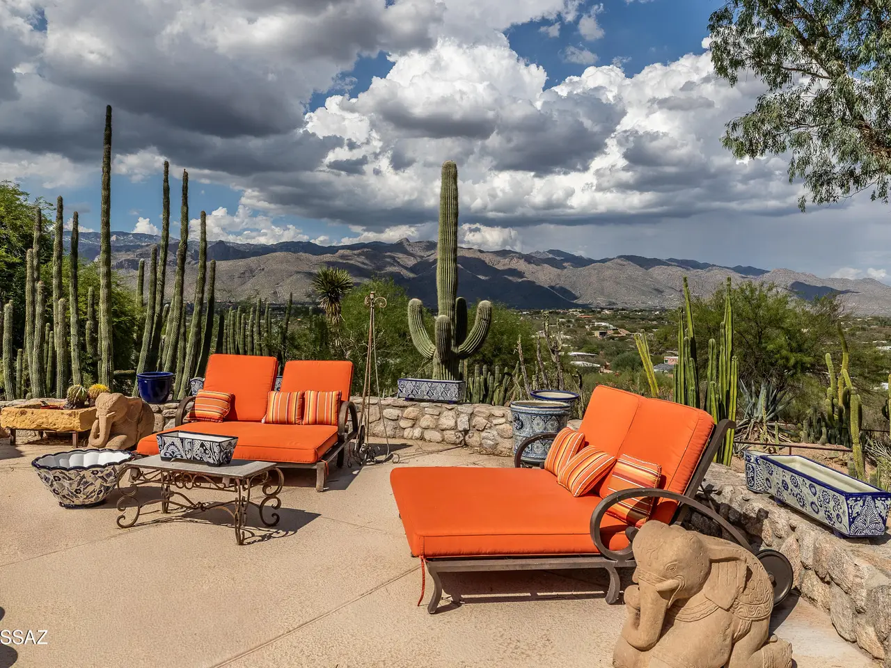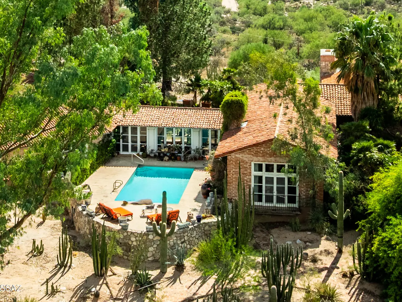TAR Home Winner & Long Realty Tanque Verde Office Winner. Timeless elegance meets western charm in this historic estate set among sweeping desert landscapes. Featuring original burnt adobe architecture, soaring ceilings, stone floors, wood beams, fireplaces, and generous living spaces, the home offers a rare blend of heritage and modern comfort. Designed with equestrian potential, it includes two 3.4-acre parcels where stables and corrals once stood, providing space to build, ride, or sell, along with a private well. This hillside property boasts panoramic mountain and desert views, a spacious updated kitchen, pantry, and grand entertaining areas, making it a unique opportunity rich in history and character.