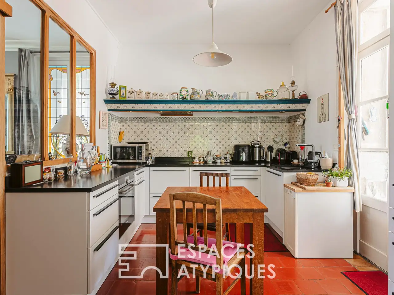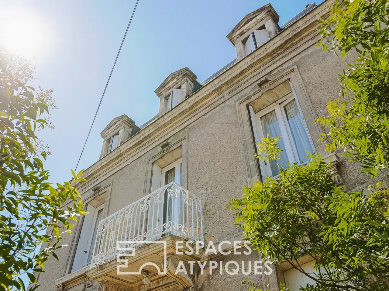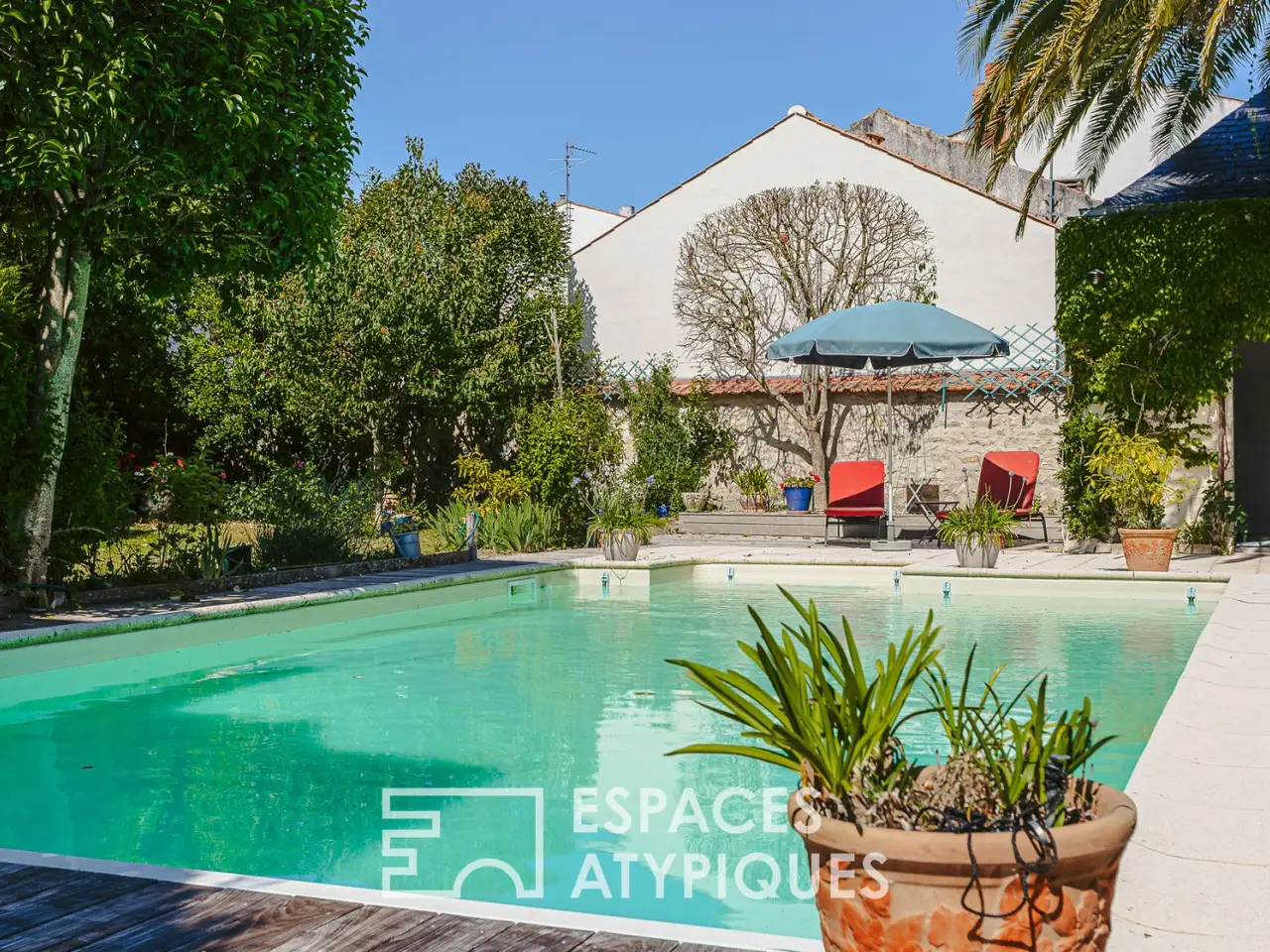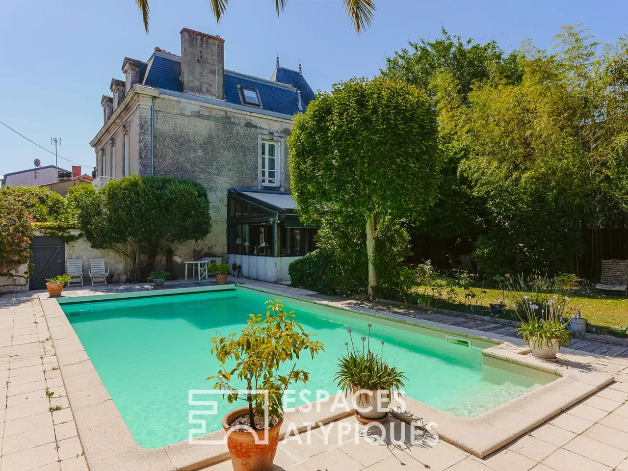 Nestled in the heart of the prestigious La Genette district of La Rochelle, this sumptuous mansion with approximately 240 m2 of living space, built in 1878, sits on a wooded and landscaped plot of approximately 750 m2, a notable rarity for the area. This exceptional residence invites a privileged lifestyle thanks to its sunny swimming pool, relaxing terraces, and lush garden adorned with local and international tree species. The entrance, clad in original cement tiles, leads to a generously proportioned living room, extended by a bright veranda offering a bucolic view of the verdant garden. The dining room, bathed in filtered light from stained-glass windows designed by a period artist, connects to a modernized kitchen featuring a hammered granite countertop, combining aesthetics and functionality. A cloakroom completes this level. Upstairs, a landing leads to three bedrooms, including a bright master suite of approximately 33 m2 with a shower room. The other two bedrooms also offer comfortable spaces, enhanced by antique parquet floors that create a warm atmosphere. A shower room is accessible from the landing. The top floor offers a vast open-plan room of over 60 m2, ideal for multiple layouts, complemented by a shower room. Flooded with light thanks to its multiple exposures, this space holds the potential to reveal a magnificent original roof structure for additional volume and character. Outside, the property reveals its assets with a beautifully planted and flowered garden, including a large swimming pool and a sunny terrace sheltered from prying eyes. At the front of the house, a second outdoor space highlights the facade and its gate. It also offers a side driveway shaded by a few palm and oleander trees. This driveway can accommodate several vehicles. While remaining calm and peaceful, the immediate urban environment of La Genette benefits from easy access to amenities, local shops, and schools. This mansion, with its preserved architecture, generous volumes, period features such as stained glass windows and parquet floors, as well as the generosity of its grounds, constitutes a unique property. It promises an exceptional living environment, combining the elegance of the past with an incomparable sweetness of life in La Rochelle. ENERGY CLASS: D / CLIMATE CLASS: D. Estimated average annual energy expenditure for standard use, based on energy prices for 2021, 2022, and 2023: between €3,840 and €5,290. REF. EALR2106 Additional information * 8 rooms * 4 bedrooms * 2 shower rooms * Outdoor space : 743 SQM * Property tax : 4 178 € Energy Performance Certificate Primary energy consumption d : 234 kWh/m2.year High performance housing