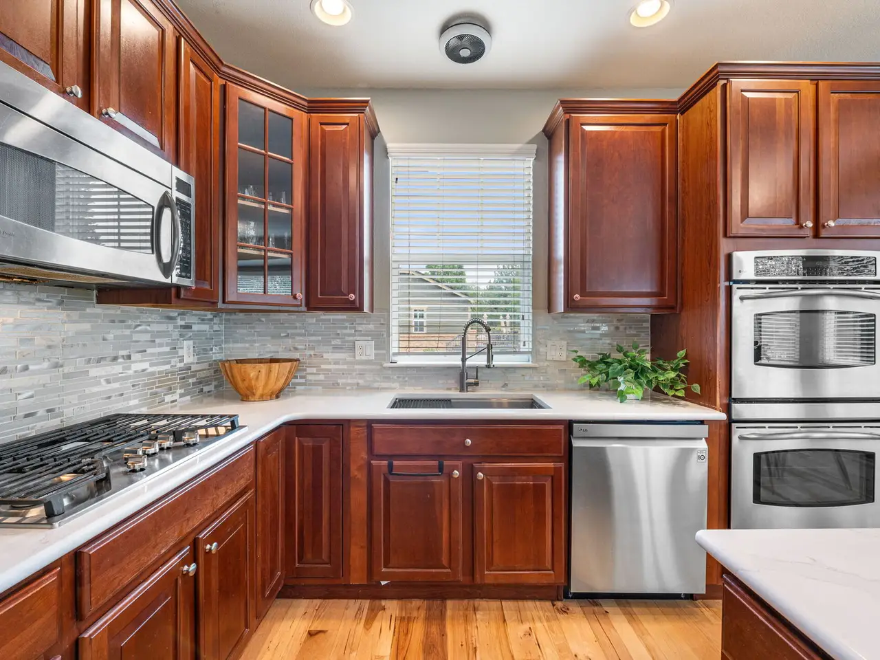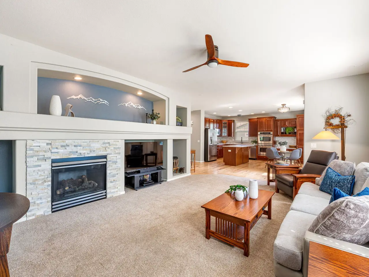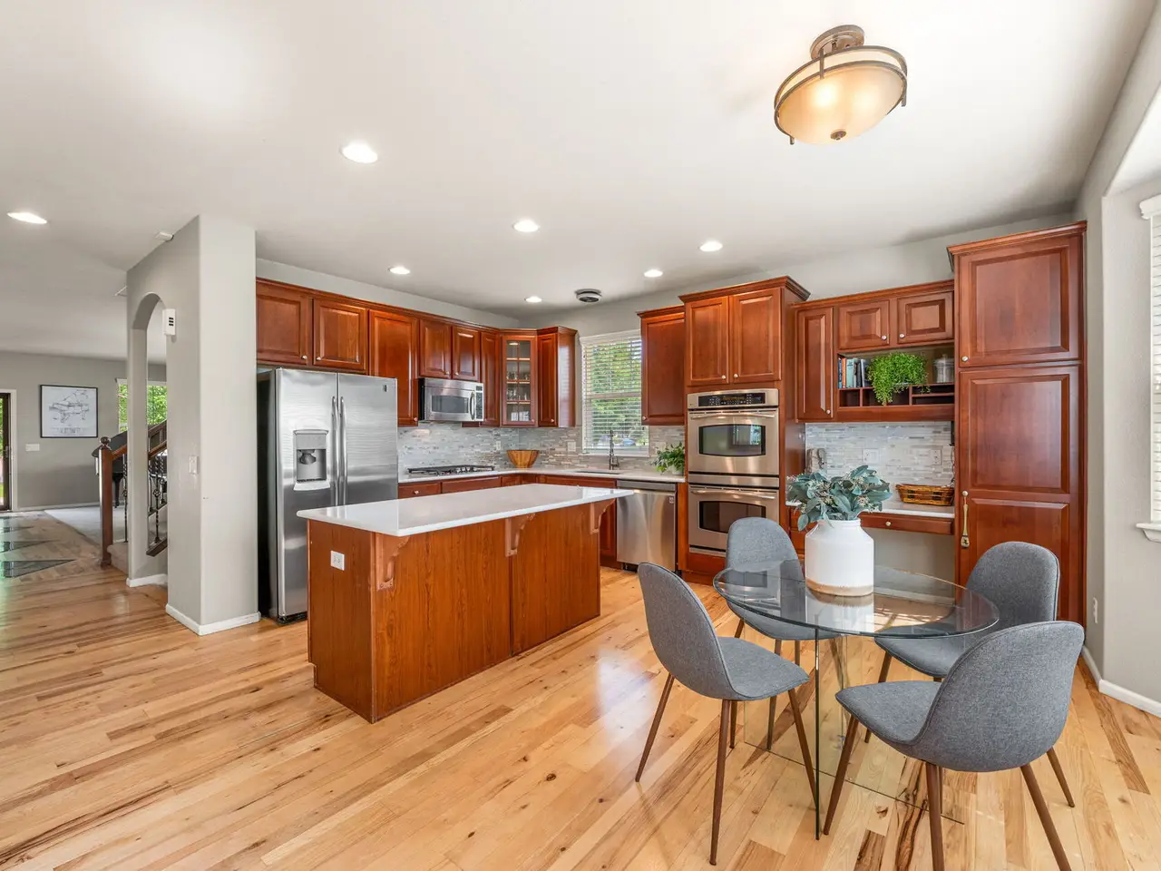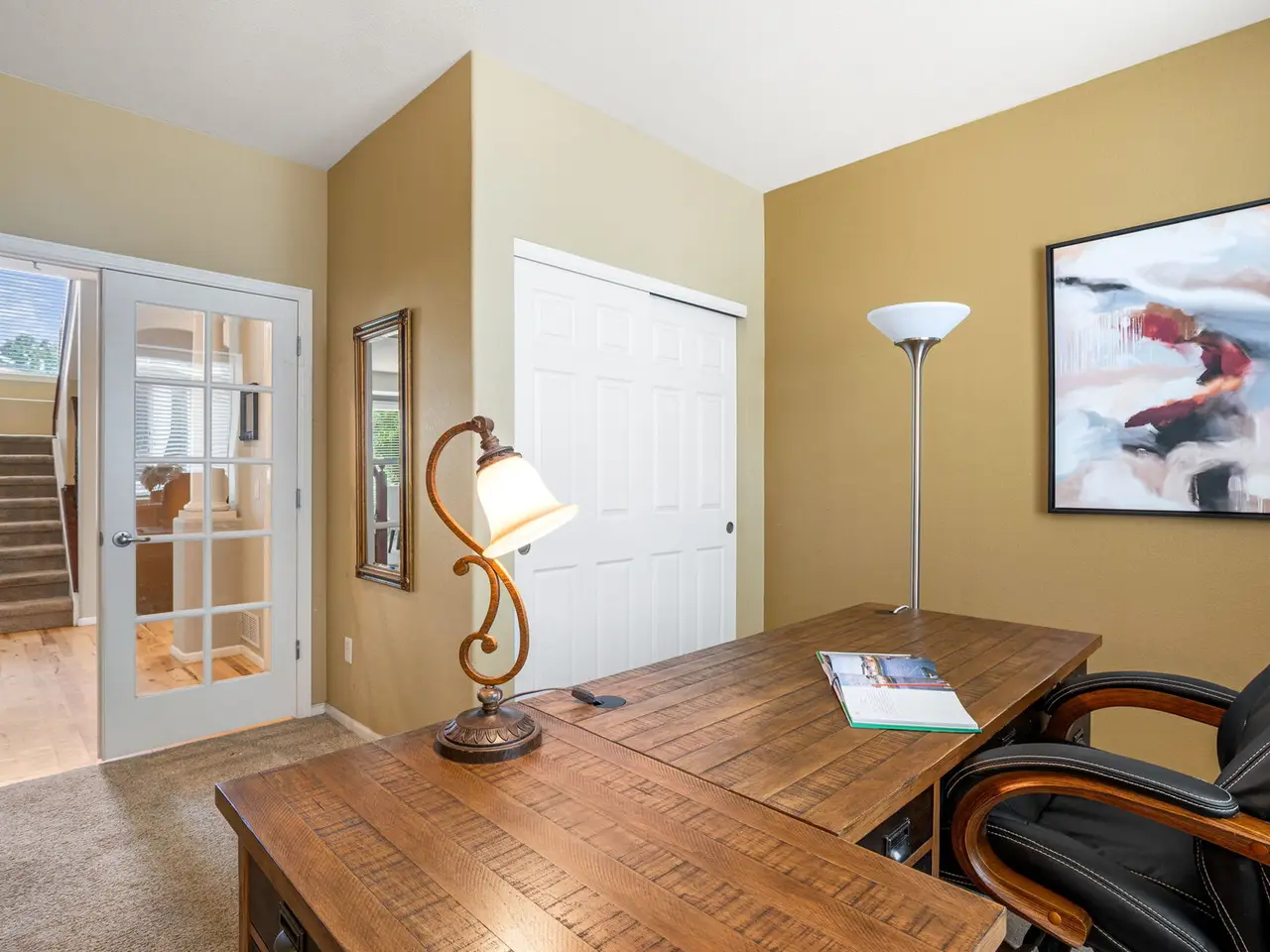 Fabulous corner-lot home in highly desirable Ryan Ranch, with stunning views of Table Mountain and the Rockies! Step inside to an open, light-filled floor plan featuring a gourmet kitchen with granite countertops, a large center island with seating, stainless steel appliances, and rich cherry wood cabinets. Hardwood floors flow throughout the main level, connecting the spacious family room, formal living and dining rooms, and a private main-floor study. Enjoy year-round outdoor living on the expansive mahogany deck with a covered pergola and powered shade awning. The private backyard is fully fenced, beautifully landscaped with mature plantings, and perfect for pets. A 3-car garage includes newer polyurea flooring plus upgraded storage. Upstairs, you'll find a large great room with hardwood floors, custom floor-to-ceiling bookshelves, generous bedrooms, and soaring ceilings. The professionally finished garden-level basement offers incredible flexibility with a convenience bar, recreation room with pool table, fitness area, large bedroom, full bath, and a spacious storage room. This home offers endless gathering spaces-including a family room, great room, loft, and entertainment areas-making it perfect for both everyday living and hosting. Recent upgrades include outdoor lighting, kitchen counters and cooktop, new mahogany deck, pergola, powered awning, new windows in kitchen and dens, ceiling fan and whole house fan, Generac whole-house generator, new carpet, and more. Ideally located on the Golden/Arvada border, this home is just steps from two recreation centers, shopping, and offers easy access to both downtown Denver and the mountains. With no neighbors on three sides, privacy abounds. The HOA covers common area maintenance, trash, fencing, and snow removal for truly low-maintenance living. This one-of-a-kind home is ready to impress-schedule your showing today!