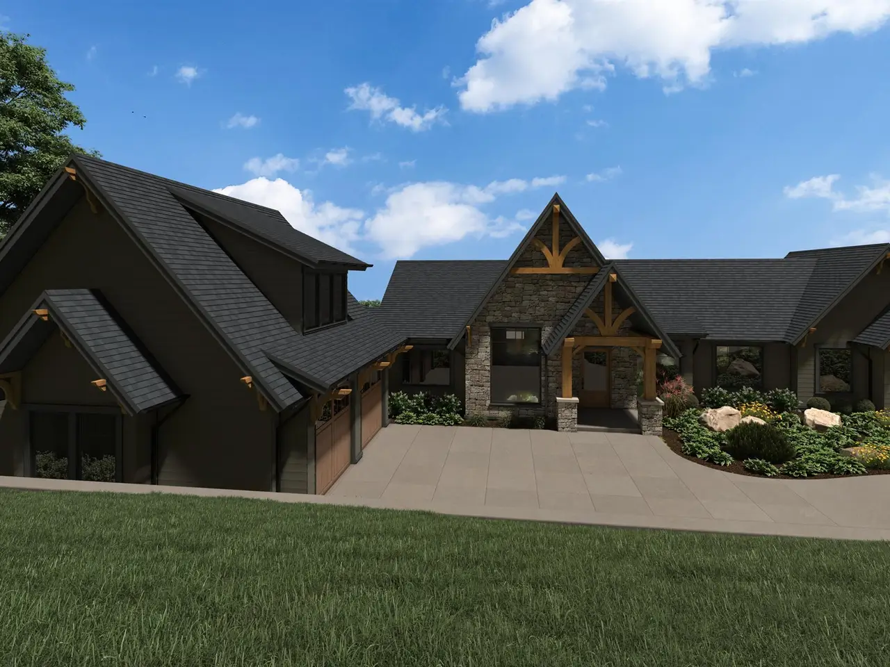 Nestled on a beautiful double lot, this exceptional land/home package offers an unparalleled living experience, combining luxurious design with panoramic long-range mountain views and vistas of the renowned Bright's Creek Golf Course. Set within the exclusive Bright's Creek Golf & Equestrian community, this home is the epitome of mountain elegance and modern comfort. The open-concept floor plan is perfect for both everyday living and entertaining, featuring soaring vaulted ceilings that create a sense of spaciousness throughout. The main floor is highlighted by a luxurious primary suite, offering privacy and convenience with direct access to the home's living spaces. The lower level offers versatile living space, including a den and two ensuites. For even more potential, the room above the garage can be finished to suit your needs as an additional bedroom, office, or entertainment space. Located within the prestigious Bright's Creek development, known for its exceptional golf.