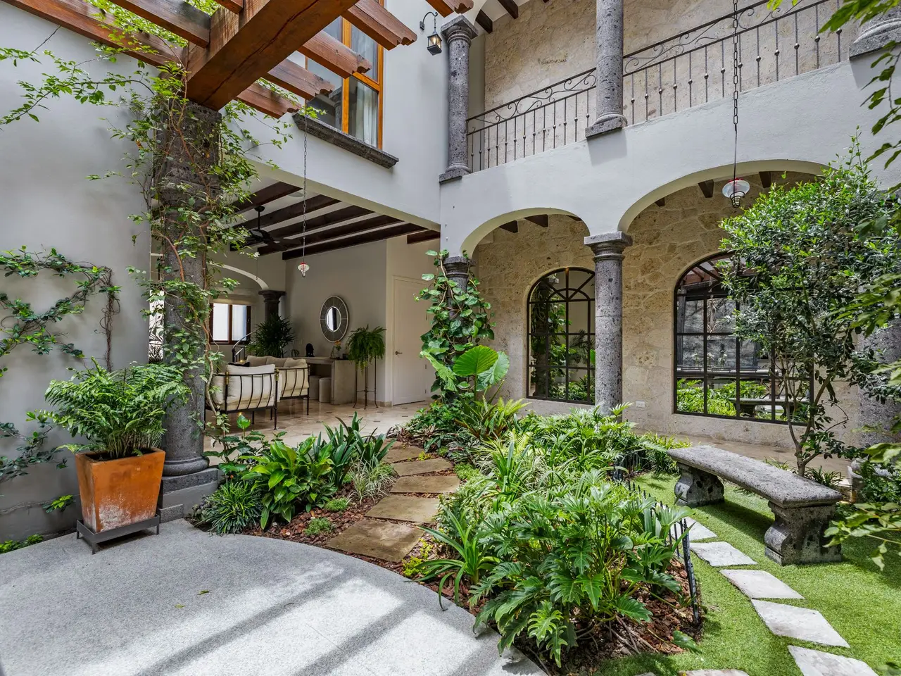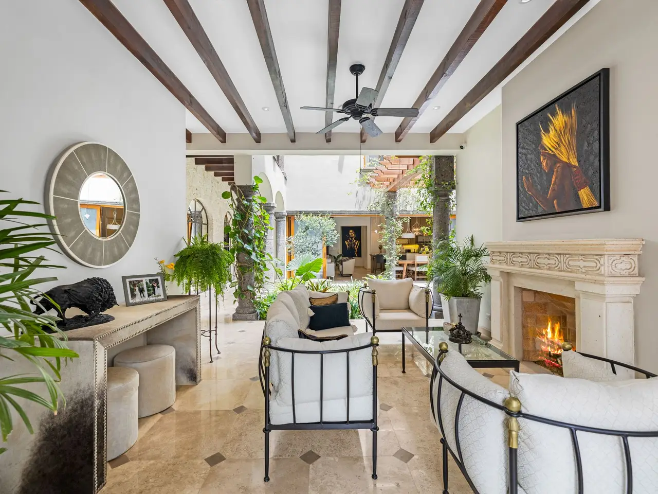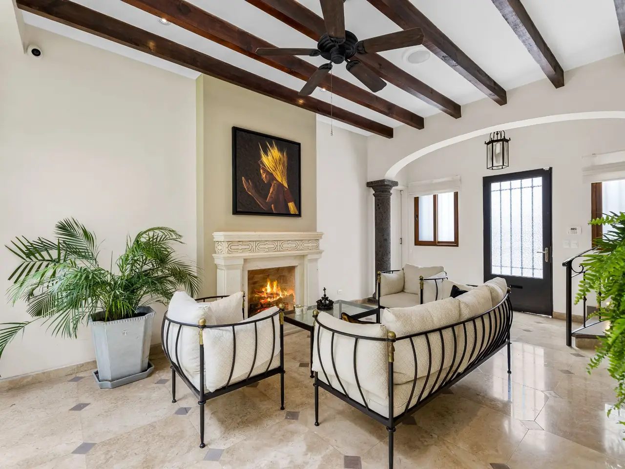 “A Contemporary Sanctuary with Colonial Soul in the Heart of San Miguel de Allende” Ideal for a discerning couple or family seeking the soul of Mexico with the comforts of contemporary living, Casa Mi Sueño is a stunning three-level residence that masterfully balances design, function, and location. Set on Avenida Allende—widely considered the most desirable street in the San Antonio neighborhood—this architectural gem by renowned architect Ana Delia López blends sophisticated minimalism with the charm and texture of colonial architecture. Just a short stroll from Instituto Allende, Juárez Park, the Rosewood Hotel, and the Parroquia de San Miguel Arcángel, this home places you at the cultural heart of the city while offering a peaceful private retreat. Upon entering at street level, you're welcomed into a serene vestibule with a gas fireplace, creating a warm and inviting first impression. A covered garage sits adjacent, providing both security and convenience. The heart of the home unfolds in the dramatic central courtyard, a tranquil open-air space designed for entertaining and relaxation. It features a grilling area, dining space, wiping wall fountain, gas fireplace, and a touch of greenery. A covered gallery connects the entry to the main living areas—allowing you to move freely and comfortably even during rainy days. Past the courtyard, the interior opens into a beautifully proportioned living room, dining area, and kitchen, all part of an open-concept layout that invites natural light and seamless flow. Finishes include travertine marble floors, sleek custom cabinetry, and double-pane windows that insulate both sound and temperature. A discreet half bathroom completes the main floor. The second level offers privacy and comfort. A spacious guest suite features its own sitting area and gas fireplace, while a versatile office/TV room with en-suite bath can serve as an overflow bedroom. The highlight of this floor is the luxurious primary suite—a light-filled sanctuary with fireplace, generous proportions, and a spa-like bathroom complete with a soaking tub, double sinks, makeup vanity, and a vaulted bóveda ceiling that adds architectural drama. A large walk-in closet completes this refined retreat. The third floor is designed to dazzle. A covered rooftop terrace offers unobstructed panoramic views of the city’s most iconic landmarks, including the Parroquia, Las Monjas, and the surrounding skyline. The fourth bedroom, perched at the top, commands some of the best views in the house, with large windows framing the churches of downtown San Miguel. This suite includes a coffee bar, full bath, and closet—making it ideal for guests or as an inspiring creative space. Just outside the door, a jacuzzi overlooks the city in spectacular fashion—perfect for sunset soaks and stargazing. Additional features include a solar panel system with backup batteries, mini-split A/C units throughout the property, and high-end, brand-new furnishings—all included. Every detail has been thoughtfully considered to ensure comfort, efficiency, and aesthetic harmony. Just a 10-minute walk from the Jardín, and steps from world-class art galleries, restaurants, and cultural venues, Casa Mi Sueño offers not just a home, but a lifestyle—refined, relaxed, and unmistakably San Miguel.