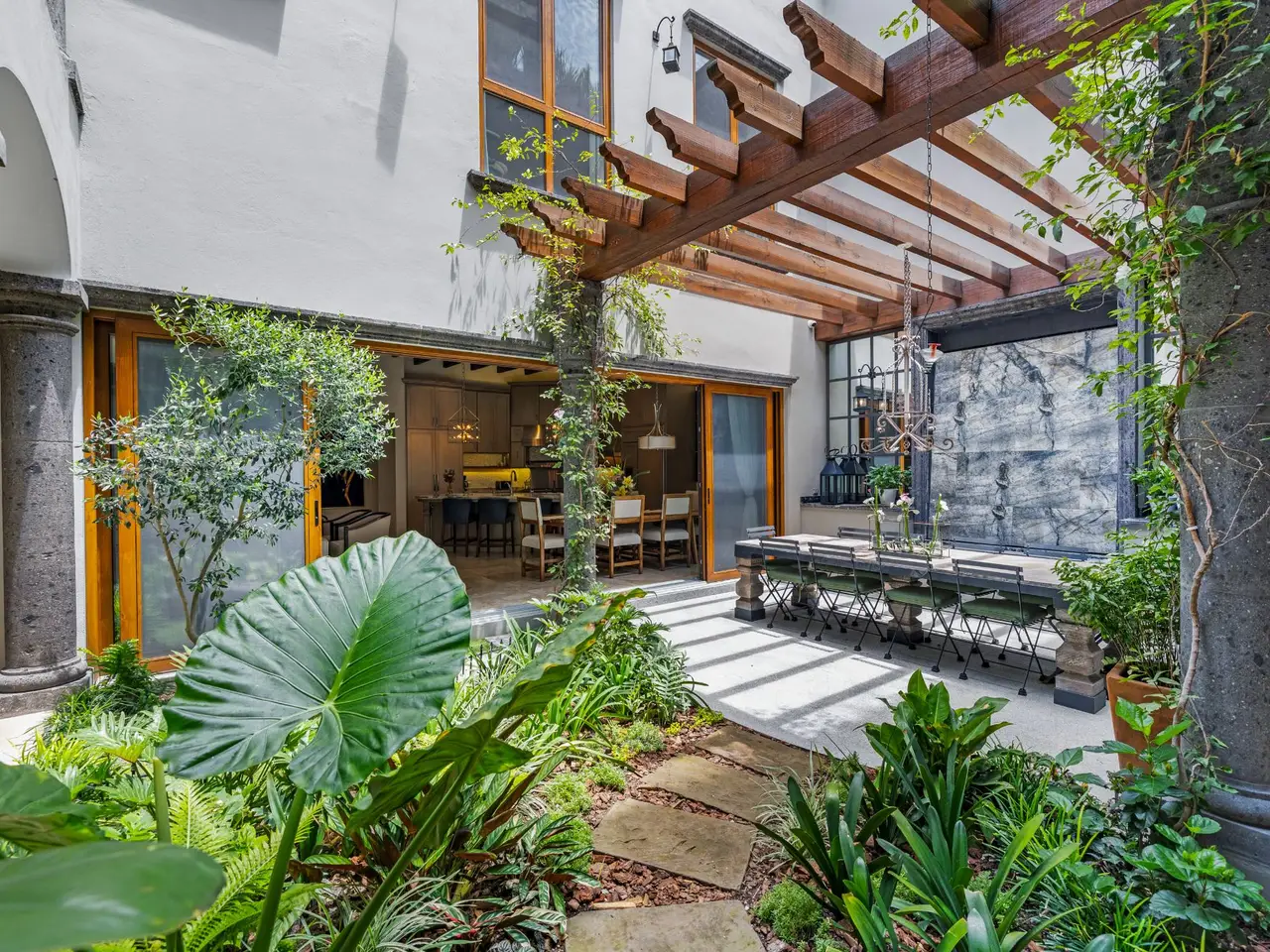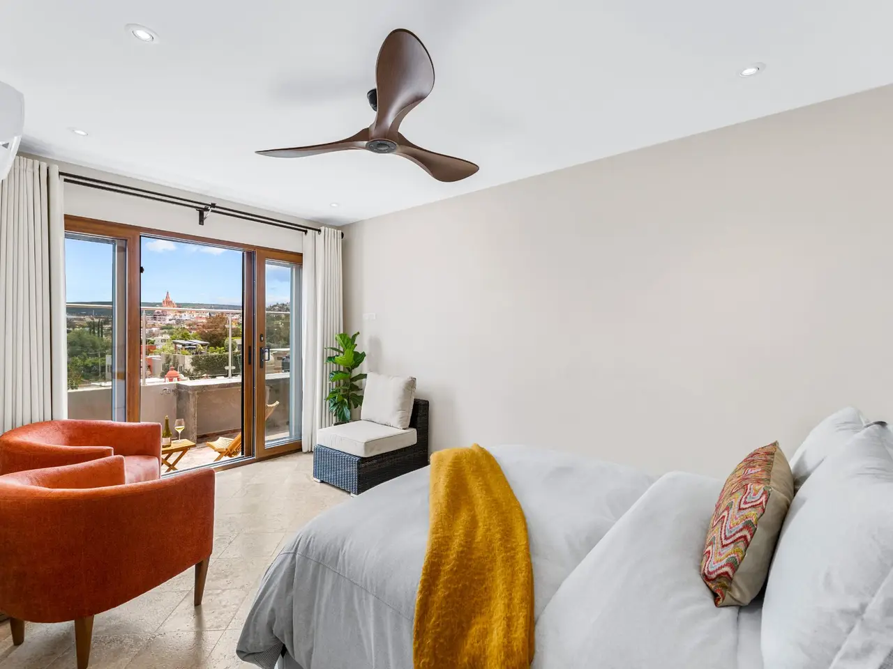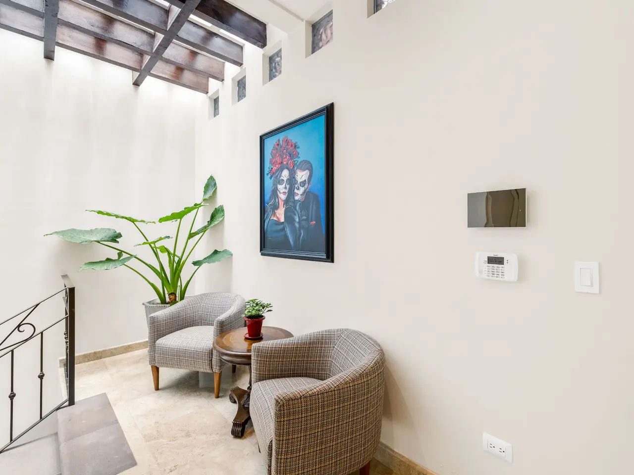 “A Contemporary Sanctuary with Colonial Soul in the Heart of San Miguel de Allende” Ideal for a discerning couple or family seeking the soul of Mexico with the comforts of contemporary living, Casa Mi Sueño is a stunning three-level residence that masterfully balances design, function, and location. Set on Avenida Allende—widely considered the most desirable street in the San Antonio neighborhood—this architectural gem by renowned architect Ana Delia López blends sophisticated minimalism with the charm and texture of colonial architecture. Just a short stroll from Instituto Allende, Juárez Park, the Rosewood Hotel, and the Parroquia de San Miguel Arcángel, this home places you at the cultural heart of the city while offering a peaceful private retreat. Upon entering at street level, you're welcomed into a serene vestibule with a gas fireplace, creating a warm and inviting first impression. A covered garage sits adjacent, providing both security and convenience. The heart of the home unfolds in the dramatic central courtyard, a tranquil open-air space designed for entertaining and relaxation. It features a grilling area, dining space, wiping wall fountain, gas fireplace, and a touch of greenery. A covered gallery connects the entry to the main living areas—allowing you to move freely and comfortably even during rainy days. Past the courtyard, the interior opens into a beautifully proportioned living room, dining area, and kitchen, all part of an open-concept layout that invites natural light and seamless flow. Finishes include travertine marble floors, sleek custom cabinetry, and double-pane windows that insulate both sound and temperature. A discreet half bathroom completes the main floor. The second level offers privacy and comfort. A spacious guest suite features its own sitting area and gas fireplace, while a versatile office/TV room with en-suite bath can serve as an overflow bedroom. The highlight of this floor is the luxurious primary suite—a light-filled sanctuary with fireplace, generous proportions, and a spa-like bathroom complete with a soaking tub, double sinks, makeup vanity, and a vaulted bóveda ceiling that adds architectural drama. A large walk-in closet completes this refined retreat. The third floor is designed to dazzle. A covered rooftop terrace offers unobstructed panoramic views of the city’s most iconic landmarks, including the Parroquia, Las Monjas, and the surrounding skyline. The fourth bedroom, perched at the top, commands some of the best views in the house, with large windows framing the churches of downtown San Miguel. This suite includes a coffee bar, full bath, and closet—making it ideal for guests or as an inspiring creative space. Just outside the door, a jacuzzi overlooks the city in spectacular fashion—perfect for sunset soaks and stargazing. Additional features include a solar panel system with backup batteries, mini-split A/C units throughout the property, and high-end, brand-new furnishings—all included. Every detail has been thoughtfully considered to ensure comfort, efficiency, and aesthetic harmony. Just a 10-minute walk from the Jardín, and steps from world-class art galleries, restaurants, and cultural venues, Casa Mi Sueño offers not just a home, but a lifestyle—refined, relaxed, and unmistakably San Miguel.