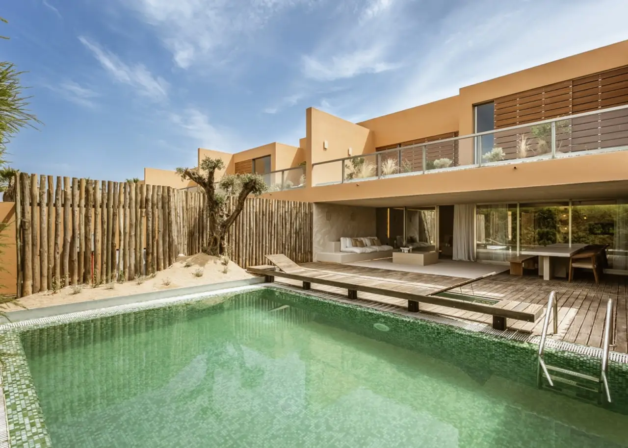Set within the natural landscape of Herdade dos Salgados, this exclusive four-bedroom villa seamlessly blends luxury, comfort, and perfect integration with its surroundings. Just a short walk from Salgados Beach, the property has been fully remodelled, furnished, and decorated, reflecting a contemporary and sophisticated design by ARTSPAZIOS. The villa is spread across two well-structured and spacious floors. The ground floor is dedicated to the social areas, featuring a modern open-plan kitchen that flows harmoniously into the dining and living spaces, offering direct access to the outdoors. The covered exterior area on this level serves as a natural extension of the living areas, with an elongated dining table doubling the seating capacity and a generously extended sofa creating a second lounge area. Thanks to the full-height sliding doors, the indoor and outdoor spaces merge effortlessly, providing a fluid and adaptable living experience. Here, biophilic design is at the core, with a lush garden and a swimming pool surrounded by natural elements such as wood, ensuring privacy and a deep connection with nature. This level also includes a versatile bedroom, ideal for guests or as a home office. Upstairs, three spacious and light-filled suites offer comfort and exclusivity, with the master suite standing out for its generous walk-in wardrobe and a shower room with a view, creating a sanctuary of pure relaxation. This property is defined by its distinctive design, where minimalism meets rustic craftsmanship, inspired by the wabi-sabi philosophy. Every detail has been carefully considered to create a warm and intimate atmosphere, honouring the balance between simplicity, imperfect beauty, and a strong connection with nature. The concept of slow living runs throughout the project, with raw and natural textures allowing materials to evoke the sensations and memories of the place. Noble materials such as local marble, natural stone, and untreated wood reinforce the villa’s refined identity. Sustainability and energy efficiency are key principles, ensuring thermal and acoustic comfort through innovative construction solutions. Additionally, Herdade dos Salgados follows sustainable water management practices, with the golf course using treated wastewater since 1994. The private condominium guarantees complete privacy and security, with controlled access and an unparalleled sense of exclusivity. Beyond the comfort of the villa, owners enjoy access to exceptional amenities, including a spa, gym, hair salon, and fine dining at the hotel, as well as special privileges at Salgados Golf Course. Nestled within a natural reserve, this villa offers a sophisticated yet relaxing lifestyle—perfect for those seeking a beachfront retreat with world-class amenities. CHARACTERISTICS: Plot Area: 141 m2 | 1 518 sq ft Area: 379 m2 | 4 080 sq ft Useful area: 238 m2 | 2 562 sq ft Building Area: 319 m2 | 3 434 sq ft Bedrooms: 4 Bathrooms: 4 Garage: 2 Energy efficiency: C FEATURES: Exclusive 4-bedroom villa Luxury and comfort Steps from Salgados Beach Refurbished Furnished Decorated Exclusive design Open spaces Next to Salgados Golf Course