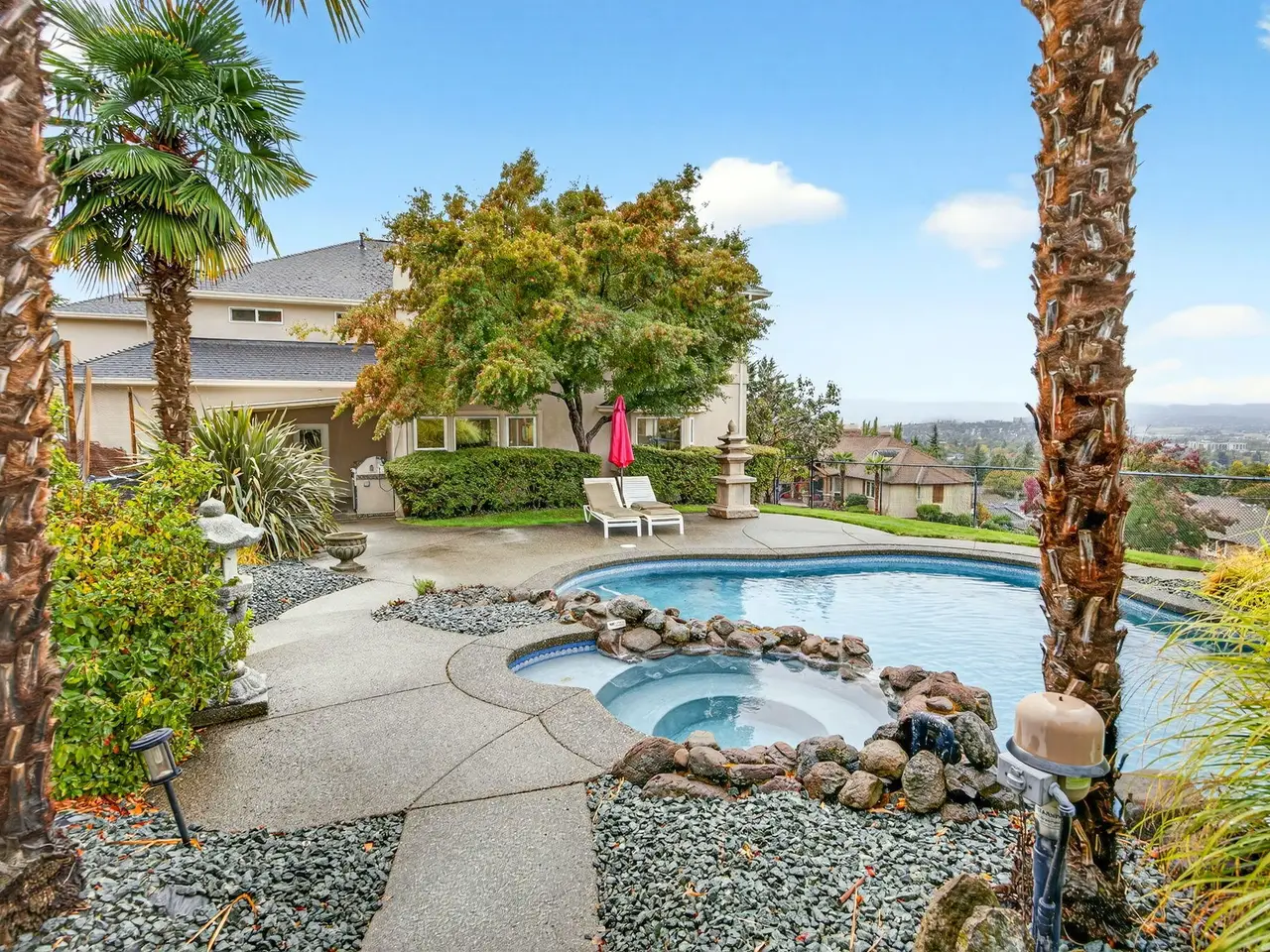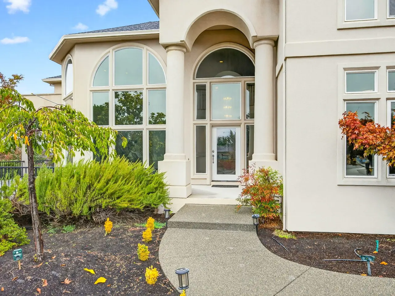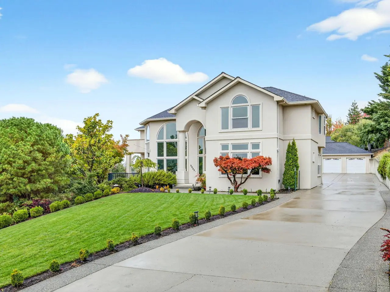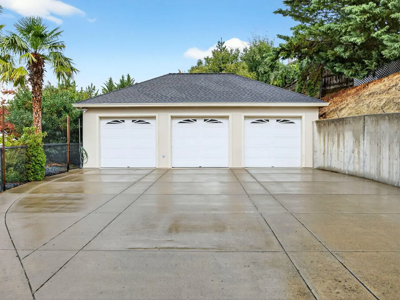 Breathtaking panoramic valley views set the stage for this elegant East Medford home, perfectly situated on a flat, usable half-acre. Thoughtfully designed for both comfort and entertaining, it features soaring ceilings, a dramatic entry with sweeping staircase, and a wall of windows that flood the home with natural light. The spacious kitchen offers an island, walk-in pantry, and butler's pantry with wet bar, while the large dining area is ideal for gatherings. With 4 bedrooms plus an office and a bonus/media room, there's room for everyone. The luxurious primary suite is a true retreat with a spa-like bath and walk-in closet. Outside, enjoy the stunning views from a resort-style pool and spa with cascading waterfall, outdoor kitchen, and beautifully landscaped grounds. A fenced garden area is perfect for growing your own vegetables or creating a private outdoor sanctuary. A detached 3-car garage complements the attached 2-car, providing abundant space for vehicles and storage.