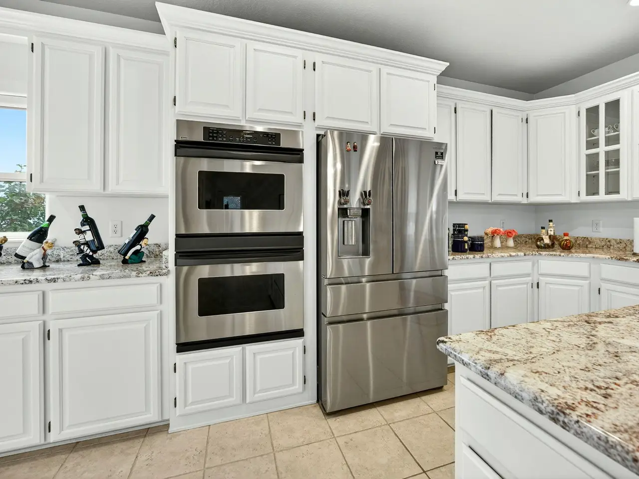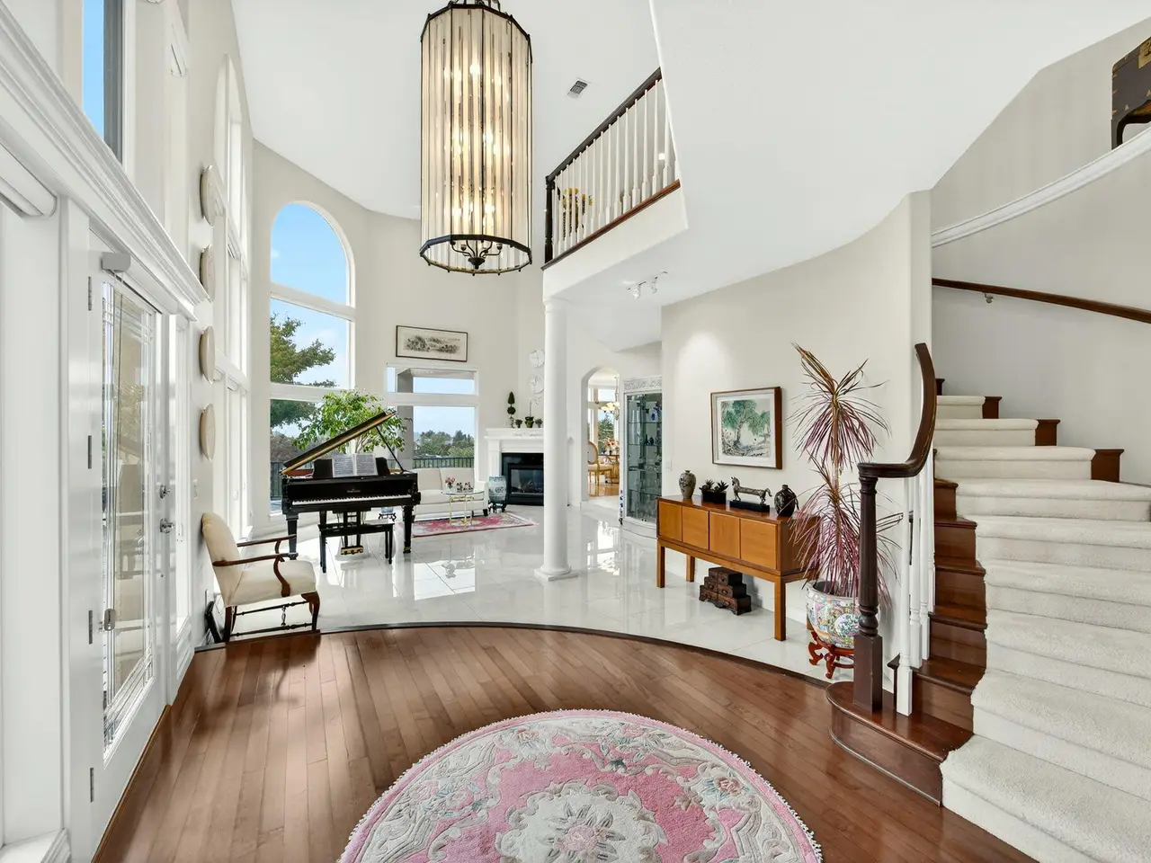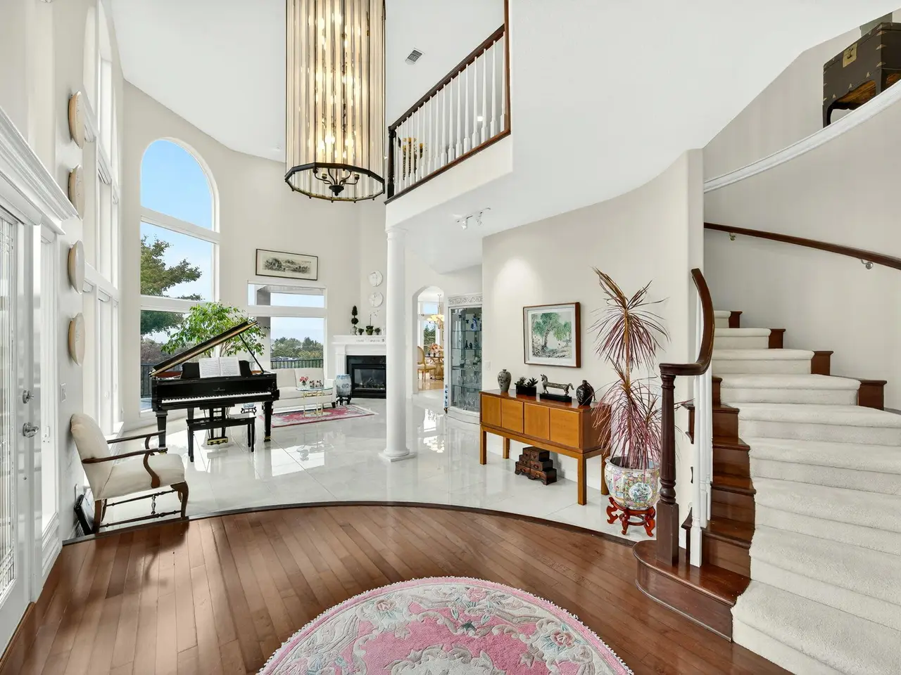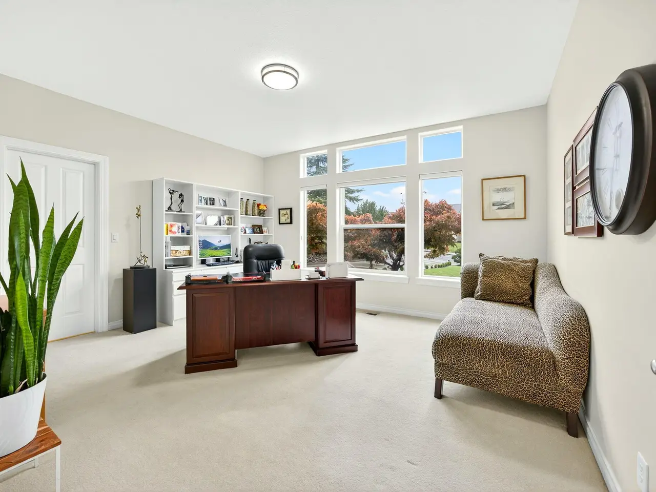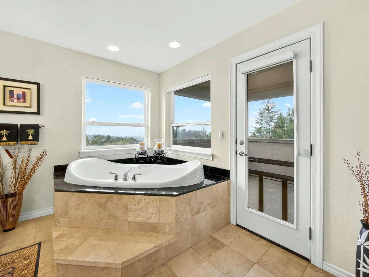 Breathtaking panoramic valley views set the stage for this elegant East Medford home, perfectly situated on a flat, usable half-acre. Thoughtfully designed for both comfort and entertaining, it features soaring ceilings, a dramatic entry with sweeping staircase, and a wall of windows that flood the home with natural light. The spacious kitchen offers an island, walk-in pantry, and butler's pantry with wet bar, while the large dining area is ideal for gatherings. With 4 bedrooms plus an office and a bonus/media room, there's room for everyone. The luxurious primary suite is a true retreat with a spa-like bath and walk-in closet. Outside, enjoy the stunning views from a resort-style pool and spa with cascading waterfall, outdoor kitchen, and beautifully landscaped grounds. A fenced garden area is perfect for growing your own vegetables or creating a private outdoor sanctuary. A detached 3-car garage complements the attached 2-car, providing abundant space for vehicles and storage.