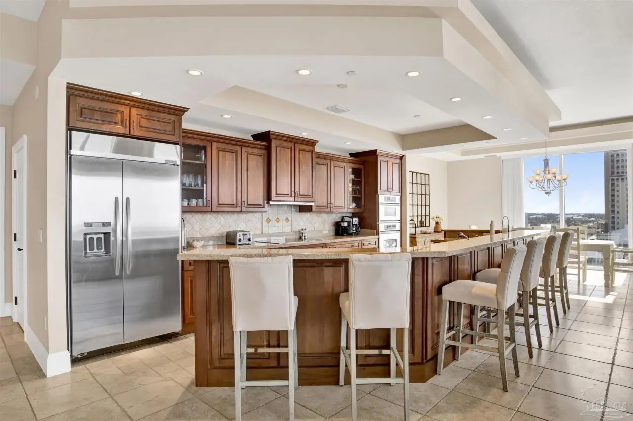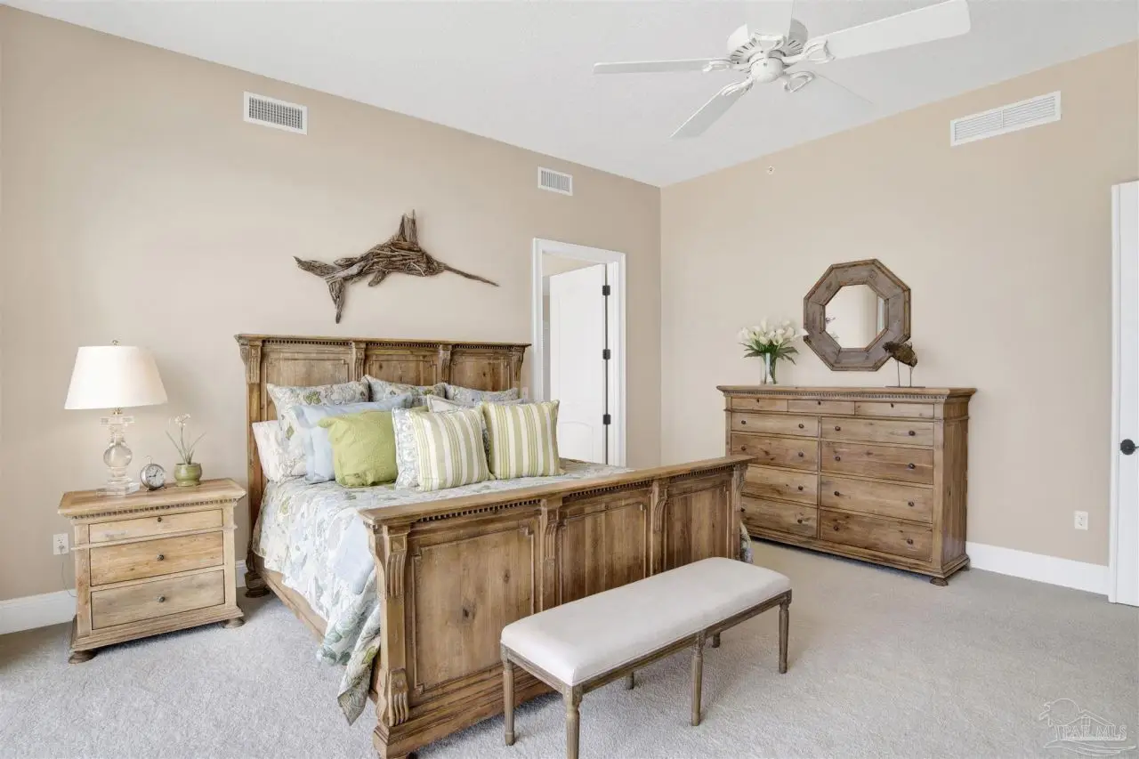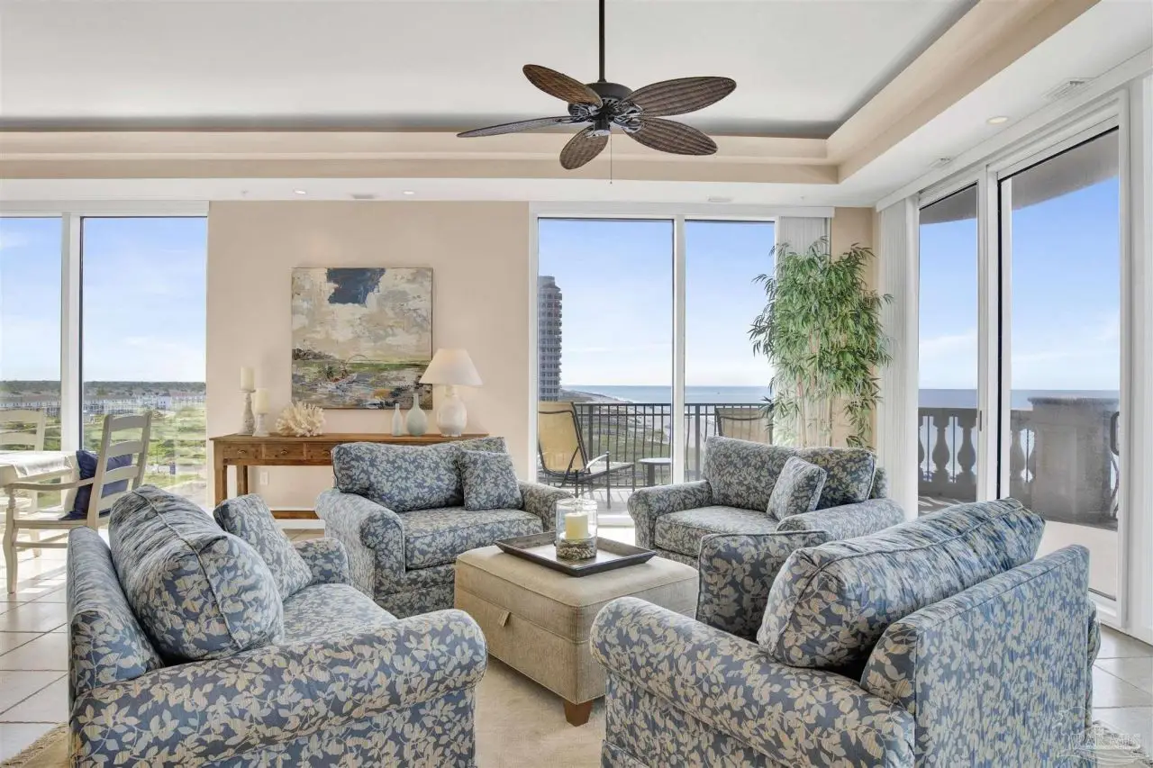 DISCOVER THE EPITOME OF LUXURY LIVING AT THE PALMS OF PERDIDO, IN PERDIDO KEY! WITH ONLY 23 RESIDENCES, THIS LOW-DENSITY, RENTAL-RESTRICTED COMMUNITY OFFERS REFINED OLD-WORLD ELEGANCE AND LUXURIOUS AMENITIES. Owners enjoy secure and assigned under-building parking, secure lobby entry, controlled floor access and convenient owner storage lockers. This 5-bedroom, 3,900 SF furnished residence sprawls over 70 feet of pristine beachfront to capture gorgeous water views from multiple seating and entertaining areas including the wrap around balcony; the perfect place to watch the Blue Angels fly by! The heart of this residence is the open, modern kitchen, featuring top-of-the-line KitchenAid appliances, a large walk-in pantry, ice maker, and wine cooler, ideal for culinary enthusiasts and entertaining guests. With stunning Gulf views, the Primary Suite features a spa-like bathroom, complete with a jetted tub overlooking the Gulf, a spacious walk-in closet, and an upgraded, oversized glass-enclosed shower. A fabulous split floor plan provides private guest bedrooms with gorgeous views and en-suite baths. You will also appreciate the convenient utility room outfitted with storage cabinets, granite counters, deep sink and washer & dryer. One of the five bedrooms has been thoughtfully converted into a dedicated media room, the perfect spot to gather and unwind. This exceptional community provides ultimate relaxation on pristine, uncrowded beaches and offers three stunning Gulf-front pools, two of which are geo-thermally heated for year-round enjoyment. The sophisticated 2nd-floor Club Level boasts an array of exclusive amenities, including a state-of-the-art fitness center, invigorating steam room, and tranquil sauna. Gather and entertain in the elegant Club Room, complete with a cozy fireplace, full kitchen for entertaining large groups of family and friends, and a billiards table. THIS RESIDENCE IS TRULY A RARE GEM ALONG FLORIDA'S BEAUTIFUL GULF COAST!