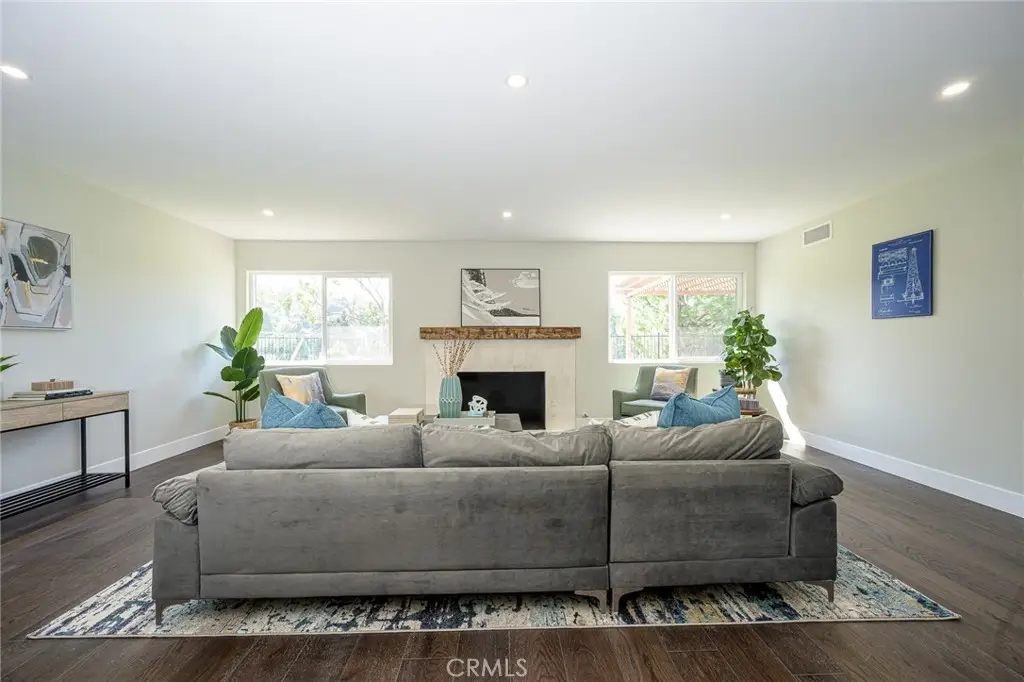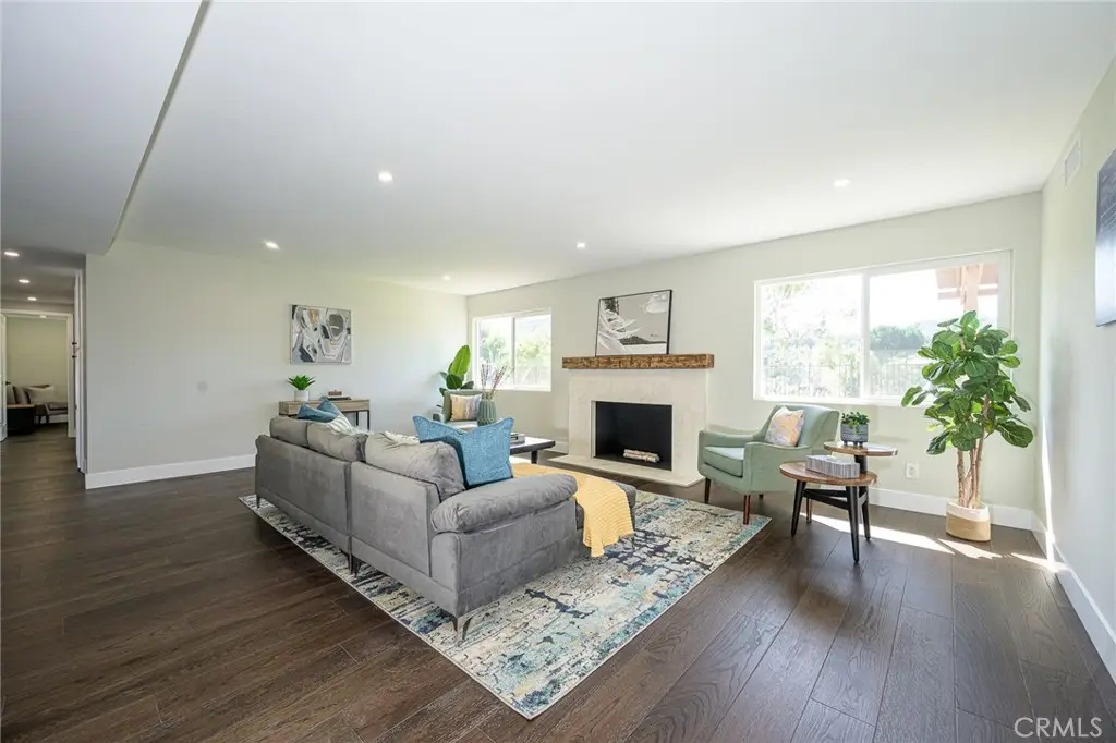 Beautifully UPDATED 5 bedroom, 3 bathroom home with stunning mountain and hill views in a desirable Hacienda Heights neighborhood. This home sits at the end of a cul-de-sac street with approximately 2441 sf of living space with an open concept living space. The kitchen has new custom two-tone cabinets, full tile backsplash, sleek new counter tops, new fixtures, stainless steel appliances, a large center island offering additional counter space and seating and a large walk-in pantry with an abundance of storage space. The bar space is great for hosting with a built-in wine fridge, wet bar area and built-in display cabinet. Downstairs you will find a living room with a decorative fireplace, dining room, kitchen, a den area that leads to one of the backyard patios, 3 bedrooms and 2 bathrooms. The primary bedroom is spacious with an ensuite bathroom, walk-in closet with custom built-ins, mountain views and sliding door that leads to another outdoor patio. Upstairs there are two additional bedrooms, both with mountain views and an additional bathroom. All the bathrooms have been upgraded with custom tile work, new fixtures and vanities. Other features include freshly painted interior and exterior, energy efficient windows and sliding doors, new interior doors, luxury flooring throughout the living areas and bedrooms, stylish plumbing and lighting fixtures, HVAC, and direct access to the two-car garage. The enclosed backyard is perfect for entertainment with stunning views, two patio areas and landscaped with new sod. This home is conveniently located and just a short distance to award winning schools, the world-renowned Hsi Lai Temple, shopping and restaurants, and local freeways.