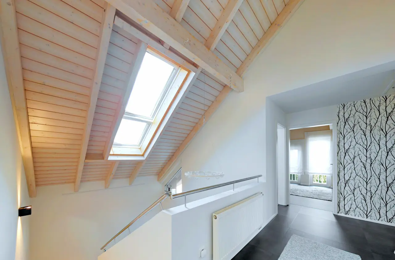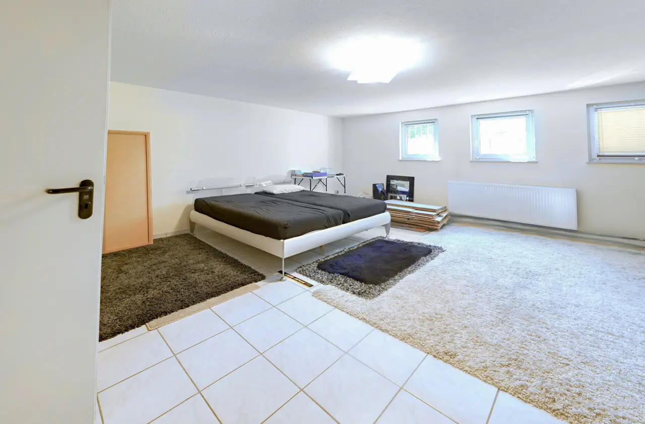 This spacious detached house with a living area of approx. 178.22 m² is situated on a plot of approx. 431 m² in a completely quiet location. Built in 1997 in solid construction, the property impresses with its clear lines, bright and open design, especially in the living area, as well as very high ceilings in places, which ensure a pleasantly airy feeling of space. The house has a total of 6 rooms, including 4 bedrooms, which can be used flexibly as children's rooms, guest rooms or studies. There is a bathroom on each level. In the basement as a supplement for the prepared sauna installation. The daylight bathroom on the first floor has a shower, bathtub and washbasin. The spacious bathroom on the upper floor was completely renovated in 2019. The open-plan, large living/dining area on the first floor is flooded with light. From here, you have direct access to the 40 m² terrace with electric roofing, which is beautifully laid out. In the living area, a beautiful wood-burning stove creates a cozy, pleasant atmosphere in winter. The fitted kitchen, which was renovated in 2019, is modernly equipped and is complemented by a room behind it, which is used as a pantry or kitchen extension. The entire outdoor area is very low-maintenance and beautifully landscaped. The garden is large enough for children to play and enjoy the outdoors. A spacious double garage with 2 parking spaces and plenty of storage space is located right next to the entrance. The building is heated by gas central heating. The roof is insulated with 12 cm PU rigid foam (12 cm PU corresponds to a thickness of approx. 18 cm Miwo) over-rafter insulation. The exterior walls also have full thermal insulation. The layout of the house is ideally suited to the needs of families or discerning couples: On the first floor, in addition to the open-plan living/dining area and the kitchen, there is a bedroom and a bathroom - ideal for guests or as a home office. There are three further bedrooms and a modern bathroom on the upper floor.