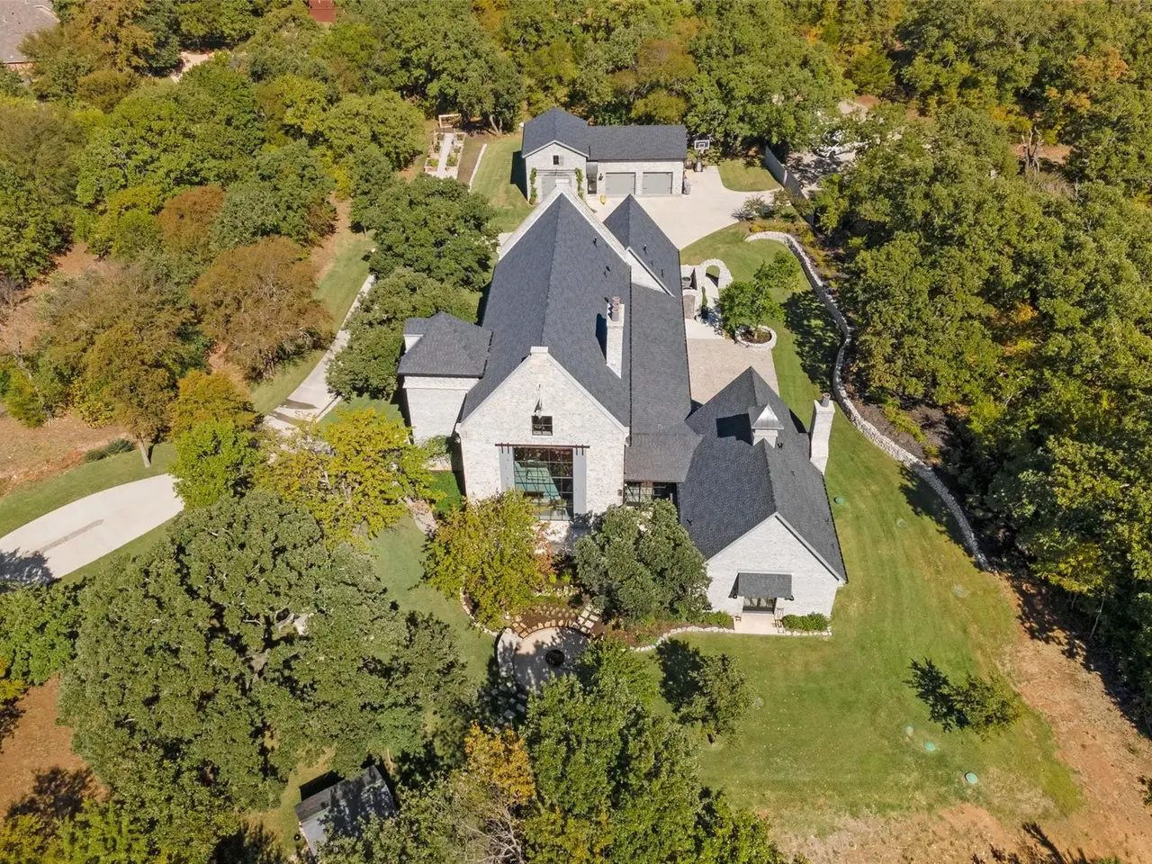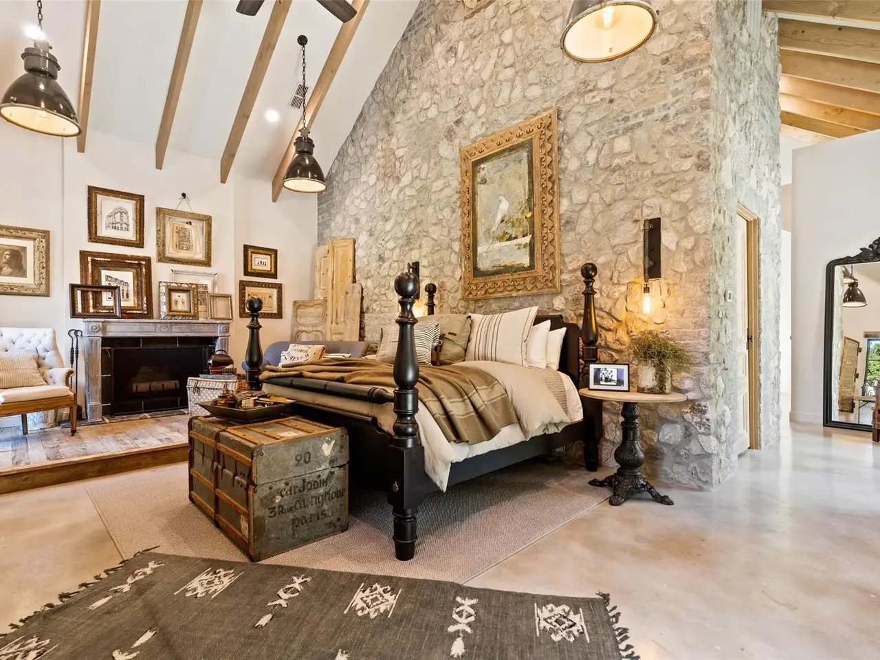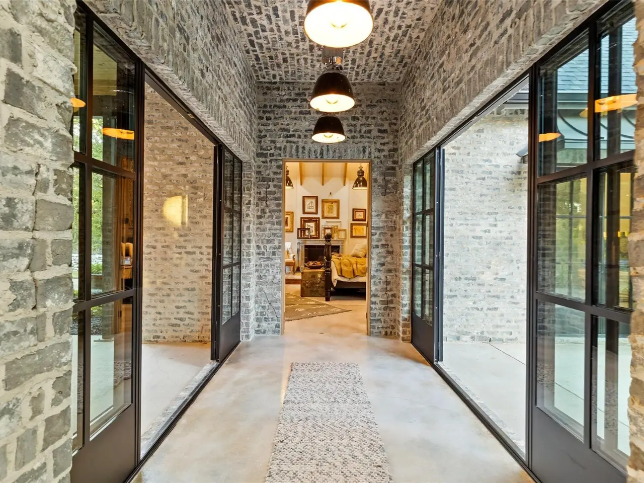 Masterfully designed Belgian Chateau gated and purposefully situated on three-acre estate lot enveloped by beautiful mature trees. This home gives a nod to a soft industrial feel with large steel framed windows and doors that blur the lines between indoor and out. Four bed, 3.5 bath open floorplan, you'll see imported European tile, stained concrete floors, ornate bluestone features and custom antique doors and shutters. Glass breezeway leads to primary suite overlooking a private, picturesque garden oasis also has steam shower and fireplace. Ample storage, 4 garage stalls and an impressive 800-plus square foot studio loft apartment. This home won HGTV's Ultimate House Hunt 2023 Kitchen Category! Custom Thermador vent-a-hood, range, Sub-Zero refrigerator, leathered granite countertops, distinctive custom cabinetry perfects a fusion of beauty and functionality. Host elegant evening events by opening the steel doors to the courtyard lit by unique antique fixtures and splash pad creating the perfect ambiance.