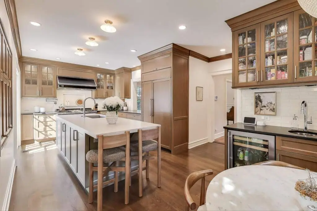Situated in the desirable Greeley School District, this stunning 5-bedroom, 3.5-bath home is just one block from the lakefront and a short walk to charming downtown Winnetka. With over 4200sqft of above ground living space the fully finished basement is not included in the size! Designed for both style and function, the home showcases a chef's kitchen by Benvinuti & Stein with Viking, Sub-Zero, and Bosch appliances-perfect for everyday living and entertaining. No detail has been overlooked since the current owners moved in. Thoughtful upgrades include a complete remodel of the primary bath, new windows and flooring in the sun-filled all-seasons room, and a full lower-level renovation complete with a beautiful new laundry room. The second floor features three spacious bedrooms, while the third-floor loft offers incredible versatility with one bedroom, an office (or additional bedroom), a large living area, and a full bath. The 2.5-car garage includes built-out rooms above-ideal for storage, a playroom, or an art studio. This home combines timeless design, modern updates, and an unbeatable location near schools, shopping, dining, and the beach. All new mechanicals(hvac, ac 2023, new sump pump, new water heater, new windows in the sun room, the list goes on of upgrades.