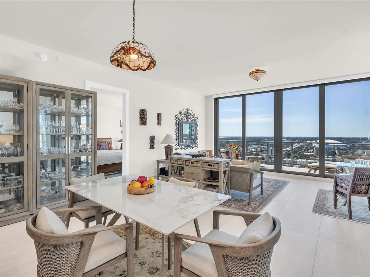 Experience the pinnacle of downtown St. Petersburg living in this exquisite 33rd-floor residence at Saltaire. This 2-bedroom, 2-bath home with a den spans 1,663 square feet and offers breathtaking bird's-eye views that stretch across the city skyline. Inside, refined design meets modern convenience. The open-concept layout features a bright, airy living space with a thoughtfully placed floor outlet and electric double blinds - including blackout shades in the bedrooms for complete privacy. The gourmet kitchen is equipped with premium appliances, sleek cabinetry with a pull-out pantry, an induction cooktop, and a built-in wine chiller - ideal for the entertainer or culinary enthusiast. The spacious primary suite provides an elegant retreat, featuring plush carpet underfoot, blackout blinds, a walk-in closet, and a spa-inspired en suite bath with designer finishes. The versatile den offers flexibility as a home office, reading nook, or creative space, while the guest bedroom includes its own walk-in closet and full bath for ultimate comfort. This unit also comes with two conveniently located parking spaces and a climate controlled storage unit. Saltaire's resort-style amenities redefine luxury living, with a 7th-floor pool terrace overlooking Tampa Bay, a state-of-the-art fitness center, inviting club rooms, and even a private dog park. Enjoy the ease of 24-hour concierge service, secure parking, and a climate-controlled storage unit - all within steps of St. Pete's vibrant waterfront parks, award-winning dining, boutique shopping, and thriving arts scene.