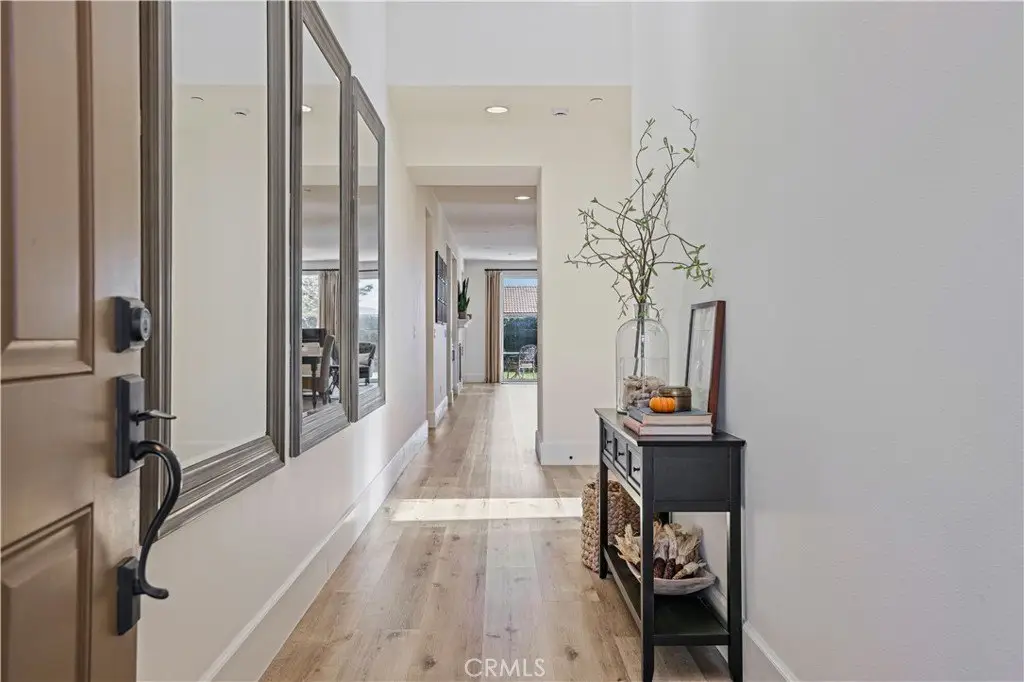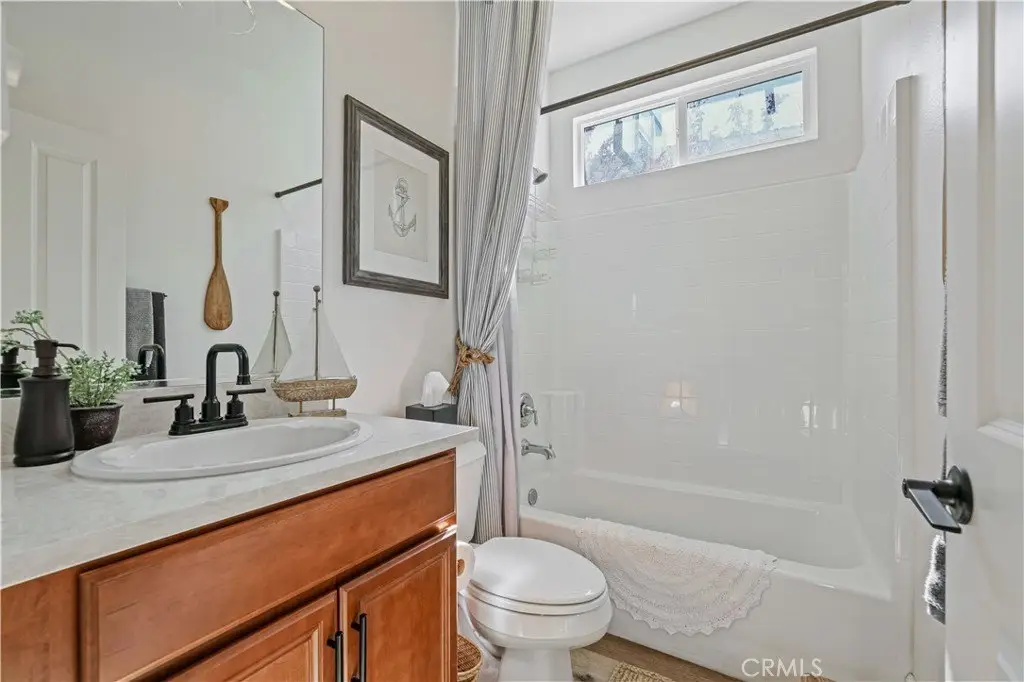 Welcome to one of Valencia's most prestigious gated communities! Enjoy luxury living behind the gates of West Hills! This home offers a wonderful balance of elegance and comfort, featuring A MAIN FLOOR PRIMARY SUITE. The recently updated primary bathroom features a free-standing soaker tub and separate walk-in shower with decorative hexagon porcelain floor tiles. In addition, there is a guest bedroom, bathroom, powder room and laundry room with sink, on the main level. The open concept floor plan creates a seamless flow between the kitchen, dining, and family room, perfect for gatherings. The stunning kitchen features a generous center island with seating, pendant lighting and gorgeous quartz countertops. Additional kitchen upgrades include stainless steel appliances and a stainless steel farmhouse sink with decorative faucet. On the second level, you'll find a spacious loft, 2 bedrooms with walk-in closets and a full bathroom. Relax in the recently upgraded backyard with lush greenery, various patio areas, seating walls, a fire pit, ambiance lighting , as well as a Smart Control irrigation system. This home features a solar power system to help reduce energy costs. Such an amazing location, close to all community amenities, schools, parks, shopping and many dining options!
