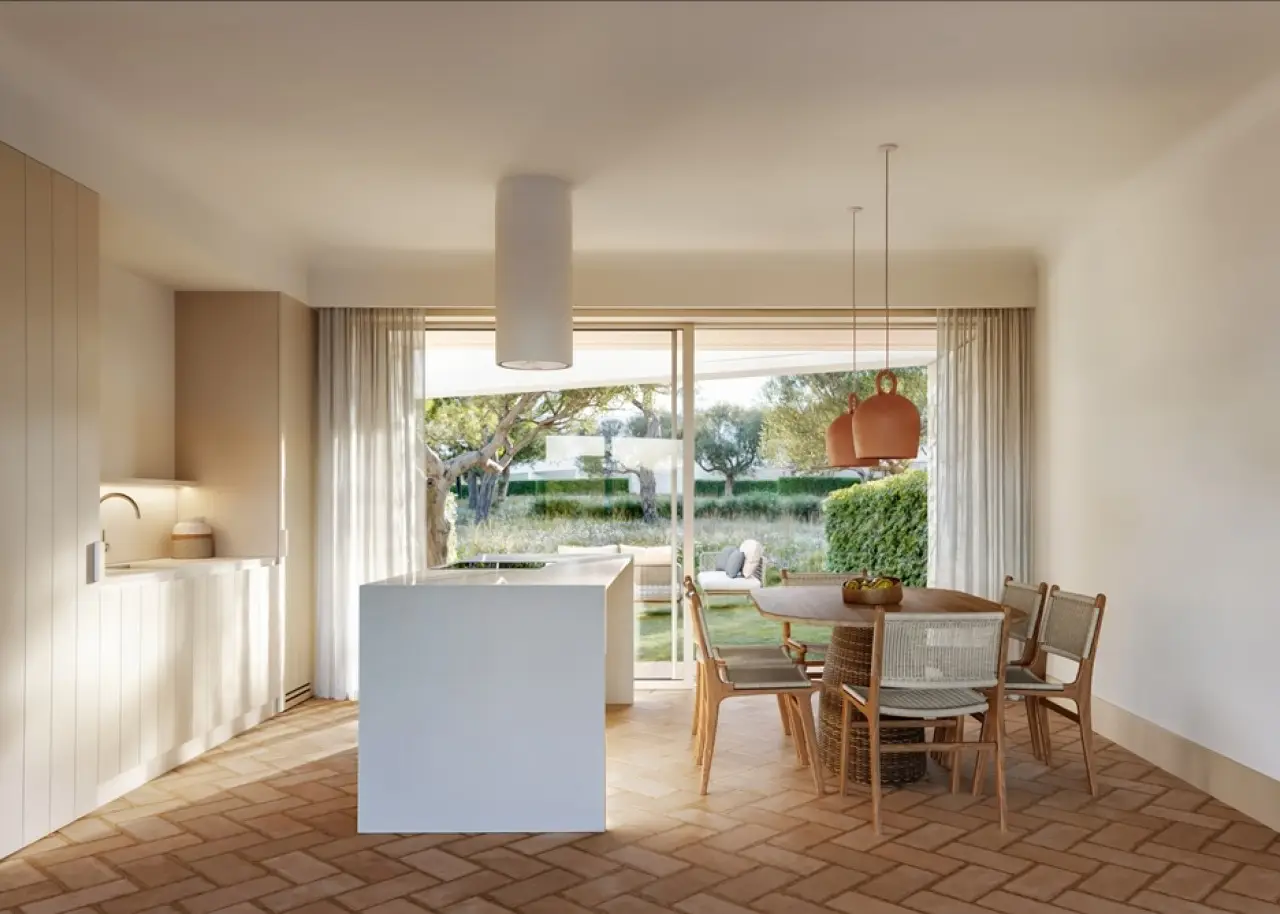 Two storey townhouse with high quality finishes, set in a private condominium next to the Ernie Els golf course. Inserted in the prestigious Springs - at the Els Club, this two-storey townhouse reflects, in every detail, the perfect fusion between contemporary architecture and the serenity of the Algarve landscape. The spatial proposal favors an open space concept on the first floor, where the fully equipped kitchen with SIEMENS appliances (or equivalent) integrates with a generous living room and dining room, creating a fluid and bright environment. Large glazed openings establish direct continuity with the outside, allowing natural light to enhance the high-quality finishes - stone, fine wood and coatings that guarantee thermal and acoustic comfort. On the upper floor, the private areas benefit from intelligent circulation and built-in closets, with finishes designed to combine aesthetics and functionality. The distribution of spaces favors privacy and versatility, with rooms that can be used as suites or other flexible spaces for work or leisure. The villa also has home automation and security solutions that meet the contemporary demands of the luxury residential market, ensuring convenience and efficient control of domestic systems. The outdoor patio, with a landscaped garden for exclusive use, includes a private swimming pool and a relaxation area designed to maximize moments of conviviality and retreat. Private parking and the possibility of a private garage add to the convenience of everyday life, while the surrounding green spaces offer the tranquillity of a private condominium. The A+ energy certification and the AQUA+ seal for water efficiency demonstrate the project's commitment to sustainable practices and the enhancement of natural resources. Living in this villa means accessing a lifestyle that goes beyond the residential concept: Springs offers a Country Club with restaurant, gym, indoor pool, SPA, tennis courts, Kids Club and the distinctive Lazy River - a water leisure proposal that bridges the gap between well-being and entertainment for all ages. The location is one of the most striking assets of this condominium: close to Vilamoura marina and world-class golf courses, including the prestigious and exclusive The Els Club Golf Course, which will host the PGA Tour Champions and Legends Tour. Springs offers stunning views over the greens and the Algarve landscape, with quick access to Vilamoura Marina and the beaches. This villa is the natural choice for those looking for quality construction, privacy and a residential experience with the services of a five-star resort. CHARACTERISTICS:Area: 324 m2 | 3 488 sq ft Useful area: 135 m2 | 1 453 sq ft Bedrooms: 2 Energy efficiency: A+ FEATURES: Luxury Villa Vilamoura Private condominium Next to the golf course Golden Triangle