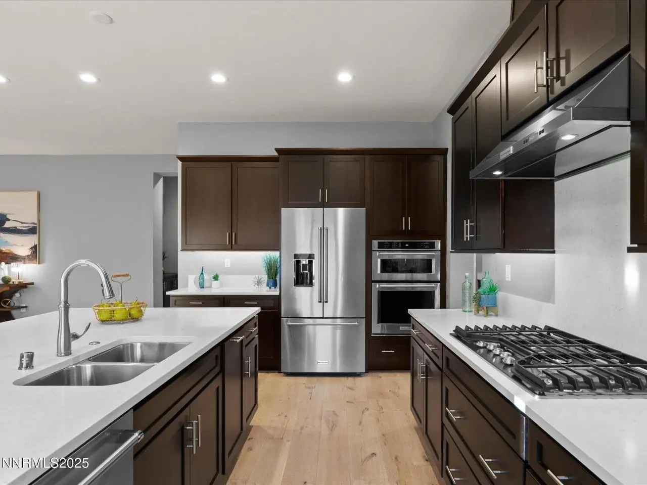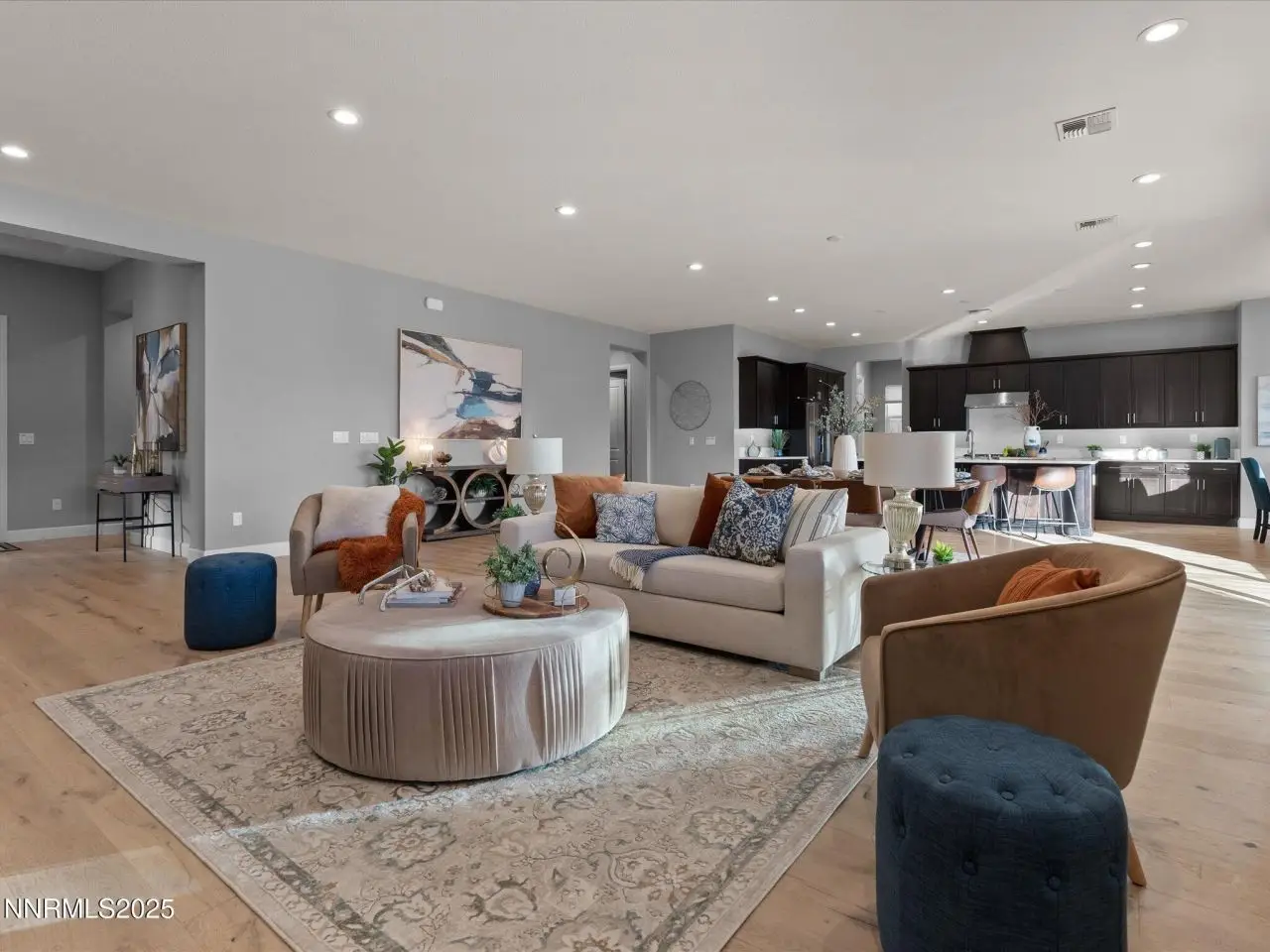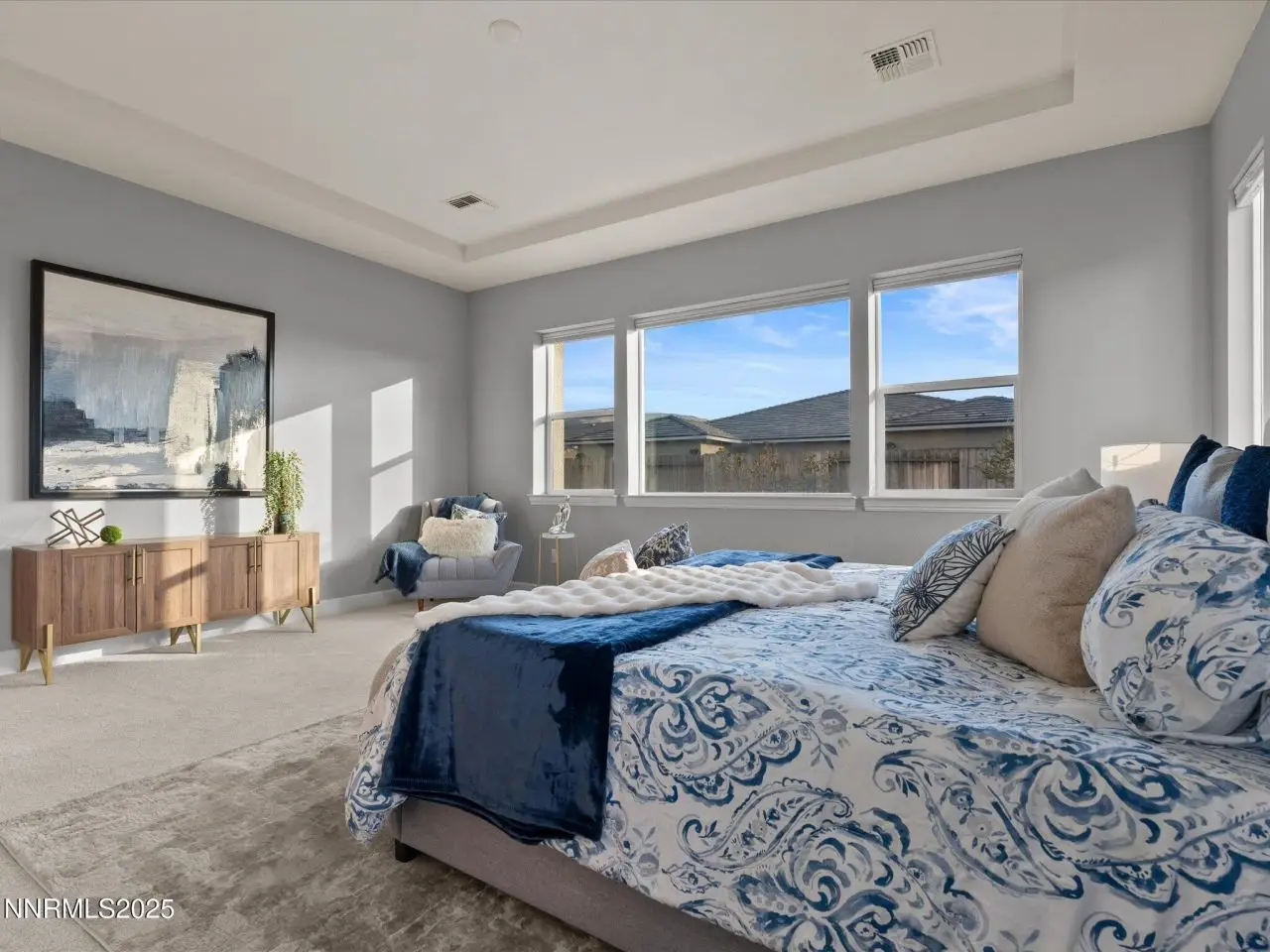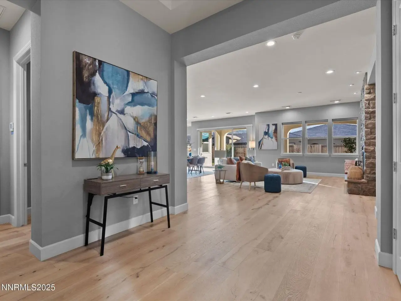 Experience relaxed, modern living in this stunning home in the gated Sorrento Trail community of Bella Vista Ranch in South Reno. Set on a premium corner lot, this property offers peak views of the Mt. Rose ski area and the Sierra Nevada mountains and professionally-designed, low-maintenance landscaping. A private, gated front courtyard leads to the covered entry area. Inside, wide wood-plank floors flow seamlessly from the foyer into the expansive great room. The heart of the home features a radiant fireplace, an open kitchen ideal for entertaining, two dining areas and a remarkable 12-foot sliding door system framing the covered patio. KitchenAid appliances, dark cabinets with under-cabinet lighting. Quartz counters define the work area of the kitchen, with a spacious adjoining butler's pantry with more work space cabinets and a prep sink -- plus there's a walk-in pantry. This home includes five well-appointed bedrooms, four full baths and a powder room. The thoughtfully-designed layout caters to many lifestyles: multi-generational living, a dedicated office and exercise or hobby spaces. The primary suite is a true retreat, featuring a lavish bathroom with a huge shower with multiple shower heads, a soaking tub, two vanities, and a generous walk-in closet. Down one hall, two bedrooms share a convenient Jack-and-Jill bath. Near the foyer, the fourth bedroom suite has a sliding glass door to the front courtyard. The fifth bedroom suite is tucked away off the kitchen. The 12-foot, multi-panel sliding glass door opens from the great room to the covered back patio, which is equipped with two gas stubs and extra electrical outlets, providing an ideal outdoor entertaining space. Bella Vista Ranch offers residents access to a vibrant community clubhouse, a saltwater swimming pool with lap lanes and a play area. Walking/biking trails surround the community, which is just off Veteran's Parkway. Nick Poulakidas Elementary school is a 5 minute walk from this home. Don't miss your chance to see this incredible property-schedule your showing today!