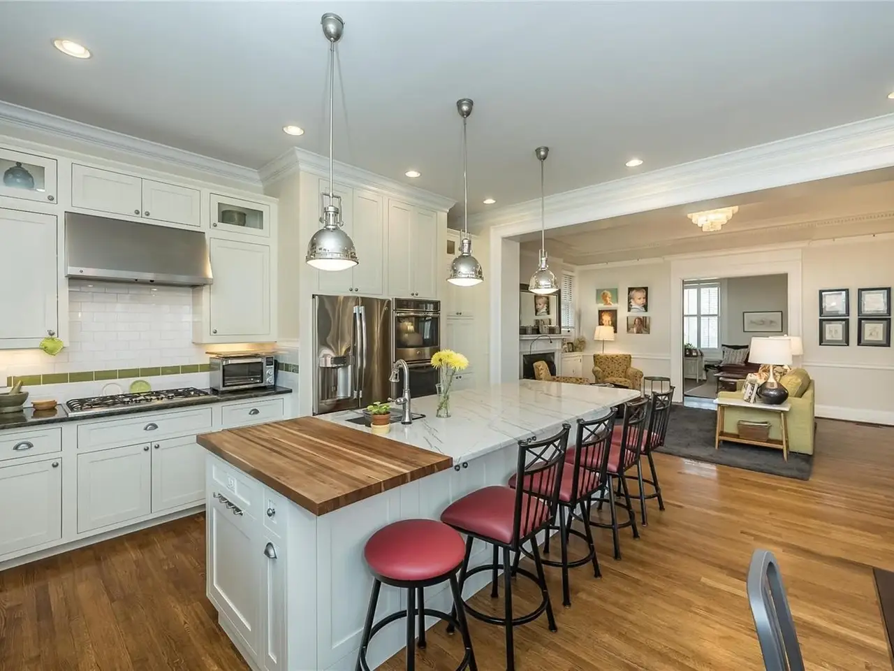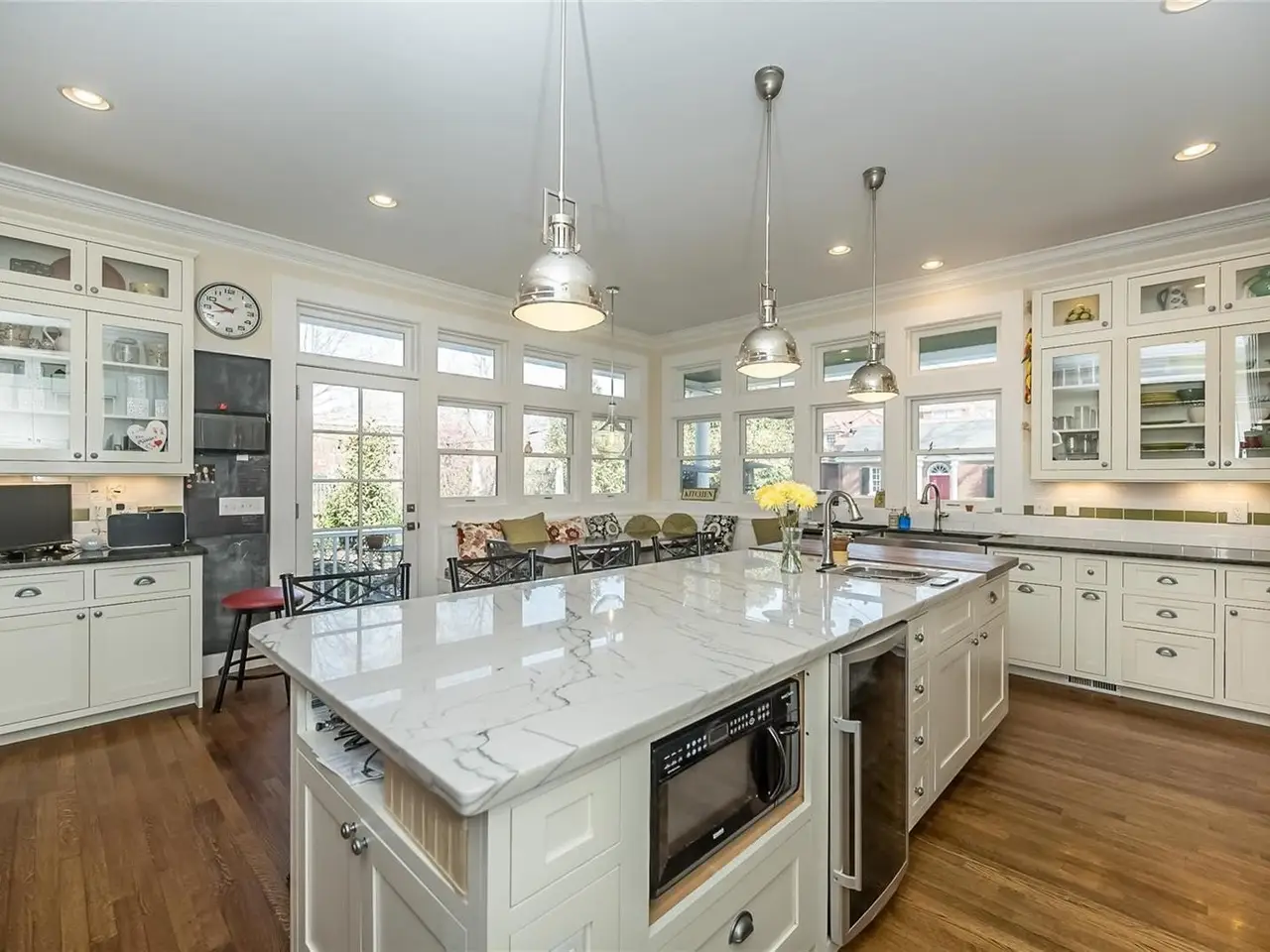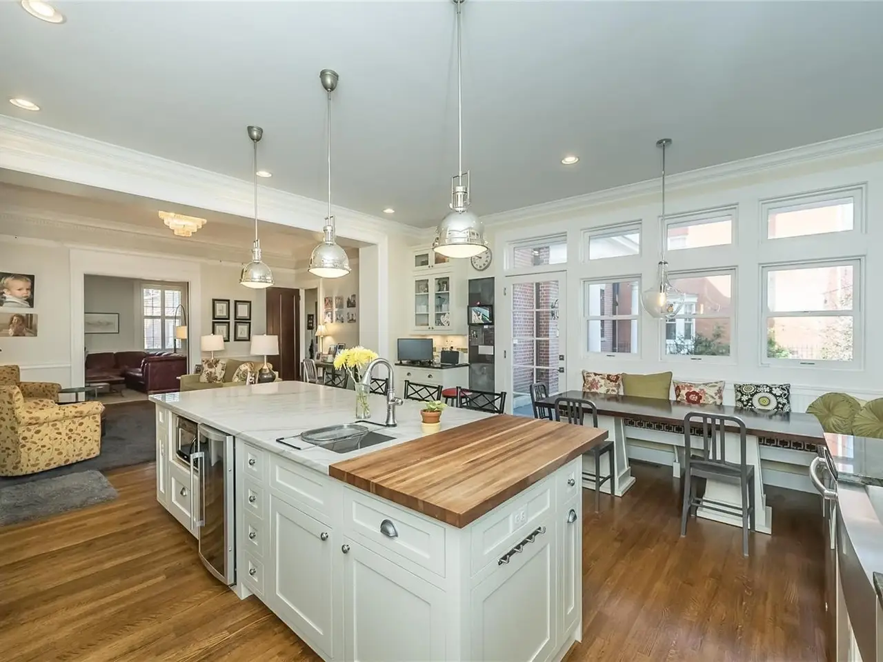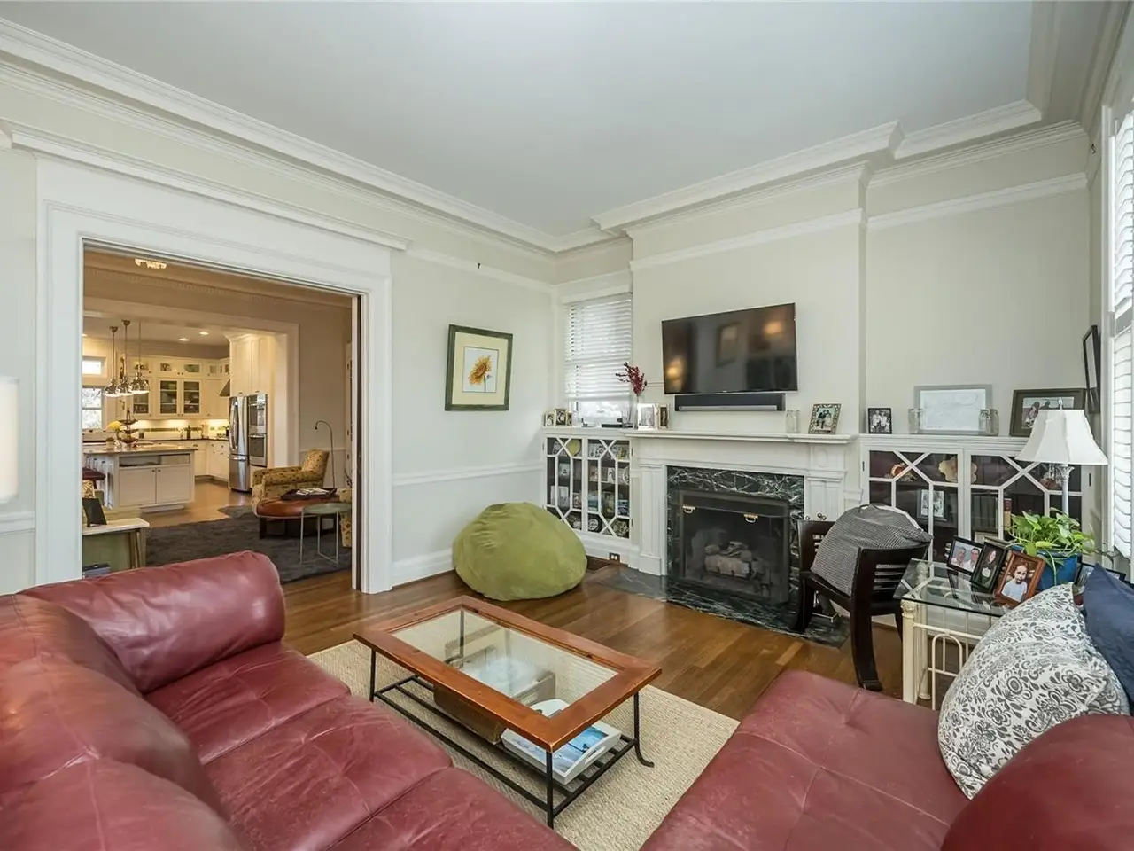 Perfectly situated on a premier private street, this handsome Georgian-style residence features remarkable architectural detail including a gracious center-hall staircase, original millwork, fireplace mantels, built-in bookcases, hardwood floors, and has been lovingly updated by its current owners. Substantial improvements include a large kitchen addition with SS appliances, center island, built-in dining area, an updated primary bathroom, plus two additional updated bathrooms, newer HVAC systems on all three floors, a first floor laundry and mud room, a backyard patio and extensive landscaping improvements including an in-ground irrigation system and landscape lighting. An oversize 3 car garage with private alley entrance. This exceptional home has been meticulously cared for. A true architectural gem.