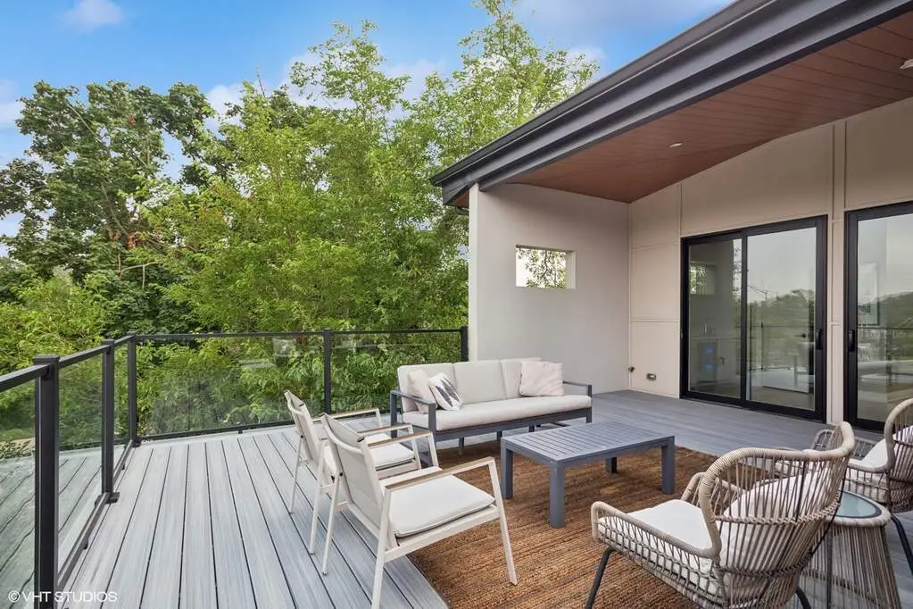 Refined living in this beautifully designed townhome, ideally located just steps from the vibrant center of Elmhurst. This expansive residence offers over 4,000 square feet of thoughtfully designed space, blending modern style with timeless comfort across four finished levels. The first floor welcomes you with a spacious foyer, a flexible office or bonus room, a powder room, and is elevator ready for added convenience. Continue into the open-concept main level featuring a chef's kitchen with high-end Thermador stainless steel appliances, quartz waterfall countertops, designer finishes, and a 9-foot island perfect for gathering. The kitchen flows seamlessly into the dining area and family room with a stunning gas fireplace, leading out through sliding doors to a private fenced yard with artificial turf - a low-maintenance outdoor retreat ideal for pets and entertaining. A well-organized mudroom with full closet connects to the attached two-car garage. Upstairs, the second floor hosts a relaxing primary suite with floor-to-ceiling windows, a spacious walk-in closet, and a beautifully appointed bath with dual sinks and an oversized shower. Two additional bedrooms, another full bath, and a generously sized laundry room complete this level. This is not your average laundry room. Thoughtfully designed for both function and style, it features ample cabinet storage, a deep utility sink, sleek retractable metal drying racks, a built-in retractable clothesline, and a professional Rowenta garment steamer. Say goodbye to ironing boards in the hallway or last-minute trips to the cleaners - this laundry space makes everyday tasks feel effortless. The third level is a standout feature - a 19' x 32' great room with 13 FOOT CEILINGS - dramatic windows, hardwood floors, a wet bar and a half bath. This flex space offers both an east-facing balcony for morning light and city views, and a west-facing covered rooftop terrace for entertaining and spectacular sunset views. The newly finished lower level offers a spacious family room, a fourth bedroom, a fully roughed-in bath and loads of storage. - perfect for a guest suite, second home office, home gym - endless possibilities. A rare opportunity to own a fabulous townhome in a vibrant downtown with modern energy and family-friendly charm."