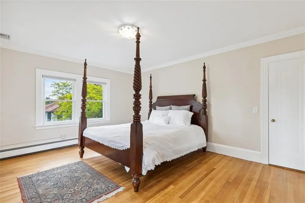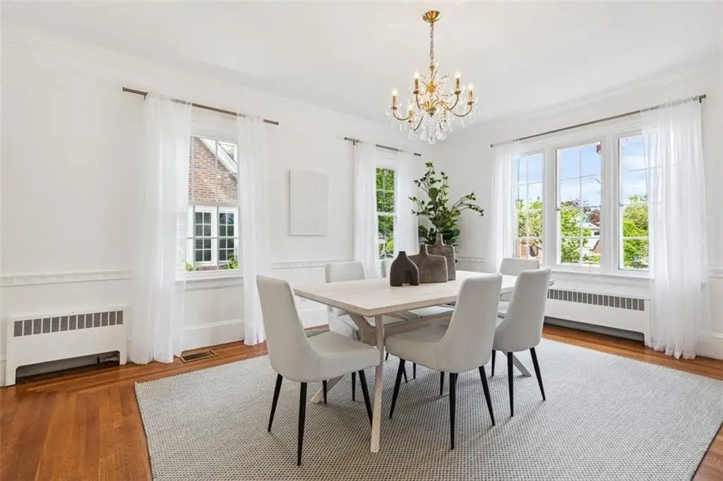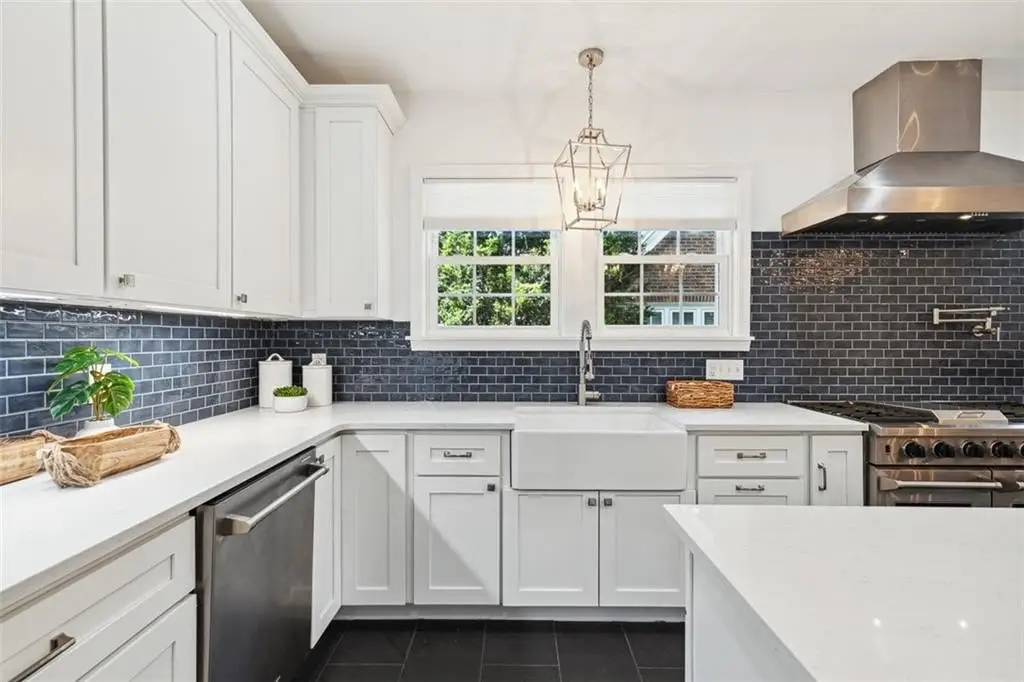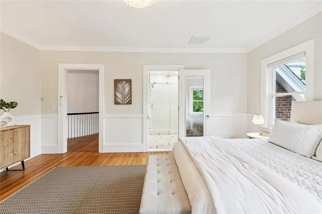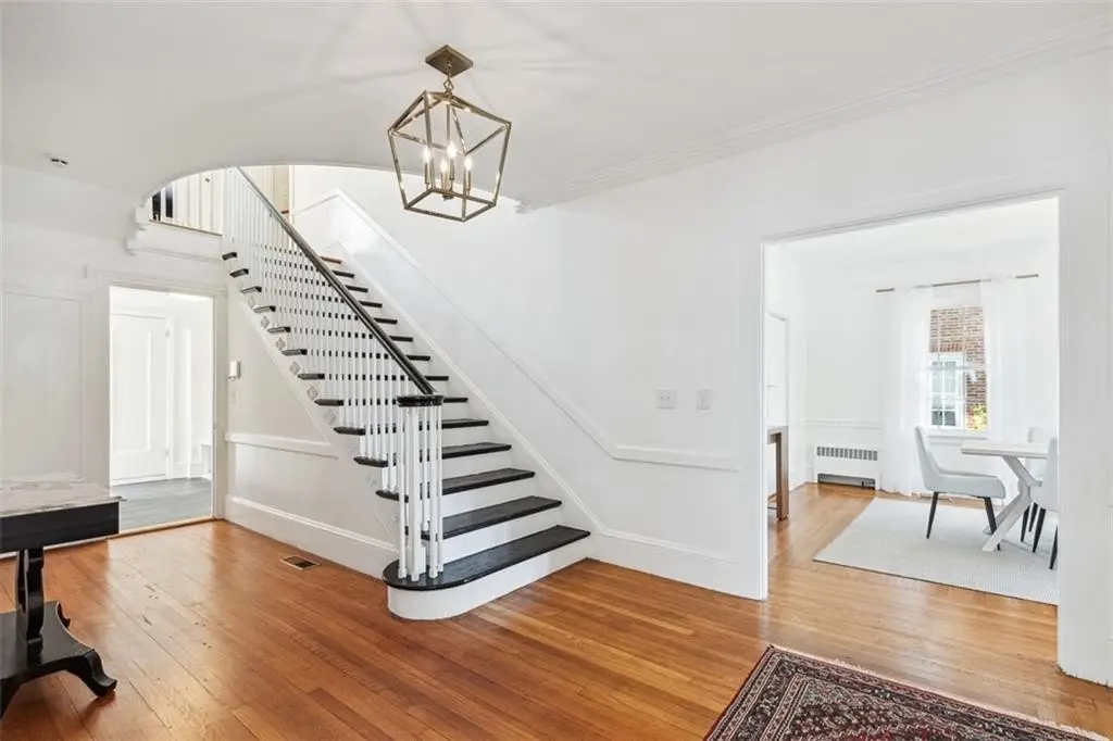 This beautiful brick Colonial in Upper-Elmgrove has just undergone a complete renovation. Step into the grand entry hall and be immediately impressed by the graceful staircase, crown moldings and warm wood floors that extend throughout this delightful home. To the left is a generous living room with a fireplace and sunroom bathing the space in natural light. Across the hall is the formal dining room with crown molding and a chair rail adding an elegant touch. The real showstopper is the amazing chef's kitchen. Fully equipped with crisp white cabinetry, quartz counters, professional appliances, a center island and banquet seating area. The perfect backdrop for congregating and conversation. A powder room and rear entry with easy access to a two-car garage completes this level. Up to the second floor are four bedrooms, including the generous primary suite with a large walk-in closet and dressing room plus a beautifully appointed bath with laundry. A private home office with built-in cabinetry and a second full tile bath finishes this floor. Up to the third level are two additional bedrooms and a bath. Downstairs, the lower level contains a rec room complete with a vintage cocktail bar. Set on a prime corner lot, this wonderful home offers a fenced yard, with a stone patio and a greenhouse. Perfect for all your warm weather entertaining needs. A short stroll to the shops in Hope Village, the Farmer's Market and several parks, this gracious home has it all!