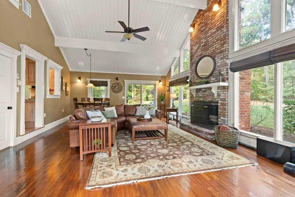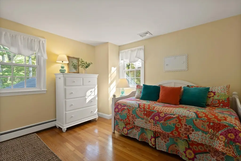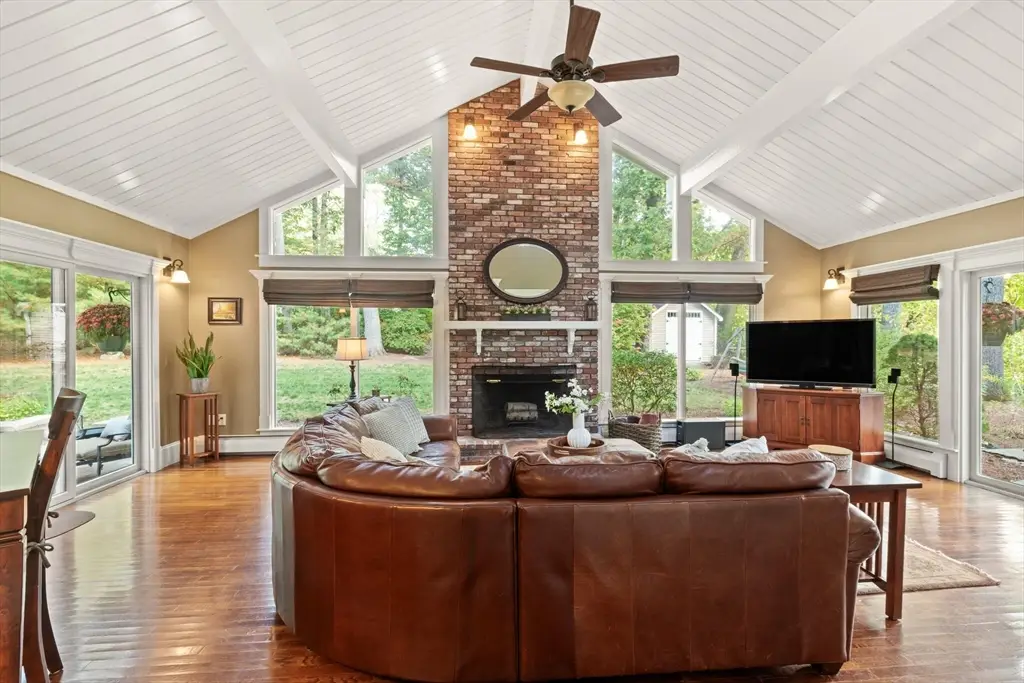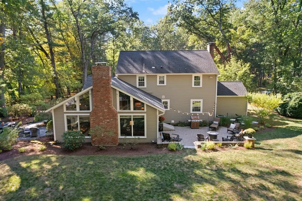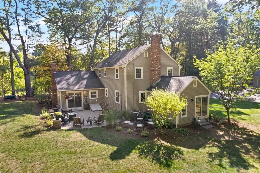 This picture-perfect colonial home is nestled in a peaceful cul-de-sac and exudes maximum curb appeal! Meticulously maintained and updated, this residence features upgraded windows and doors, a brand-new heating system, central air conditioning, and much more! The grand vaulted family room serves as the heart of the home where a wood-burning fireplace acts as a warm focal point, illuminated by oversized picture windows for abundant natural light. This room also provides easy access to two beautiful outdoor patios, perfect for dining al fresco, sipping morning coffee, or entertaining guests. The yard is private, and expansive, offering hours of enjoyment and play. A cozy front-to-back living room features French doors that lead to a bright and cheerful home office or playroom. The second level is home to 4 bedrooms and a full bath, while the lower level boasts a great bonus room, ample storage, and a large unfinished space with great finish potential. This home is truly a gem!
