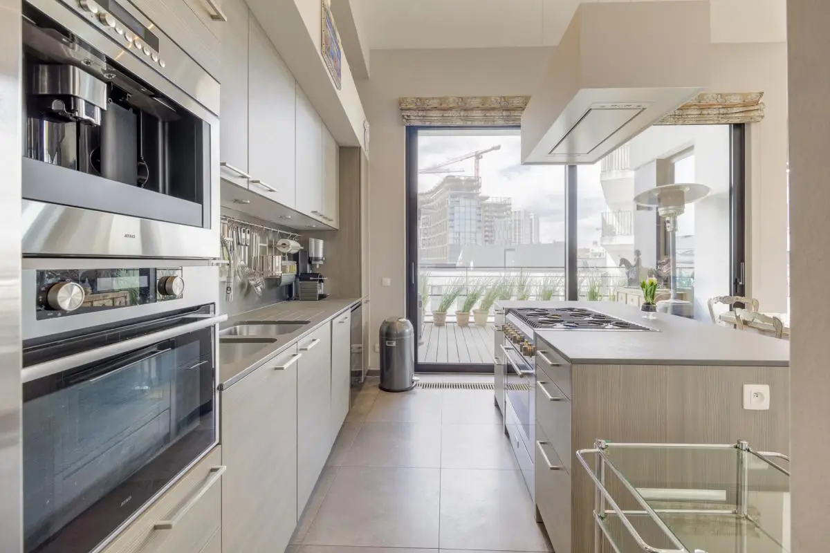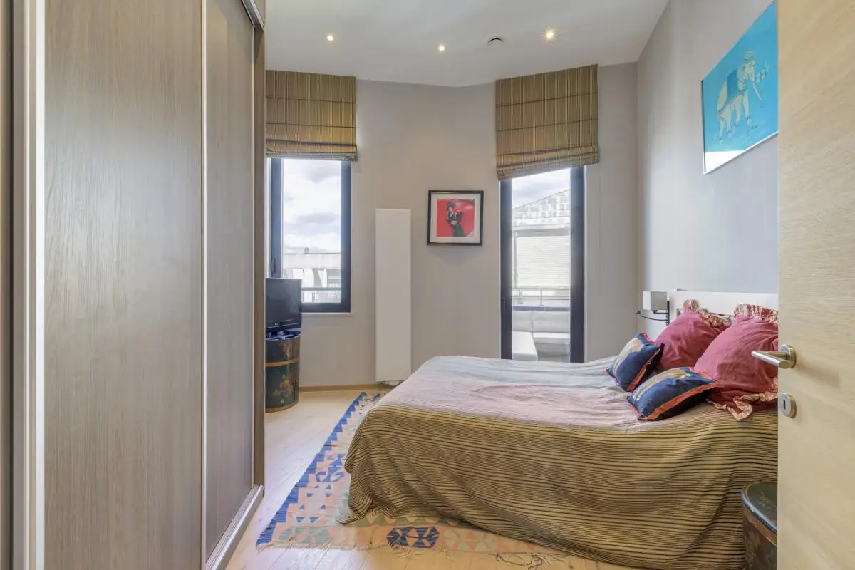 In the prestigious Sablon district, a stone's throw from the Grand Place, this splendid apartment of ± 210 m² is located on the 5th floor of an emblematic building - the former CGER buildings - completely renovated in 2015. Bright and sophisticated, it charms from the moment you walk in with its spacious living room with gas fireplace, high ceilings and large terrace offering panoramic views of the city. The sleeping area offers a master suite with en-suite bathroom, two additional bedrooms, a shower room and plenty of built-in storage. The fully equipped kitchen completes this refined and comfortable property. Two parking spaces (€75,000, compulsory) and a cellar complete this rare property in one of the most sought-after areas of the capital. EPC C.