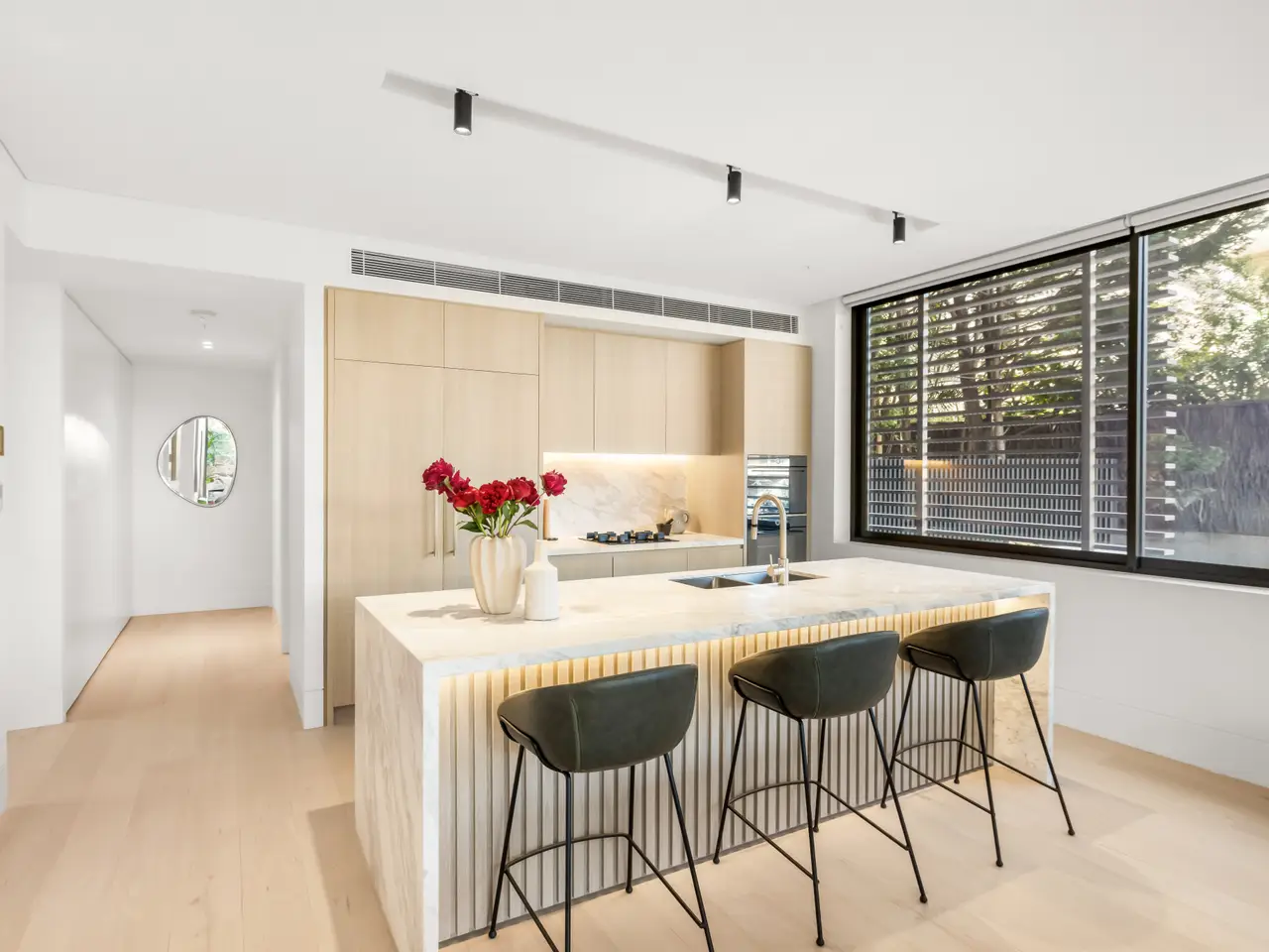 In the heart of Neutral Bay village, this ground floor luxury apartment reflects the calm sophistication of Koichi Takada's design philosophy. Defined by natural materials and sculptural detail, its interiors evoke quiet luxury through soft curves, layered textures and a warm, nature-inspired palette. The open-plan layout extends fluidly to a private, landscaped courtyard, creating a seamless indoor–outdoor flow ideal for relaxation or entertaining. A marble-finished kitchen with premium integrated appliances anchors the home with understated elegance, while bespoke joinery and ambient lighting enhance the sense of refinement. Three serene bedrooms include a private master suite with a walk-in robe and ensuite, and every space has been curated for comfort, from the engineered timber floors to the ducted air conditioning and secure lift access. From this coveted address, you're moments to cafés, grocers and restaurants, with swift city connections via buses and ferries, and leafy parks and foreshore walks all within easy reach. - Ground-floor residence in the acclaimed ENSO development - Koichi Takada's signature design ethos is organic, calm, timeless - Architectural design with refined stone and warm timber detailing - Light-filled open-plan living extends to private landscaped balcony - Marble-finished kitchen, fluted timber detailing, quality appliances - All bedrooms with built-in robes, master with walk-in robe/ensuite - Bathrooms finished in natural stone with fluted timber vanities - Engineered timber floors, ducted air conditioning, ambient lighting - Concealed laundry, built-in storage and secure video intercom entry - Basement parking with lift access and private on-title storage space - Moments to cafés, shops, parks, schools and city transport links Disclaimer: All information contained herewith, including but not limited to the general property description, price and the address, is provided to Belle Property by third parties. We have obtained this information from sources we believe to be reliable; however, we cannot guarantee its accuracy. The information contained herewith should not be relied upon and you should make your own enquiries and seek advice in respect of this property or any property on this website.