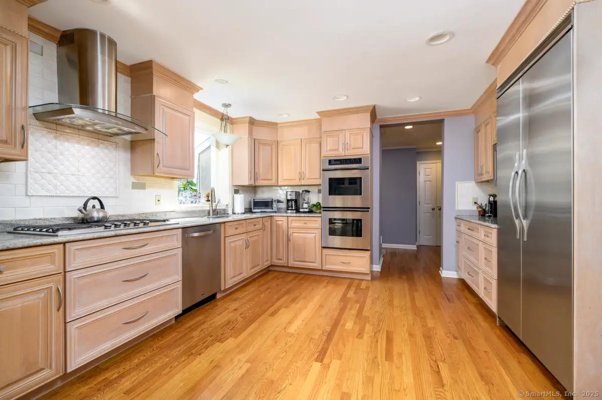Welcome to this stately center hall colonial with a gracious 2 story entry hall nestled on a private 2-acre lot. Offering timeless charm and generous sized rooms, this home features large, light filled rooms perfect for both everyday living and elegant entertaining. Recent upgrades include a brand new roof, all new HVAC system, and a new on-demand hot water heater, so you can move in worry-free and enjoy this beautiful home. At the heart of the home, the custom-designed kitchen is a chef's dream. Outfitted with top-of-the-line appliances, Thermador and Viking, and custom cabinetry offers ample storage along with granite counters and a wine-chiller. The second floor has 4 generous sized bedrooms with large closets and the hall bath has been completely renovated. The finished lower level offers a possible private in-law suite with it's own entrance perfect for multi-generational, or au pair living. Designed with ease this home features 2 laundry rooms and a 3 car garage which provides ample space for vehicles, storage, or a workshop. Close to the Merritt Parkway and shopping.