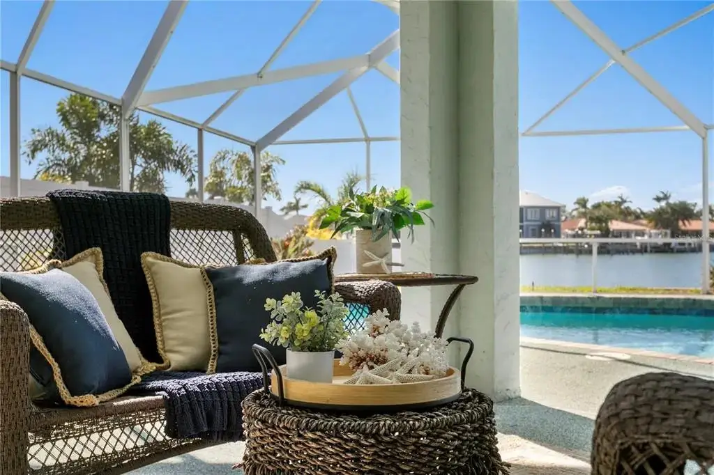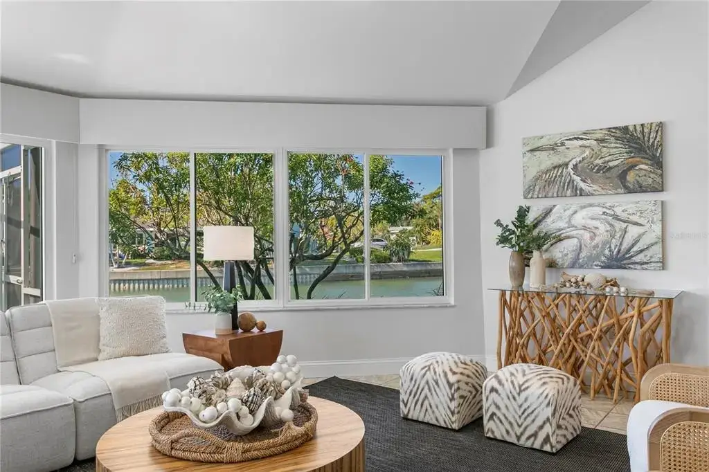 With 139 feet of protected waterfront, a grand entrance, soaring ceilings, and panoramic water views, this home is a rare find on Vina Del Mar Island. Loved by the same family for over 40 years, it radiates pride of ownership throughout. Inside, the split, open floor plan features a spacious primary suite with private waterfront access, a wall of closets, dual vanities, and a walk-in shower. Two additional bedrooms on the opposite side share a well-appointed guest bath. The generous kitchen offers both counter- and bar-height seating, ensuring there’s always room for family and friends to gather. Expansive living and entertaining areas easily accommodate everything from intimate dinner parties to lively family reunions. Step outside and embrace the best of island living including breathtaking sunsets each evening without even leaving your home. Enjoy nearby Historic Pass-A-Grille’s charming shops and restaurants, or head to vibrant Downtown St. Petersburg for world-class dining, museums, and entertainment. Convenient access to Tampa International and St. Pete–Clearwater airports makes travel effortless. Located directly across the street you'll discover the sweet Vina Del Mar Park offers tennis, pickleball, basketball, a dog park, playground, and covered picnic pavilion—everything you need for a truly active coastal lifestyle. Location, Location, Elevation are key elements to consider for quality of life and peace of mind. Roof 2024, HVAC 2020